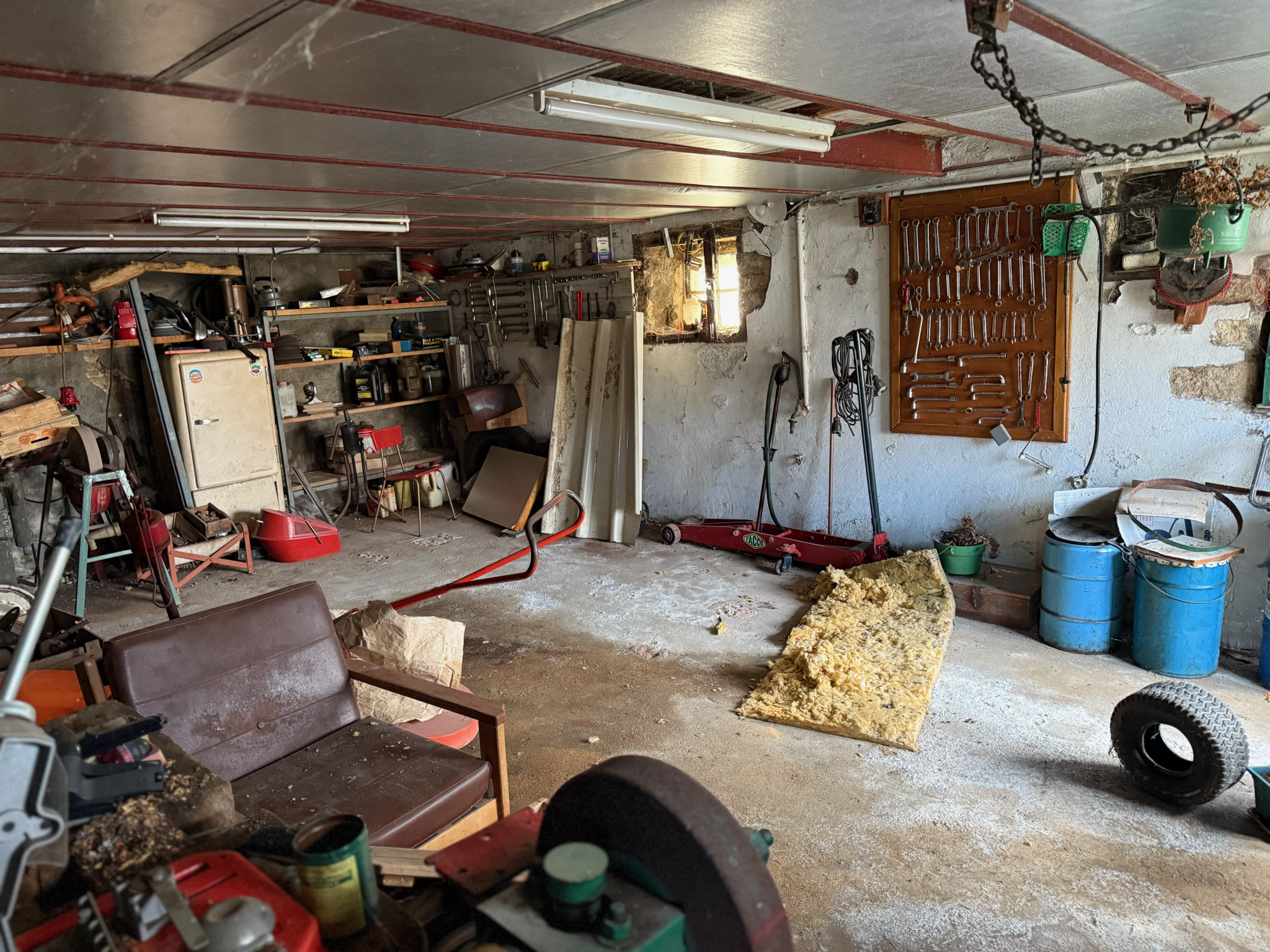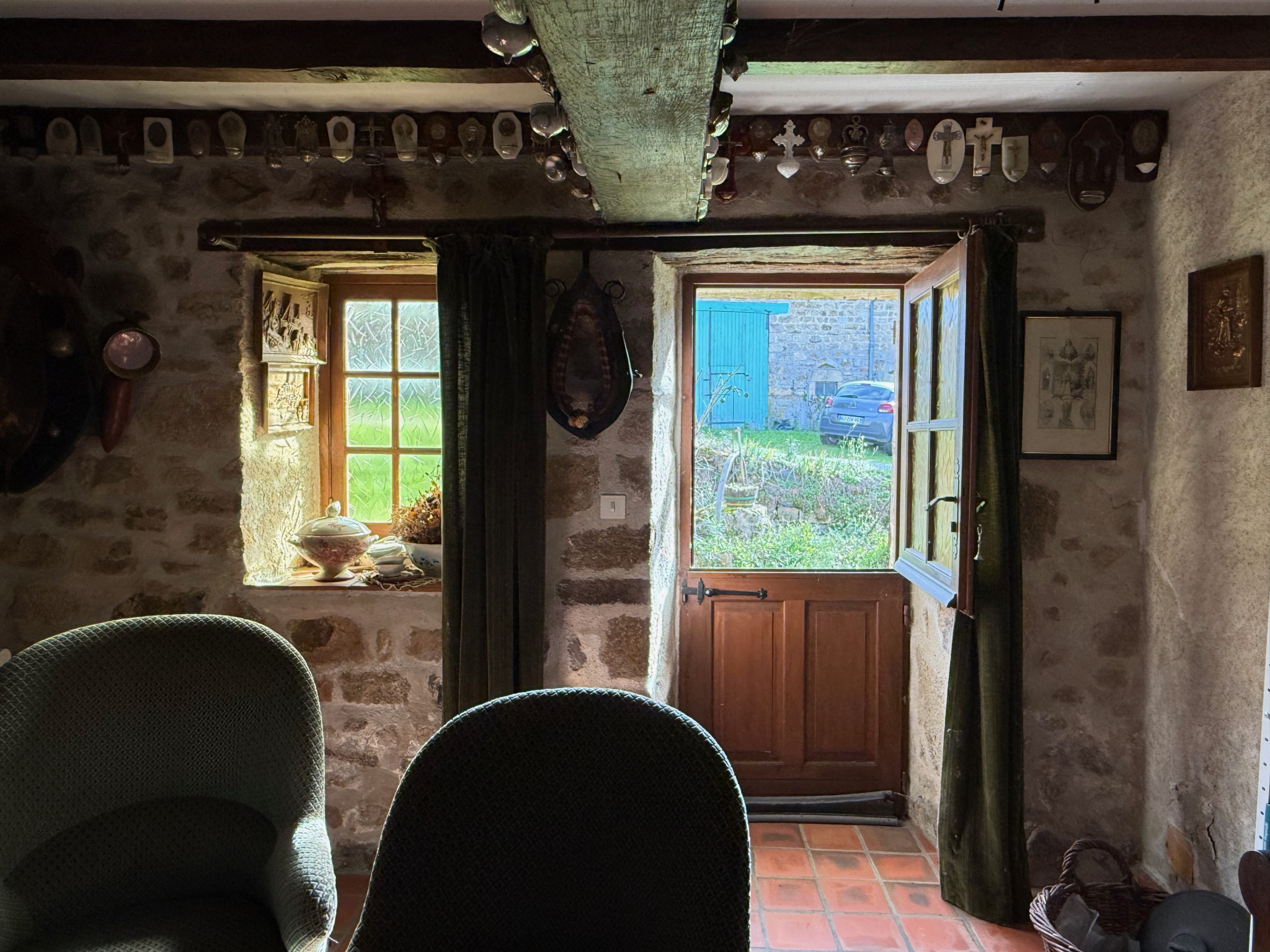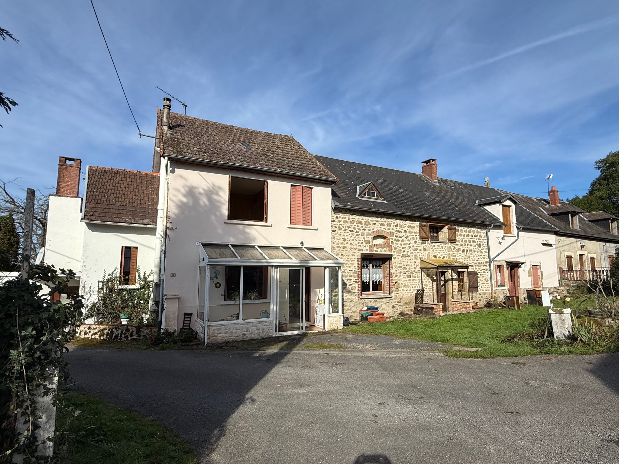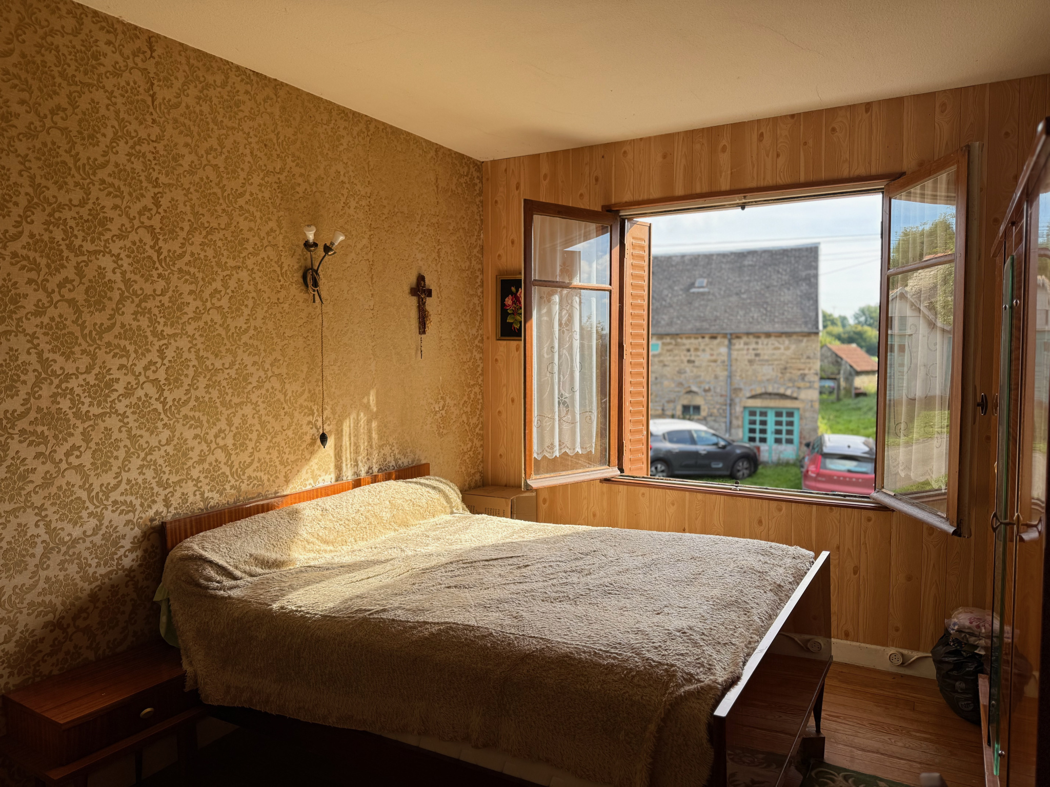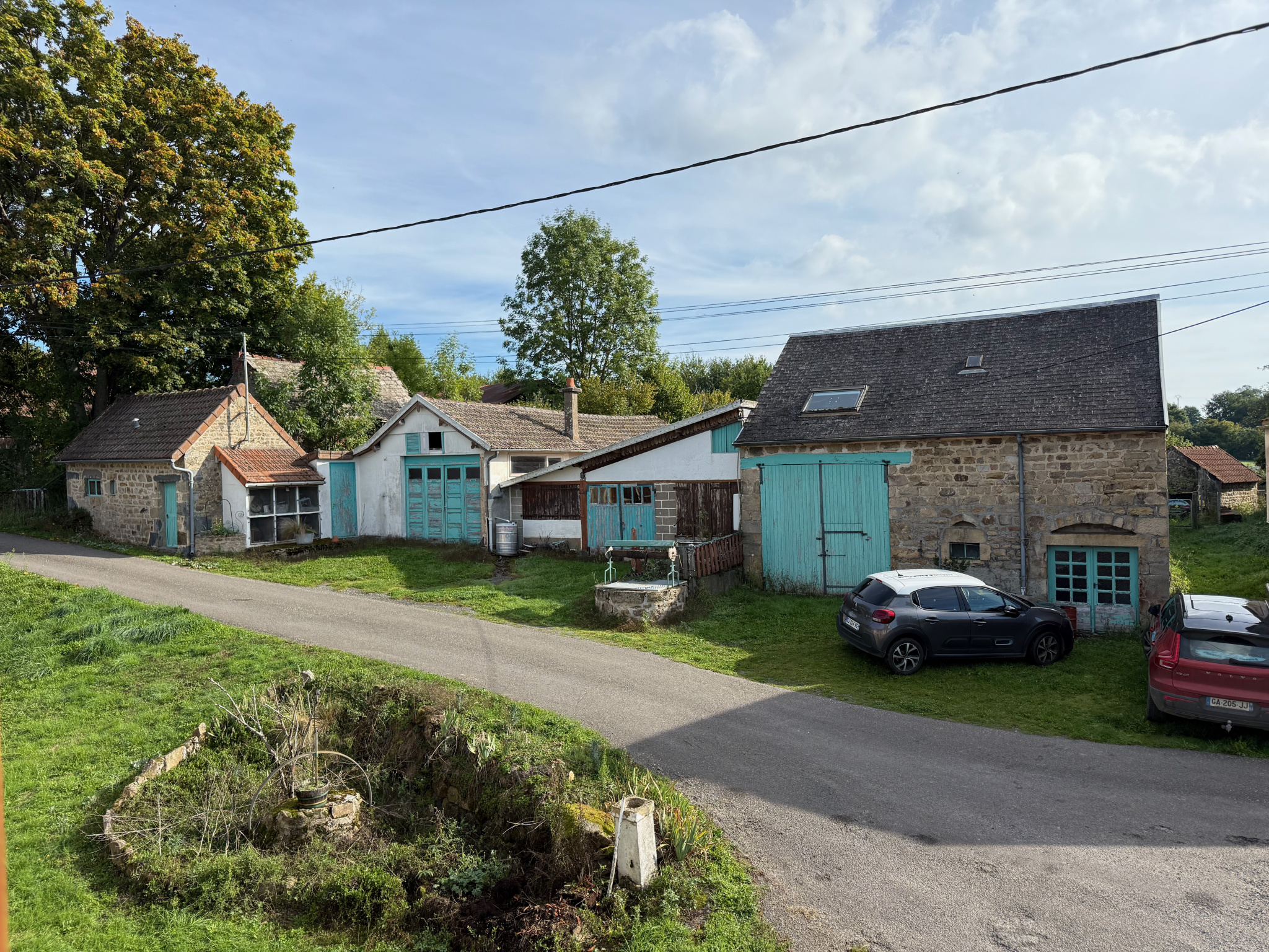 Auv 1196 : 3 maisons mitoyennes, divers bâtiments annexes, 3180m²Cet ensemble offre de très nombreuses possibilités pour divers projets. La maison d’habitation est un peu datée mais on peut y vivre immédiatement tout en la modernisant et en développant un projet. Les ruelles qui divisent l’ensemble en trois grandes parties sont locales et donc presque dépourvues de circulation. La vue à l’ouest, à l’arrière où se trouvent également les jardins, est absolument magnifique : 180° sur la belle région des Combrailles, sans aucun vis-à-vis.La première partie comprend la maison principale qui occupe au rez-de-chaussée en réalité déjà deux maisons, et à droite se trouve encore une troisième maison à rénover. À l’origine, l’ensemble était composé de plusieurs maisons qui ont ensuite été partiellement réunies. Deux d’entre elles forment aujourd’hui un seul ensemble au rez-de-chaussée, tandis qu’une troisième maison, autrefois celle de la grand-mère, reste à rénover.La deuxième partie est un grand et beau terrain avec des arbres (fruitiers) et les ateliers de l’ancien propriétaire, couvreur et menuisier.La troisième partie comprend encore toute une série de bâtiments, dont trois belles constructions en pierres qui peuvent recevoir une destination d’habitation, ainsi que d’autres ateliers. Possibilités donc pour des gîtes, une communauté de vie, ou simplement habiter avec de nombreuses dépendances : les options sont multiples.La maison de gauche dispose d’une petite véranda et d’un hall d’entrée avec cloisons. À gauche se trouvent la cuisine et l’arrière-cuisine, où subsiste le charme d’aménagements plus anciens et où un chauffe-eau à gaz fournit l’eau chaude. À l’arrière se trouve une salle à manger d’origine. La séparation entre cuisine, arrière-cuisine et salle à manger a été réalisée par des cloisons légères. Derrière se trouve une véranda ajoutée. Cette pièce lumineuse sert aujourd’hui de coin salon et s’ouvre, par quelques marches, sur une terrasse puis sur le jardin. Dans le jardin se trouvent quelques petites dépendances ainsi qu’un puits, le tout avec une belle vue. Sol carrelé et murs en pierres joliment rejointoyés.Dans le hall de la maison, on trouve un très grand séjour avec un plafond lambrissé chic. À l’arrière de cette pièce, un espace extérieur utilisé comme serre doit être rénové. C’est également là que se trouve la cuve à fioul. Au rez-de-chaussée, il y a aussi une salle d’eau avec douche, lavabo et toilettes. L’ancien propriétaire était donc menuisier et cela se remarque dans la qualité du bois : un mélange d’éléments authentiques et de réalisations artisanales bien faites.Plus loin, également accessible de l’intérieur mais avec sa propre porte d’entrée, se trouve un séjour d’origine avec cheminée, tomettes, plafond à poutres apparentes et placard intégré. Authentique ! De là part un bel escalier menant à l’étage, où le grenier n’est pas encore aménagé.Depuis la cuisine, on accède aussi à un hall avec cave et escalier. À mi-étage se trouve une salle de bains avec fenêtre, baignoire, wc, lavabo et bidet. Quelques marches plus haut se trouvent deux chambres, dont la chambre arrière avec cette magnifique vue panoramique à 180 degrés sur la nature et pratiquement aucune autre maison proche. Dans l’une des chambres se trouve un placard intégré, dans l’autre, de grandes fenêtres, des finitions en bois et un plancher en bois apportent du caractère, complétés par un autre grand placard et une cloison qui permettrait d’aménager une salle d’eau attenante ou d’agrandir la pièce.Le chauffage se fait par une ancienne installation de chauffage au fioul et un poêle à bois.La maison à rénover, située à droite, n’est pas comprise dans la surface habitable. Les dépendances évidemment non plus. Cette maison dispose d’un escalier central et de deux pièces à gauche et à droite, tant au rez-de-chaussée qu’à l’étage. Bien que la toiture contienne de l’amiante, la construction générale est solide, ce qui permet une rénovation facile. Elle dispose de son propre compteur électrique (modèle ancien). À l’intérieur, on trouve des parquets et une cheminée. La pièce de droite au rez-de-chaussée est divisée par une cloison. À l’arrière, cette maison offre également la même belle vue.Il est difficile de tout décrire tant il y a de choses. Les possibilités de ce beau projet sont donc immenses.
