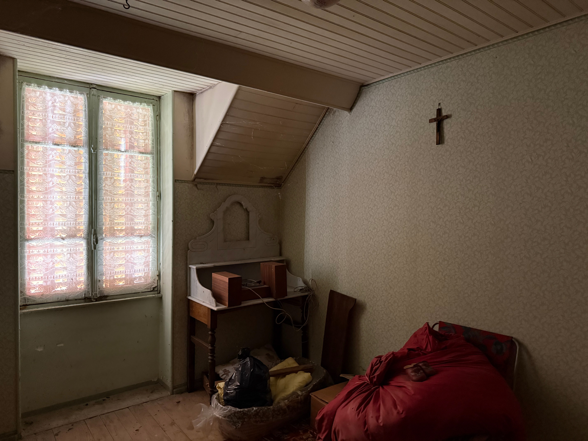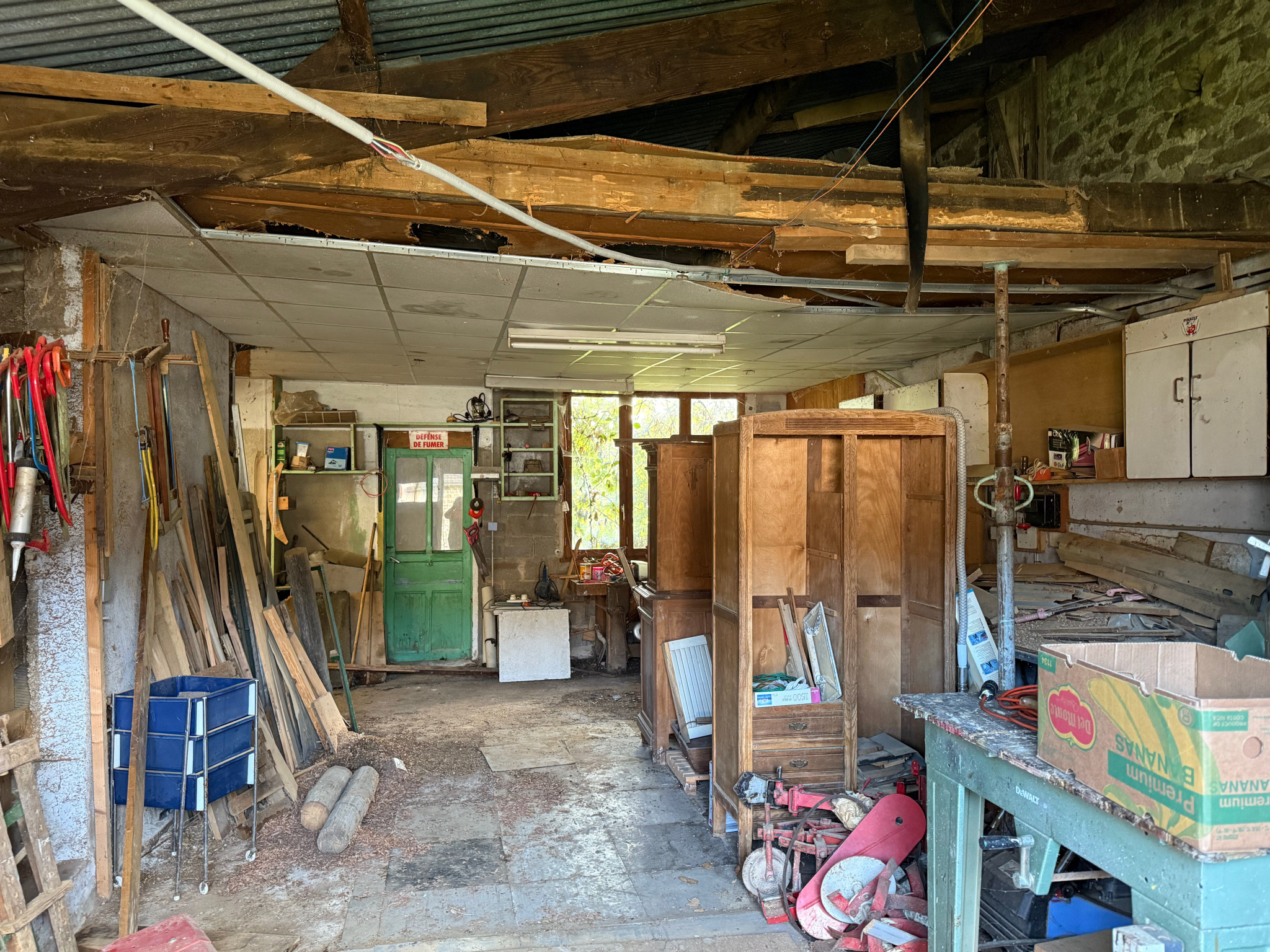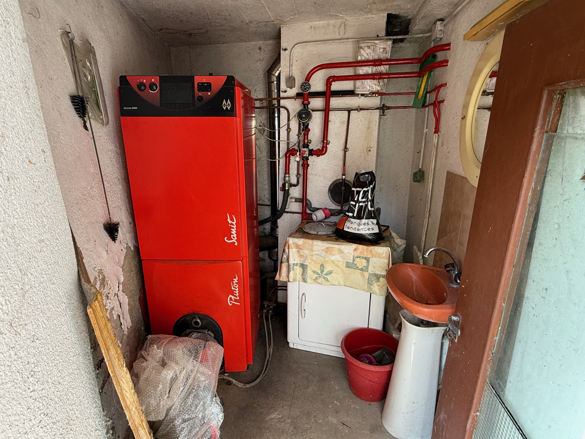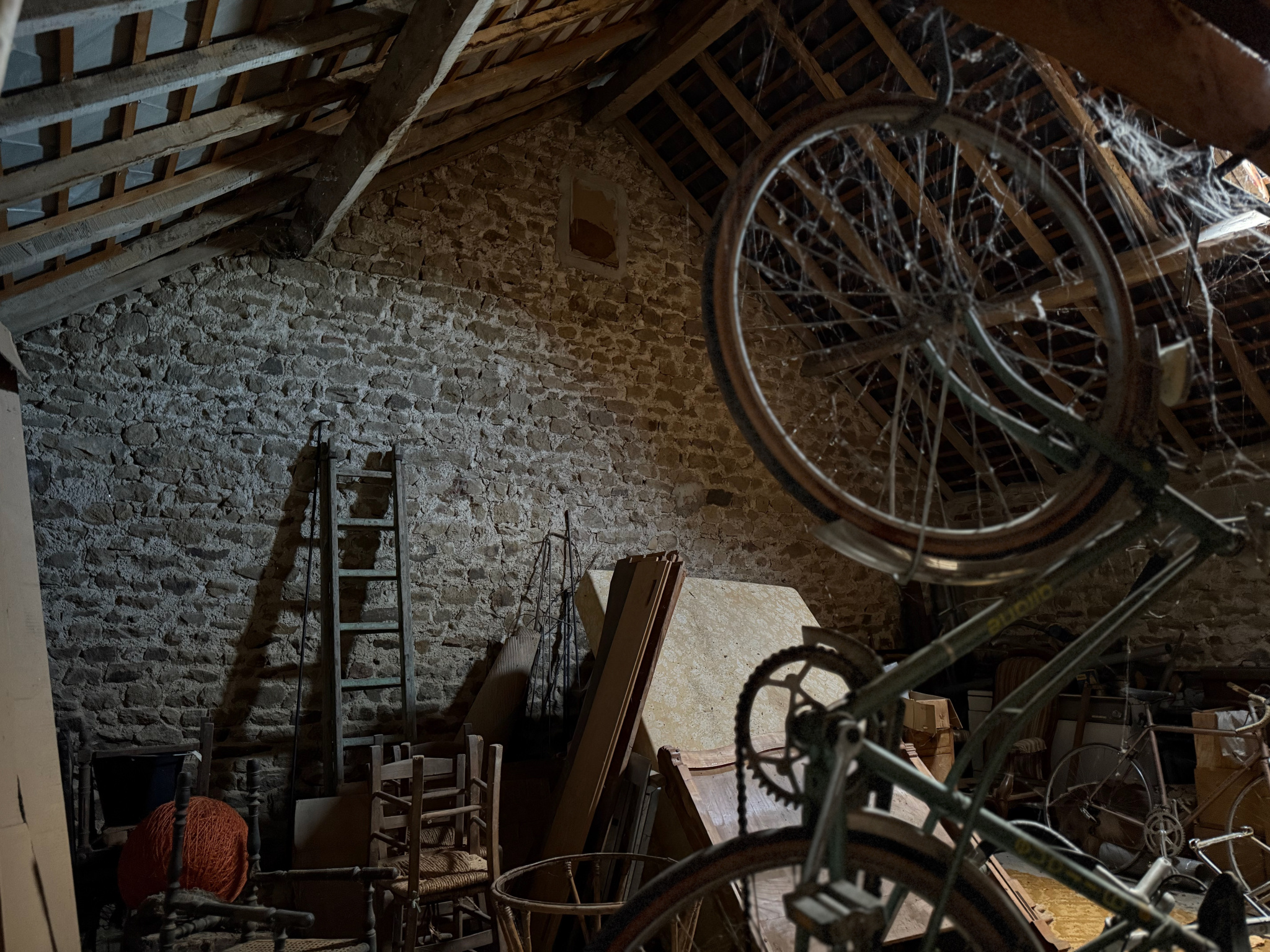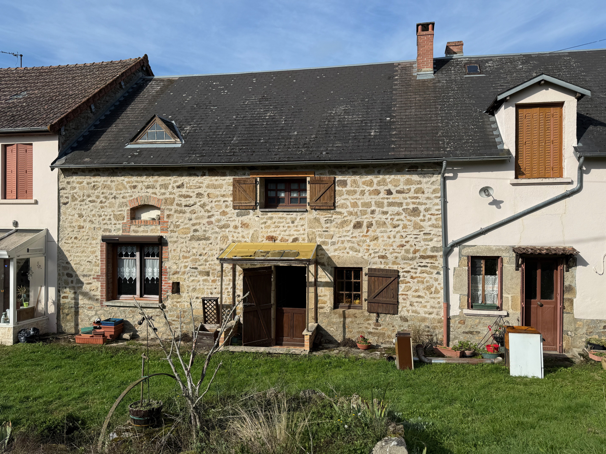 Auv 1196 : 3 maisons mitoyennes, divers bâtiments annexes, 3180m²Cet ensemble offre de très nombreuses possibilités pour divers projets. La maison d’habitation est un peu datée mais on peut y vivre immédiatement tout en la modernisant et en développant un projet. Les ruelles qui divisent l’ensemble en trois grandes parties sont locales et donc presque dépourvues de circulation. La vue à l’ouest, à l’arrière où se trouvent également les jardins, est absolument magnifique : 180° sur la belle région des Combrailles, sans aucun vis-à-vis.La première partie comprend la maison principale qui occupe au rez-de-chaussée en réalité déjà deux maisons, et à droite se trouve encore une troisième maison à rénover. À l’origine, l’ensemble était composé de plusieurs maisons qui ont ensuite été partiellement réunies. Deux d’entre elles forment aujourd’hui un seul ensemble au rez-de-chaussée, tandis qu’une troisième maison, autrefois celle de la grand-mère, reste à rénover.La deuxième partie est un grand et beau terrain avec des arbres (fruitiers) et les ateliers de l’ancien propriétaire, couvreur et menuisier.La troisième partie comprend encore toute une série de bâtiments, dont trois belles constructions en pierres qui peuvent recevoir une destination d’habitation, ainsi que d’autres ateliers. Possibilités donc pour des gîtes, une communauté de vie, ou simplement habiter avec de nombreuses dépendances : les options sont multiples.La maison de gauche dispose d’une petite véranda et d’un hall d’entrée avec cloisons. À gauche se trouvent la cuisine et l’arrière-cuisine, où subsiste le charme d’aménagements plus anciens et où un chauffe-eau à gaz fournit l’eau chaude. À l’arrière se trouve une salle à manger d’origine. La séparation entre cuisine, arrière-cuisine et salle à manger a été réalisée par des cloisons légères. Derrière se trouve une véranda ajoutée. Cette pièce lumineuse sert aujourd’hui de coin salon et s’ouvre, par quelques marches, sur une terrasse puis sur le jardin. Dans le jardin se trouvent quelques petites dépendances ainsi qu’un puits, le tout avec une belle vue. Sol carrelé et murs en pierres joliment rejointoyés.Dans le hall de la maison, on trouve un très grand séjour avec un plafond lambrissé chic. À l’arrière de cette pièce, un espace extérieur utilisé comme serre doit être rénové. C’est également là que se trouve la cuve à fioul. Au rez-de-chaussée, il y a aussi une salle d’eau avec douche, lavabo et toilettes. L’ancien propriétaire était donc menuisier et cela se remarque dans la qualité du bois : un mélange d’éléments authentiques et de réalisations artisanales bien faites.Plus loin, également accessible de l’intérieur mais avec sa propre porte d’entrée, se trouve un séjour d’origine avec cheminée, tomettes, plafond à poutres apparentes et placard intégré. Authentique ! De là part un bel escalier menant à l’étage, où le grenier n’est pas encore aménagé.Depuis la cuisine, on accède aussi à un hall avec cave et escalier. À mi-étage se trouve une salle de bains avec fenêtre, baignoire, wc, lavabo et bidet. Quelques marches plus haut se trouvent deux chambres, dont la chambre arrière avec cette magnifique vue panoramique à 180 degrés sur la nature et pratiquement aucune autre maison proche. Dans l’une des chambres se trouve un placard intégré, dans l’autre, de grandes fenêtres, des finitions en bois et un plancher en bois apportent du caractère, complétés par un autre grand placard et une cloison qui permettrait d’aménager une salle d’eau attenante ou d’agrandir la pièce.Le chauffage se fait par une ancienne installation de chauffage au fioul et un poêle à bois.La maison à rénover, située à droite, n’est pas comprise dans la surface habitable. Les dépendances évidemment non plus. Cette maison dispose d’un escalier central et de deux pièces à gauche et à droite, tant au rez-de-chaussée qu’à l’étage. Bien que la toiture contienne de l’amiante, la construction générale est solide, ce qui permet une rénovation facile. Elle dispose de son propre compteur électrique (modèle ancien). À l’intérieur, on trouve des parquets et une cheminée. La pièce de droite au rez-de-chaussée est divisée par une cloison. À l’arrière, cette maison offre également la même belle vue.Il est difficile de tout décrire tant il y a de choses. Les possibilités de ce beau projet sont donc immenses.