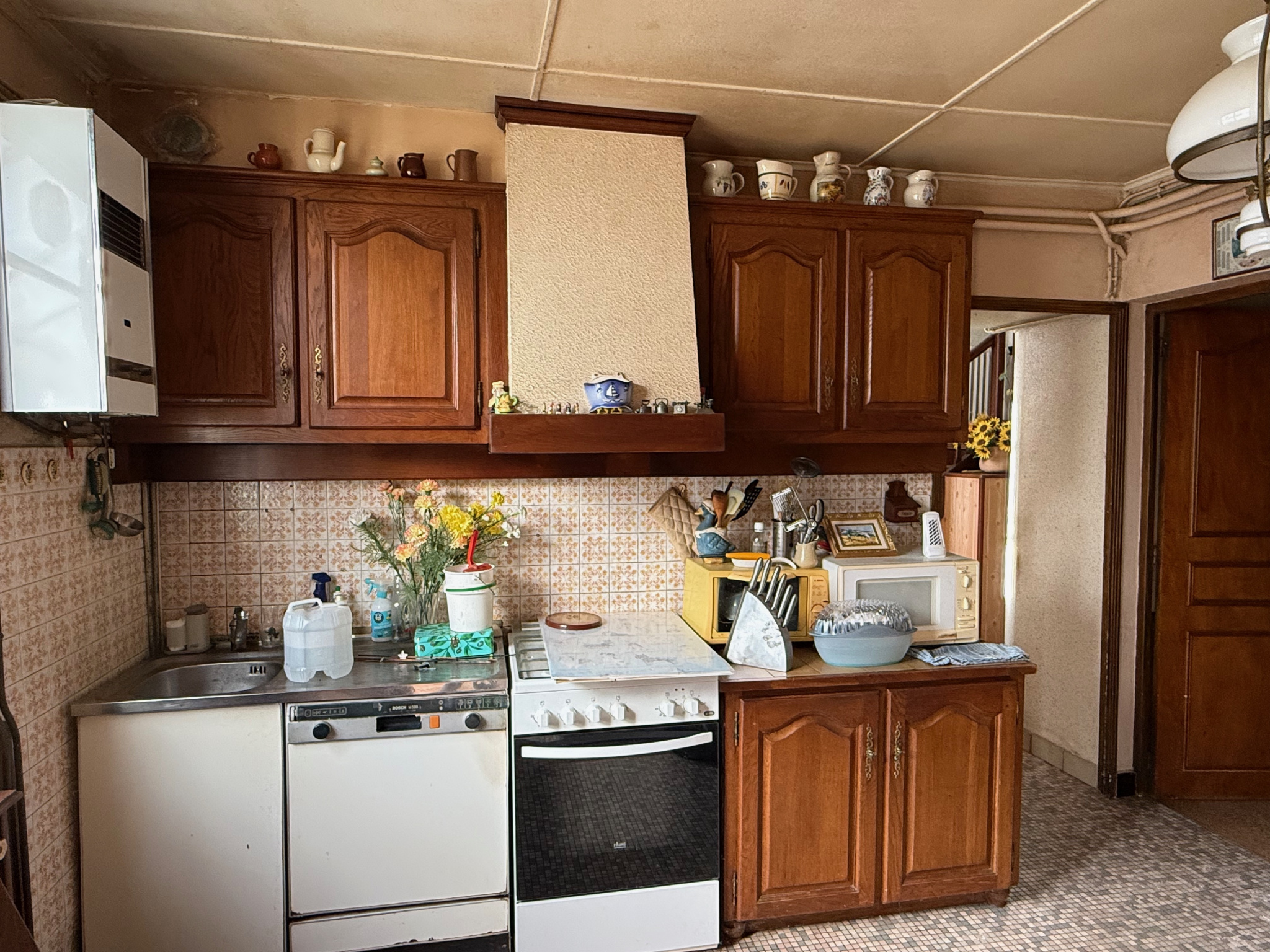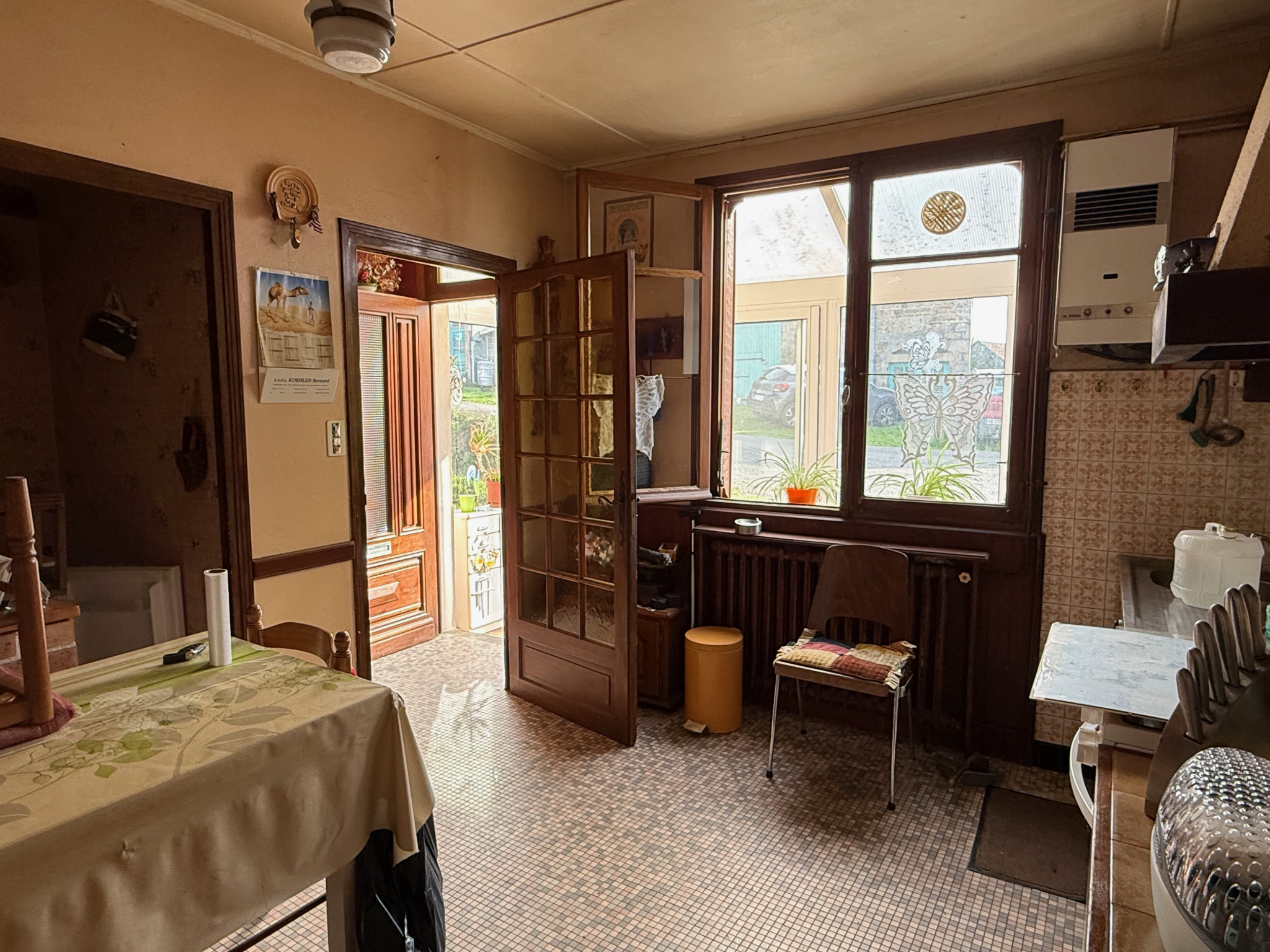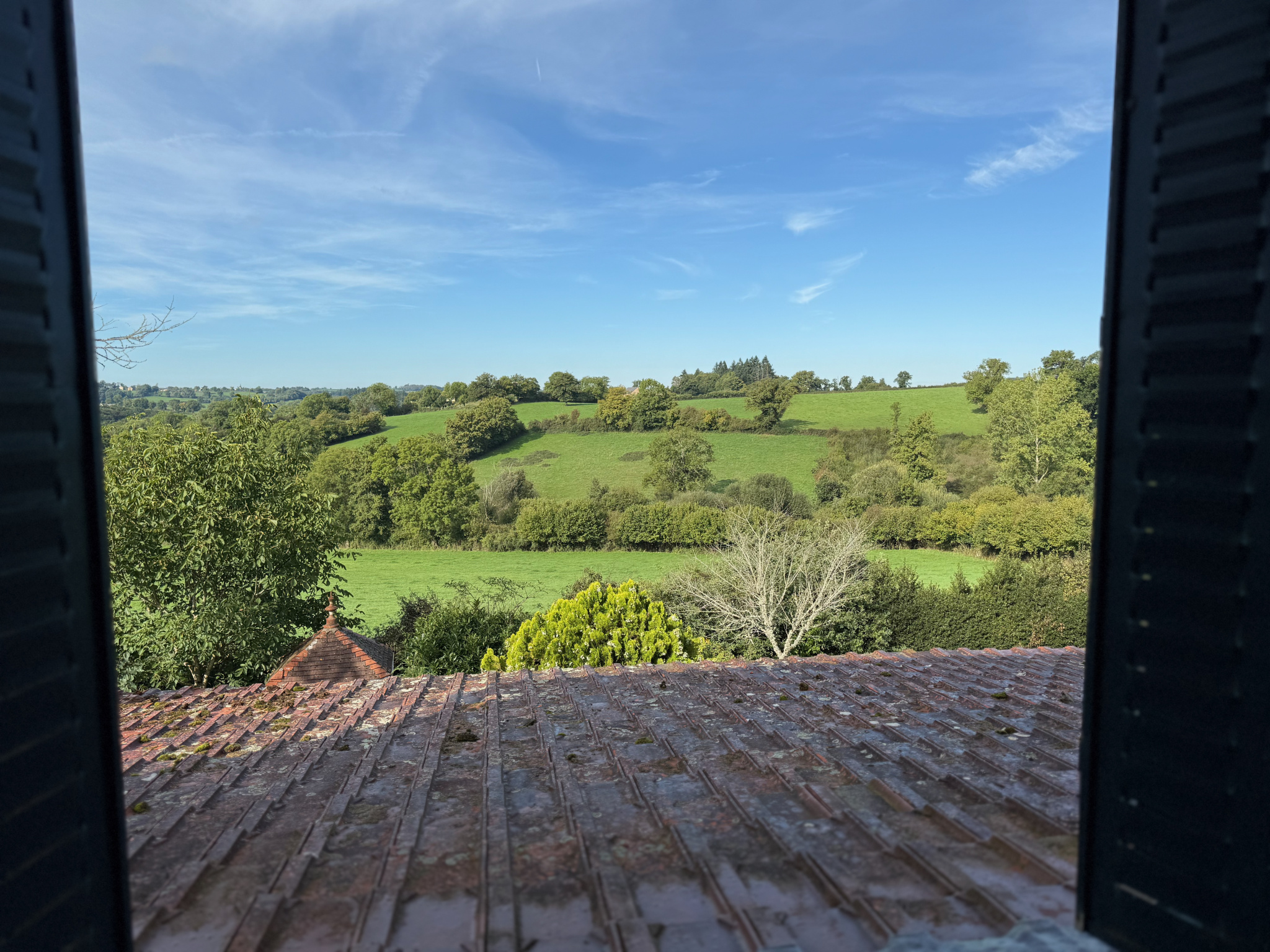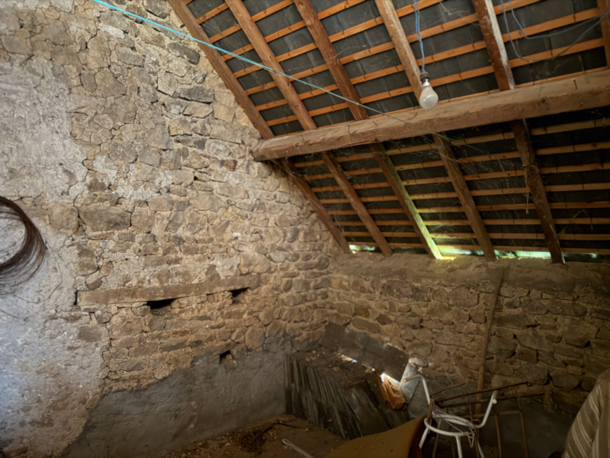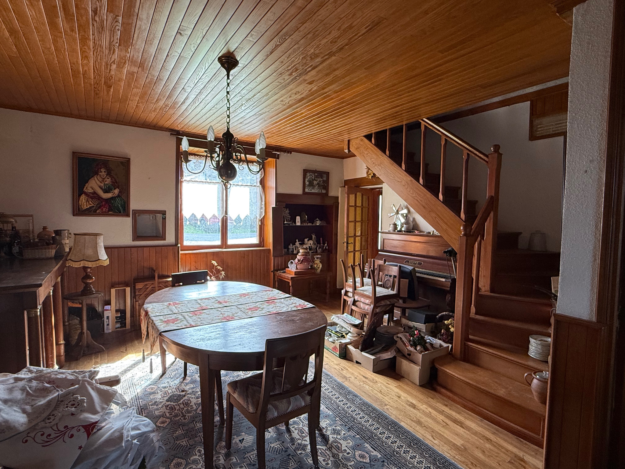 Auv 1196 : 3 maisons mitoyennes, divers bâtiments annexes, 3180m²Cet ensemble offre de très nombreuses possibilités pour divers projets. La maison d’habitation est un peu datée mais on peut y vivre immédiatement tout en la modernisant et en développant un projet. Les ruelles qui divisent l’ensemble en trois grandes parties sont locales et donc presque dépourvues de circulation. La vue à l’ouest, à l’arrière où se trouvent également les jardins, est absolument magnifique : 180° sur la belle région des Combrailles, sans aucun vis-à-vis.La première partie comprend la maison principale qui occupe au rez-de-chaussée en réalité déjà deux maisons, et à droite se trouve encore une troisième maison à rénover. À l’origine, l’ensemble était composé de plusieurs maisons qui ont ensuite été partiellement réunies. Deux d’entre elles forment aujourd’hui un seul ensemble au rez-de-chaussée, tandis qu’une troisième maison, autrefois celle de la grand-mère, reste à rénover.La deuxième partie est un grand et beau terrain avec des arbres (fruitiers) et les ateliers de l’ancien propriétaire, couvreur et menuisier.La troisième partie comprend encore toute une série de bâtiments, dont trois belles constructions en pierres qui peuvent recevoir une destination d’habitation, ainsi que d’autres ateliers. Possibilités donc pour des gîtes, une communauté de vie, ou simplement habiter avec de nombreuses dépendances : les options sont multiples.La maison de gauche dispose d’une petite véranda et d’un hall d’entrée avec cloisons. À gauche se trouvent la cuisine et l’arrière-cuisine, où subsiste le charme d’aménagements plus anciens et où un chauffe-eau à gaz fournit l’eau chaude. À l’arrière se trouve une salle à manger d’origine. La séparation entre cuisine, arrière-cuisine et salle à manger a été réalisée par des cloisons légères. Derrière se trouve une véranda ajoutée. Cette pièce lumineuse sert aujourd’hui de coin salon et s’ouvre, par quelques marches, sur une terrasse puis sur le jardin. Dans le jardin se trouvent quelques petites dépendances ainsi qu’un puits, le tout avec une belle vue. Sol carrelé et murs en pierres joliment rejointoyés.Dans le hall de la maison, on trouve un très grand séjour avec un plafond lambrissé chic. À l’arrière de cette pièce, un espace extérieur utilisé comme serre doit être rénové. C’est également là que se trouve la cuve à fioul. Au rez-de-chaussée, il y a aussi une salle d’eau avec douche, lavabo et toilettes. L’ancien propriétaire était donc menuisier et cela se remarque dans la qualité du bois : un mélange d’éléments authentiques et de réalisations artisanales bien faites.Plus loin, également accessible de l’intérieur mais avec sa propre porte d’entrée, se trouve un séjour d’origine avec cheminée, tomettes, plafond à poutres apparentes et placard intégré. Authentique ! De là part un bel escalier menant à l’étage, où le grenier n’est pas encore aménagé.Depuis la cuisine, on accède aussi à un hall avec cave et escalier. À mi-étage se trouve une salle de bains avec fenêtre, baignoire, wc, lavabo et bidet. Quelques marches plus haut se trouvent deux chambres, dont la chambre arrière avec cette magnifique vue panoramique à 180 degrés sur la nature et pratiquement aucune autre maison proche. Dans l’une des chambres se trouve un placard intégré, dans l’autre, de grandes fenêtres, des finitions en bois et un plancher en bois apportent du caractère, complétés par un autre grand placard et une cloison qui permettrait d’aménager une salle d’eau attenante ou d’agrandir la pièce.Le chauffage se fait par une ancienne installation de chauffage au fioul et un poêle à bois.La maison à rénover, située à droite, n’est pas comprise dans la surface habitable. Les dépendances évidemment non plus. Cette maison dispose d’un escalier central et de deux pièces à gauche et à droite, tant au rez-de-chaussée qu’à l’étage. Bien que la toiture contienne de l’amiante, la construction générale est solide, ce qui permet une rénovation facile. Elle dispose de son propre compteur électrique (modèle ancien). À l’intérieur, on trouve des parquets et une cheminée. La pièce de droite au rez-de-chaussée est divisée par une cloison. À l’arrière, cette maison offre également la même belle vue.Il est difficile de tout décrire tant il y a de choses. Les possibilités de ce beau projet sont donc immenses.