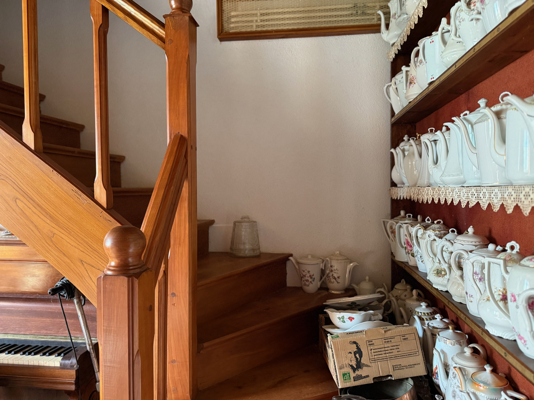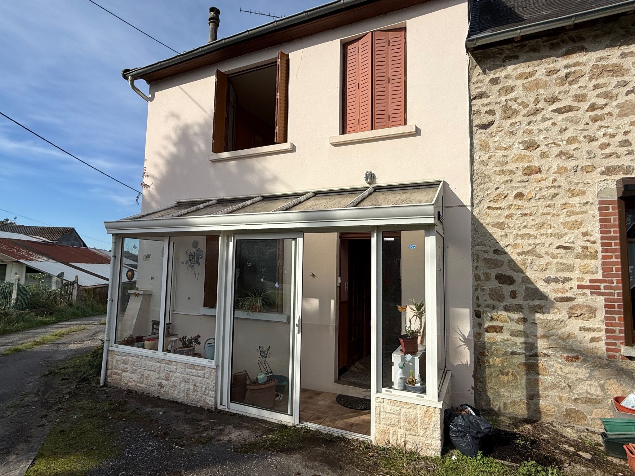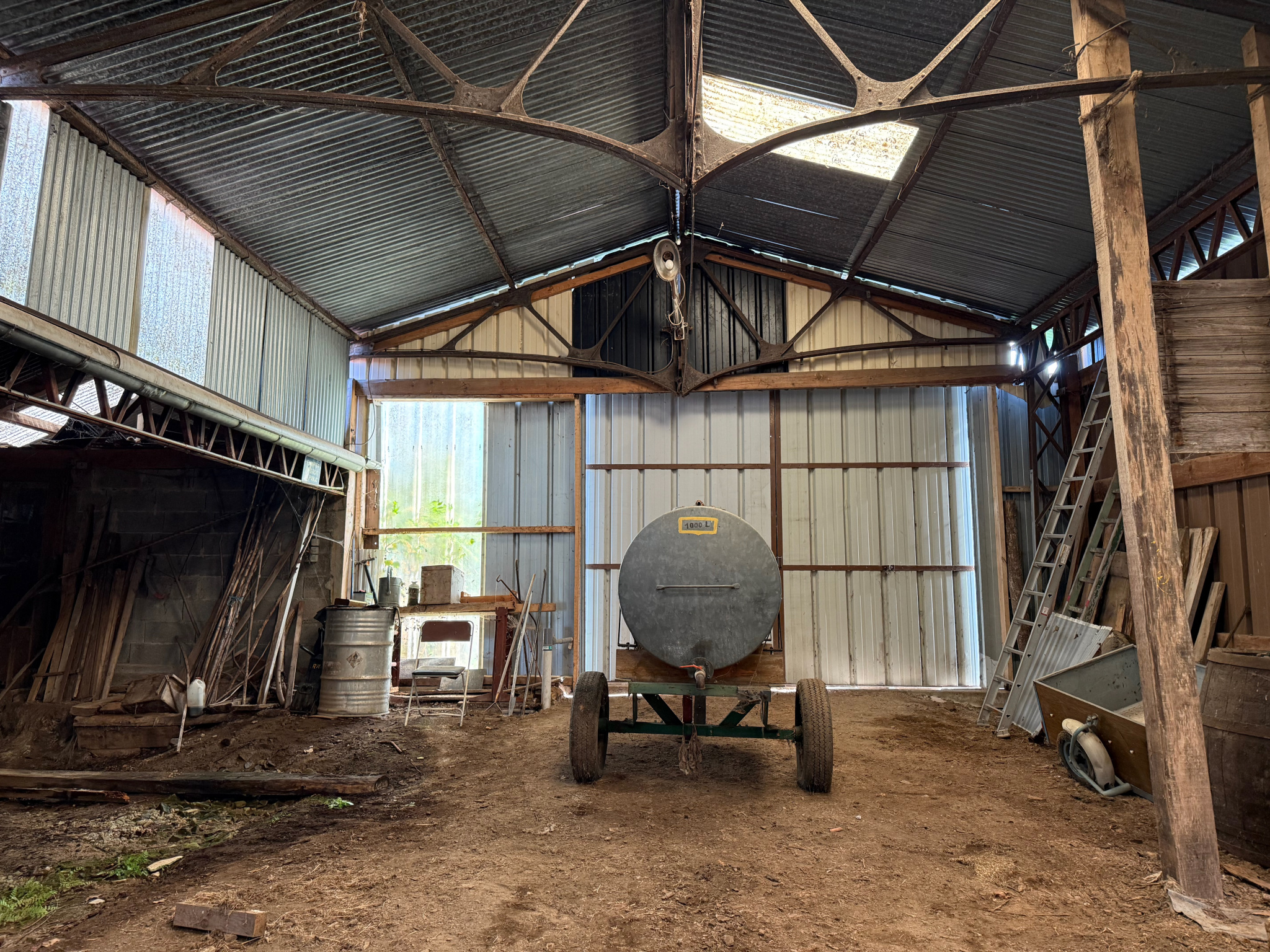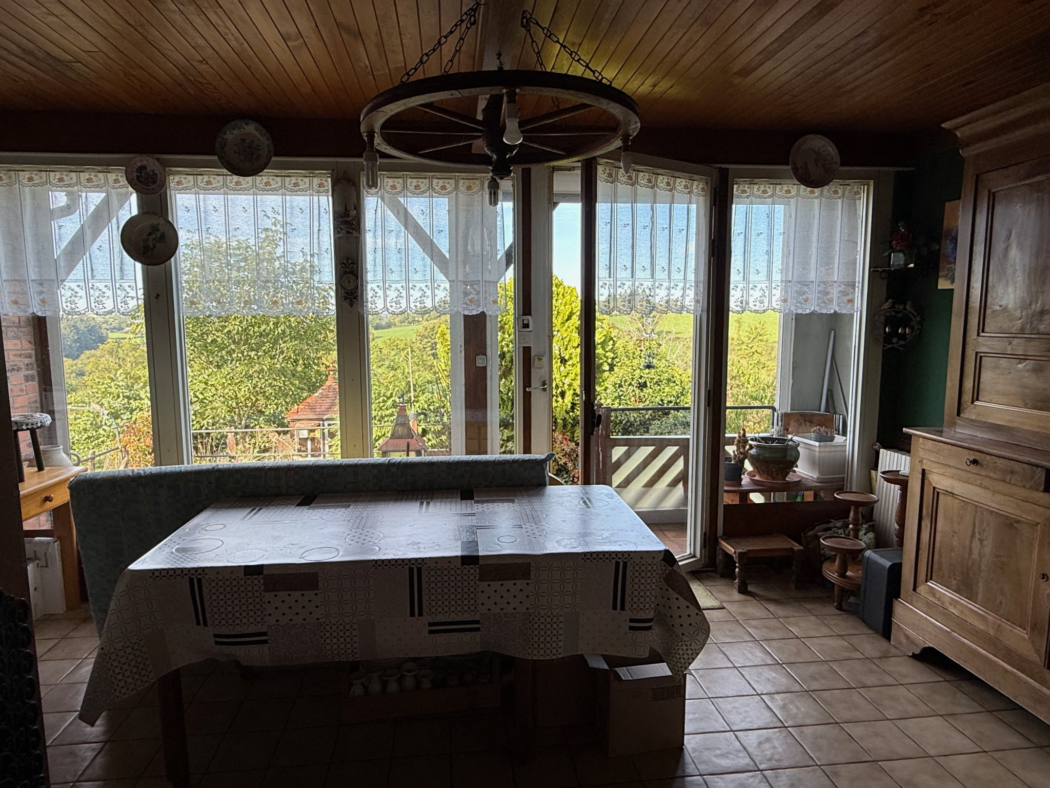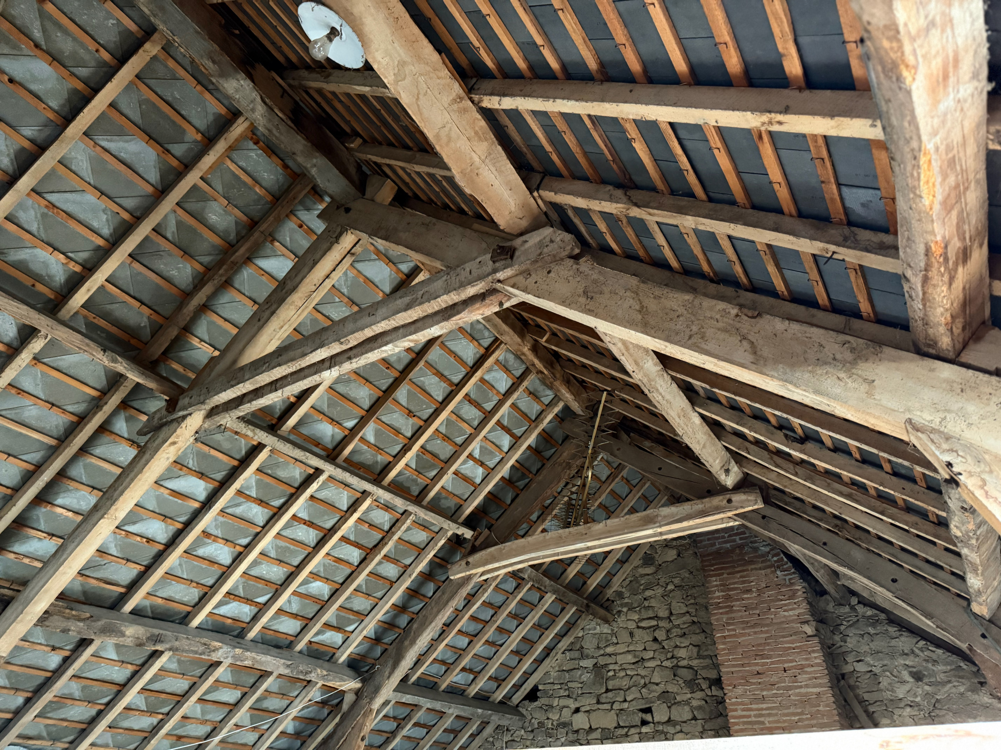 Auv 1196 : 3 maisons mitoyennes, divers bâtiments annexes, 3180m²Cet ensemble offre de très nombreuses possibilités pour divers projets. La maison d’habitation est un peu datée mais on peut y vivre immédiatement tout en la modernisant et en développant un projet. Les ruelles qui divisent l’ensemble en trois grandes parties sont locales et donc presque dépourvues de circulation. La vue à l’ouest, à l’arrière où se trouvent également les jardins, est absolument magnifique : 180° sur la belle région des Combrailles, sans aucun vis-à-vis.La première partie comprend la maison principale qui occupe au rez-de-chaussée en réalité déjà deux maisons, et à droite se trouve encore une troisième maison à rénover. À l’origine, l’ensemble était composé de plusieurs maisons qui ont ensuite été partiellement réunies. Deux d’entre elles forment aujourd’hui un seul ensemble au rez-de-chaussée, tandis qu’une troisième maison, autrefois celle de la grand-mère, reste à rénover.La deuxième partie est un grand et beau terrain avec des arbres (fruitiers) et les ateliers de l’ancien propriétaire, couvreur et menuisier.La troisième partie comprend encore toute une série de bâtiments, dont trois belles constructions en pierres qui peuvent recevoir une destination d’habitation, ainsi que d’autres ateliers. Possibilités donc pour des gîtes, une communauté de vie, ou simplement habiter avec de nombreuses dépendances : les options sont multiples.La maison de gauche dispose d’une petite véranda et d’un hall d’entrée avec cloisons. À gauche se trouvent la cuisine et l’arrière-cuisine, où subsiste le charme d’aménagements plus anciens et où un chauffe-eau à gaz fournit l’eau chaude. À l’arrière se trouve une salle à manger d’origine. La séparation entre cuisine, arrière-cuisine et salle à manger a été réalisée par des cloisons légères. Derrière se trouve une véranda ajoutée. Cette pièce lumineuse sert aujourd’hui de coin salon et s’ouvre, par quelques marches, sur une terrasse puis sur le jardin. Dans le jardin se trouvent quelques petites dépendances ainsi qu’un puits, le tout avec une belle vue. Sol carrelé et murs en pierres joliment rejointoyés.Dans le hall de la maison, on trouve un très grand séjour avec un plafond lambrissé chic. À l’arrière de cette pièce, un espace extérieur utilisé comme serre doit être rénové. C’est également là que se trouve la cuve à fioul. Au rez-de-chaussée, il y a aussi une salle d’eau avec douche, lavabo et toilettes. L’ancien propriétaire était donc menuisier et cela se remarque dans la qualité du bois : un mélange d’éléments authentiques et de réalisations artisanales bien faites.Plus loin, également accessible de l’intérieur mais avec sa propre porte d’entrée, se trouve un séjour d’origine avec cheminée, tomettes, plafond à poutres apparentes et placard intégré. Authentique ! De là part un bel escalier menant à l’étage, où le grenier n’est pas encore aménagé.Depuis la cuisine, on accède aussi à un hall avec cave et escalier. À mi-étage se trouve une salle de bains avec fenêtre, baignoire, wc, lavabo et bidet. Quelques marches plus haut se trouvent deux chambres, dont la chambre arrière avec cette magnifique vue panoramique à 180 degrés sur la nature et pratiquement aucune autre maison proche. Dans l’une des chambres se trouve un placard intégré, dans l’autre, de grandes fenêtres, des finitions en bois et un plancher en bois apportent du caractère, complétés par un autre grand placard et une cloison qui permettrait d’aménager une salle d’eau attenante ou d’agrandir la pièce.Le chauffage se fait par une ancienne installation de chauffage au fioul et un poêle à bois.La maison à rénover, située à droite, n’est pas comprise dans la surface habitable. Les dépendances évidemment non plus. Cette maison dispose d’un escalier central et de deux pièces à gauche et à droite, tant au rez-de-chaussée qu’à l’étage. Bien que la toiture contienne de l’amiante, la construction générale est solide, ce qui permet une rénovation facile. Elle dispose de son propre compteur électrique (modèle ancien). À l’intérieur, on trouve des parquets et une cheminée. La pièce de droite au rez-de-chaussée est divisée par une cloison. À l’arrière, cette maison offre également la même belle vue.Il est difficile de tout décrire tant il y a de choses. Les possibilités de ce beau projet sont donc immenses.
