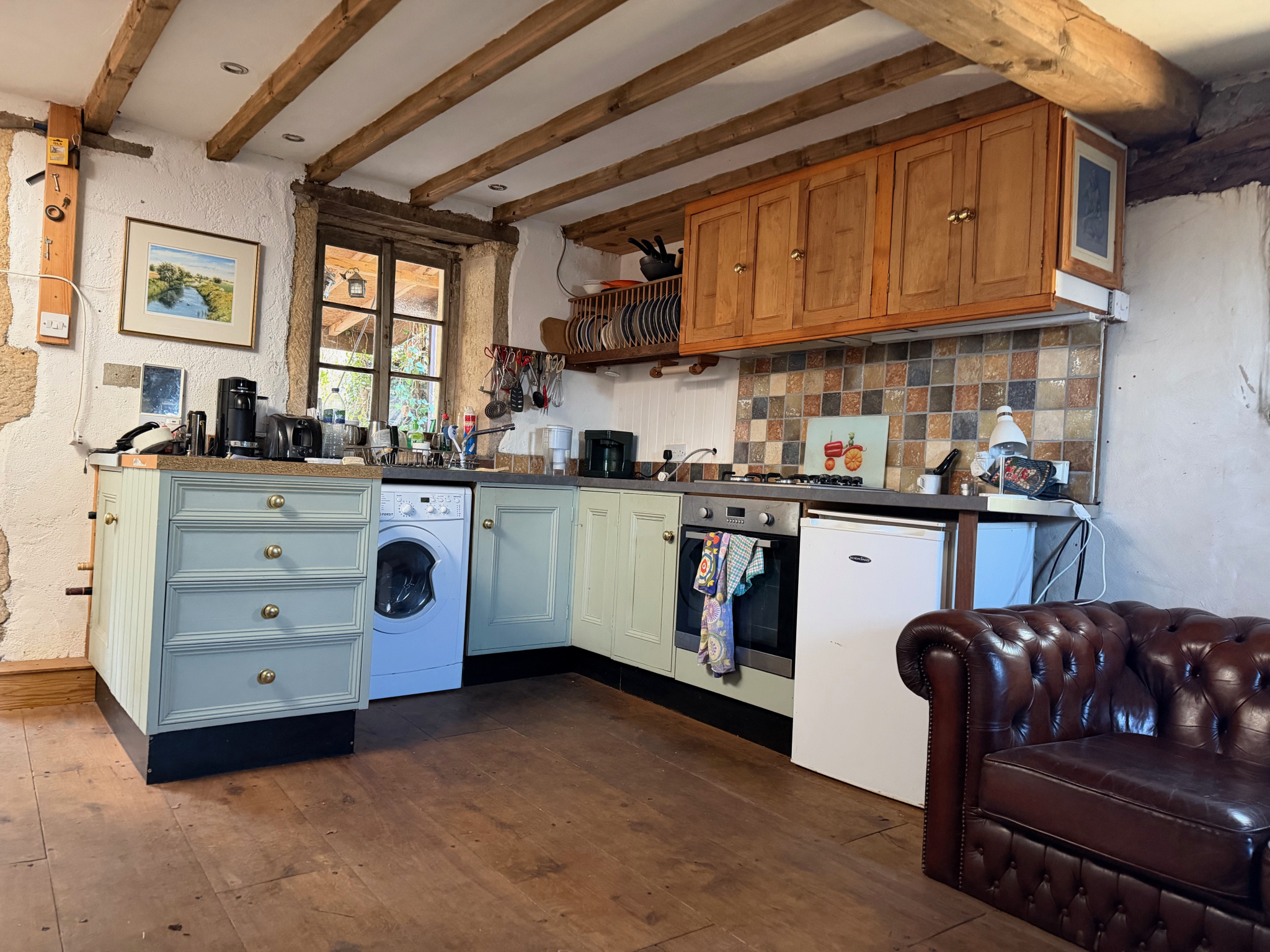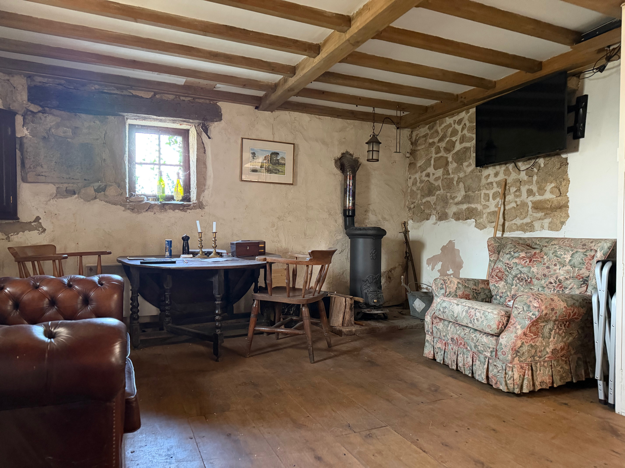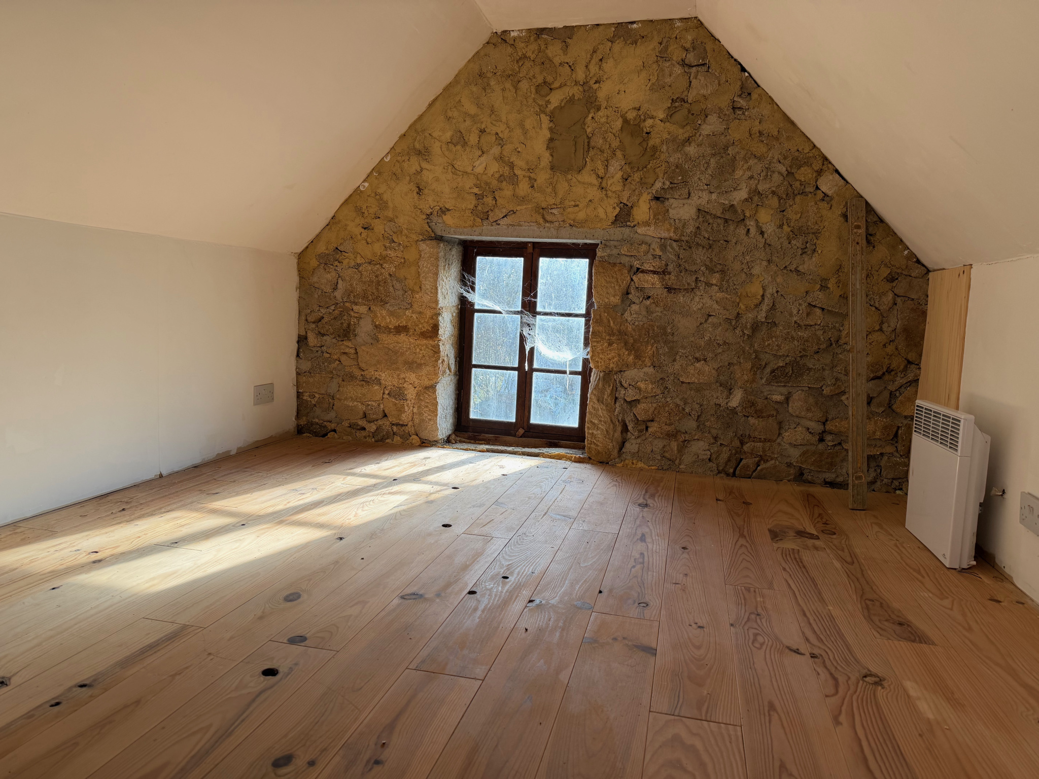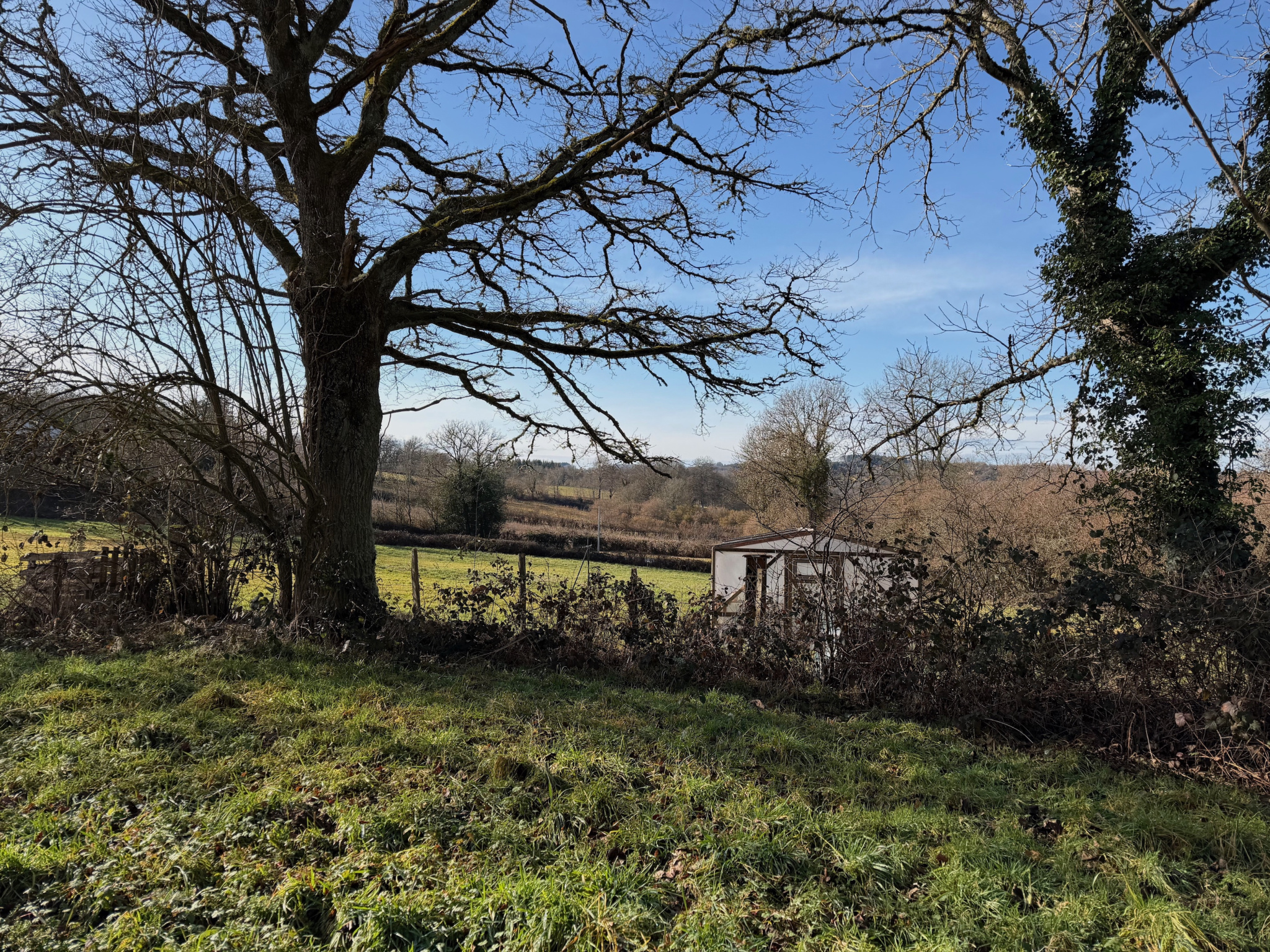 Auv 1209 : Charmante maisonnette, véranda, 2ème maison, ruine, terrainCet ensemble se compose de trois petits bâtiments distincts : une petite maison habitable, une maisonnette à rénover et une ruine, chacun avec un jardin, ainsi qu’une parcelle de terrain séparée susceptible d’être constructible.La maisonnette habitable est située de façon légèrement dissimulée dans un bosquet, sans vis-à-vis. Devant la maison se trouve une véranda d’environ 15m² donnant sur le jardin.Dans la maison en pierres se trouvent la cuisine et le séjour, réunis en une seule pièce ouverte d’une superficie de 21m², avec une hauteur sous poutres de 2m. Cette pièce est équipée d’un poêle à bois et d’une cuisine récente entièrement intégrée.Au premier étage se trouve une chambre de 11m² avec une salle d’eau en suite de 5m², équipée d’un lavabo, d’une douche, de toilettes et d’un placard intégré. La hauteur sous plafond à cet étage est légèrement inférieure à 2m.Au-dessus de cet étage se trouve un niveau de combles aménagés, pouvant servir d’espace de couchage supplémentaire ou de pièce polyvalente. Cet espace présente des murs mansardés et une hauteur maximale d’ 1m90. Attenante se trouve une deuxième salle de bains en suite de 4,5m², équipée d’une baignoire, d’un lavabo et de toilettes.La maison habitable dispose d’une fosse toutes eaux mais non conforme.La deuxième maisonnette, située côté rue, a une surface intérieure de 20m² et est entièrement à rénover, tant au rez-de-chaussée qu’au premier étage.La toiture est fortement endommagée et doit être entièrement refaite.Cette maisonnette dispose également de sa propre fosse septique non conforme.Le troisième bâtiment en pierres est une ruine avec une surface intérieure d’environ 10m². Elle dispose d’une charmante petite cheminée en pierres. Il y a également un étage.La parcelle supplémentaire est située entre deux maisons existantes et est donc probablement constructible. Dans cette région, chaque projet doit faire l’objet d’une demande distincte, il n’existe pas de règles de construction fixes.Bel ensemble, n’hésitez pas à demander un plan cadastral afin de voir précisément comment les bâtiments sont situés les uns par rapport aux autres.Nous avons également la maison voisine à vendre sous la référence Auv 1193. Une combinaison pourrait être intéressante.