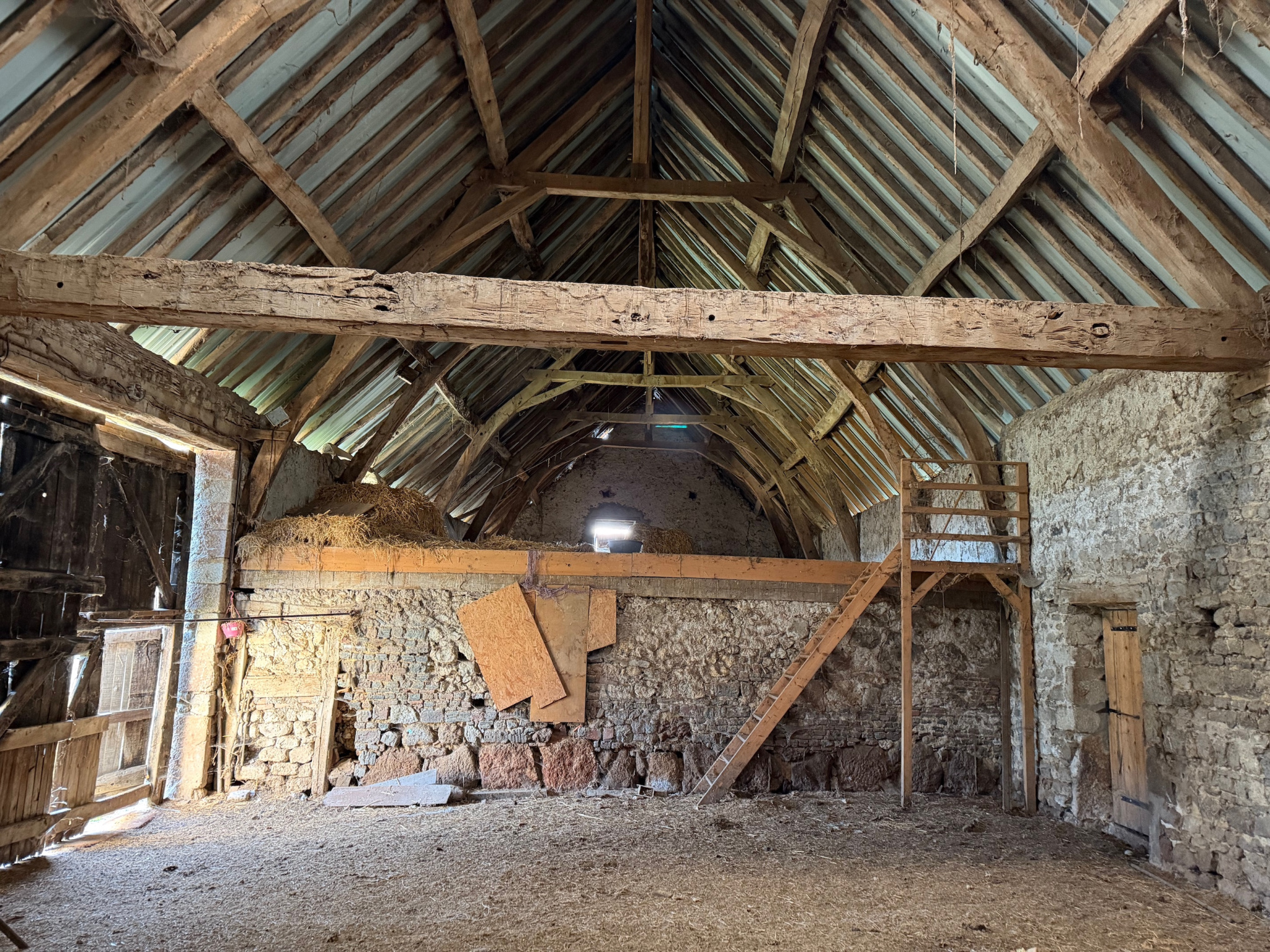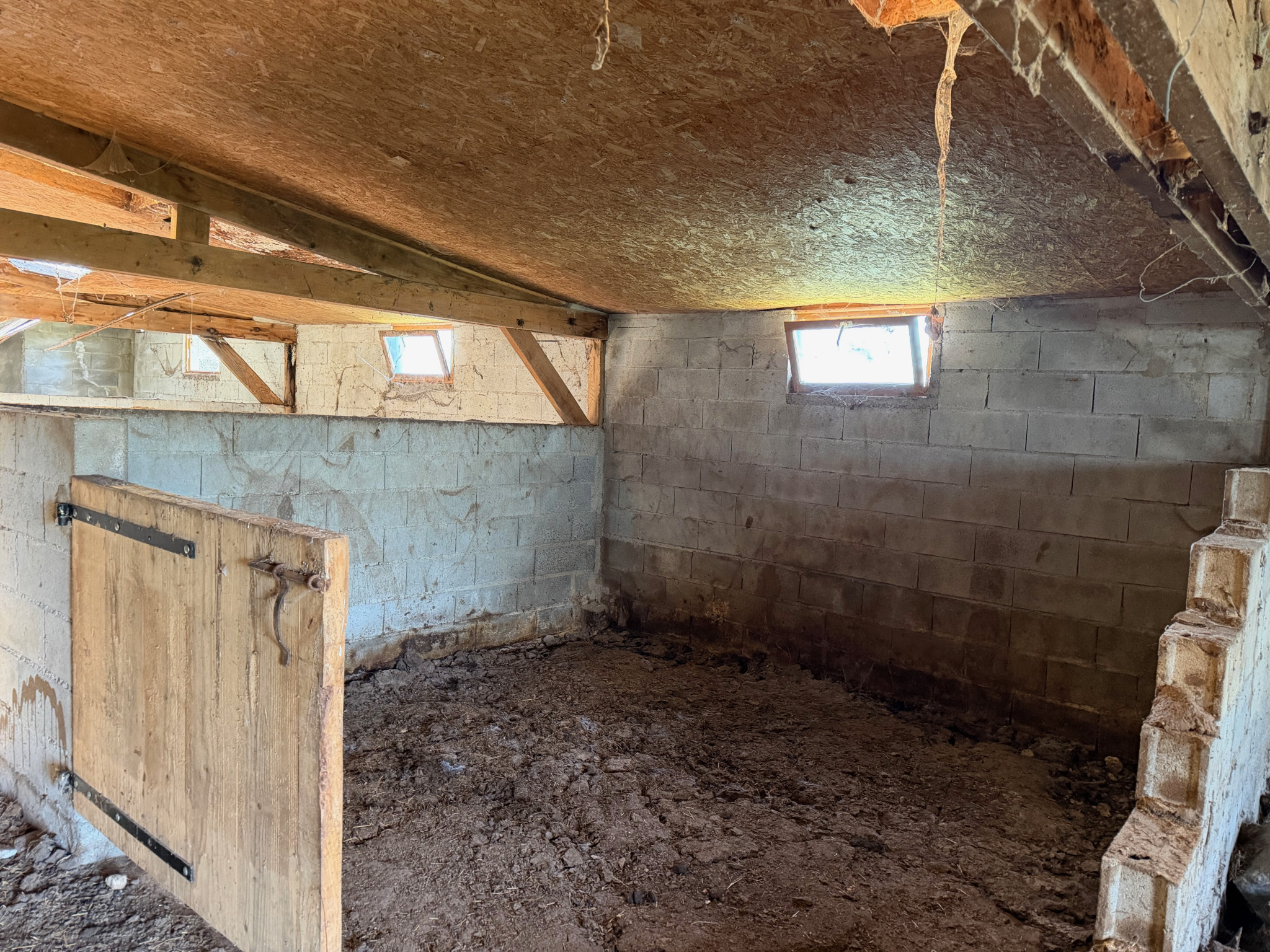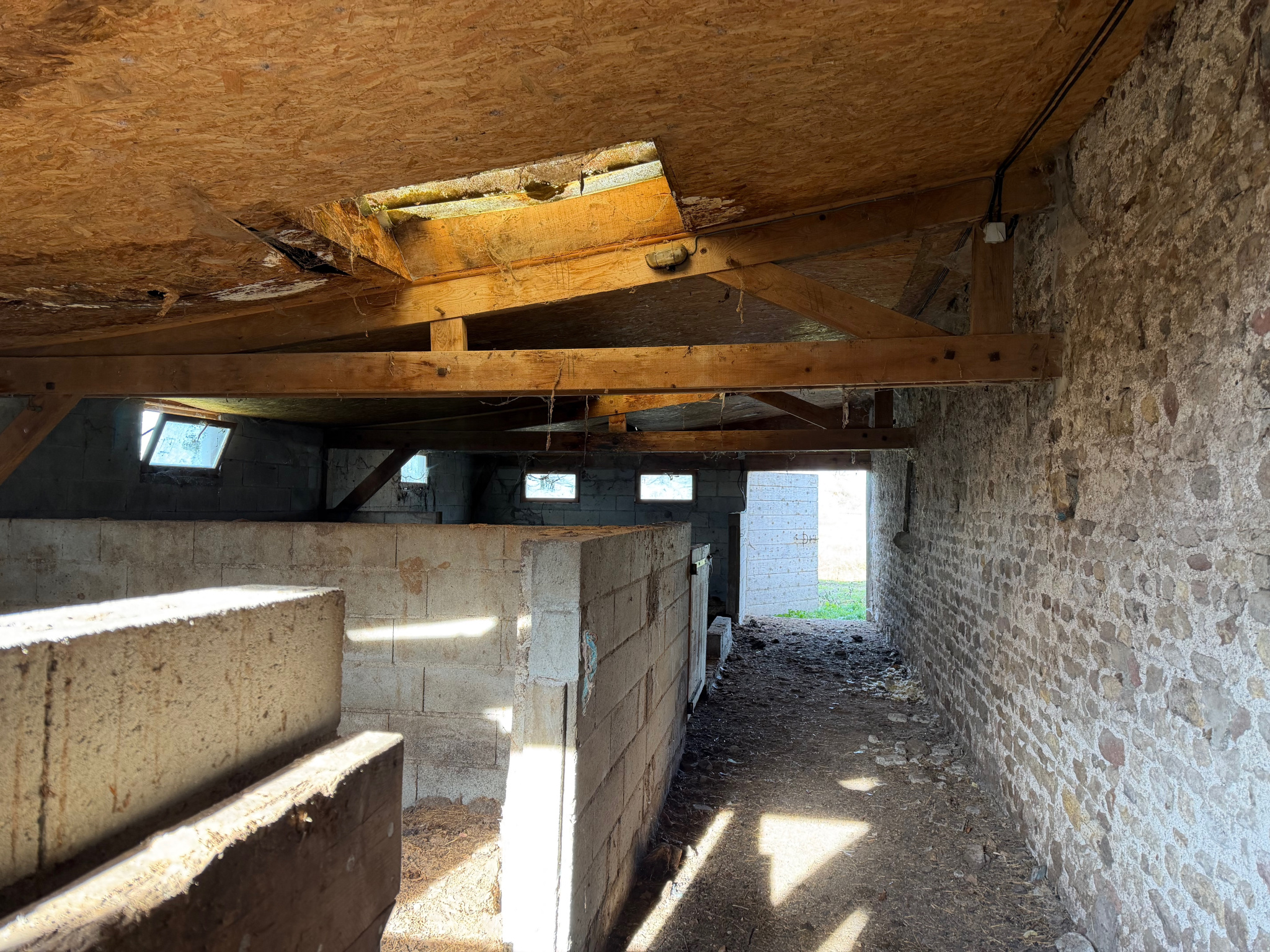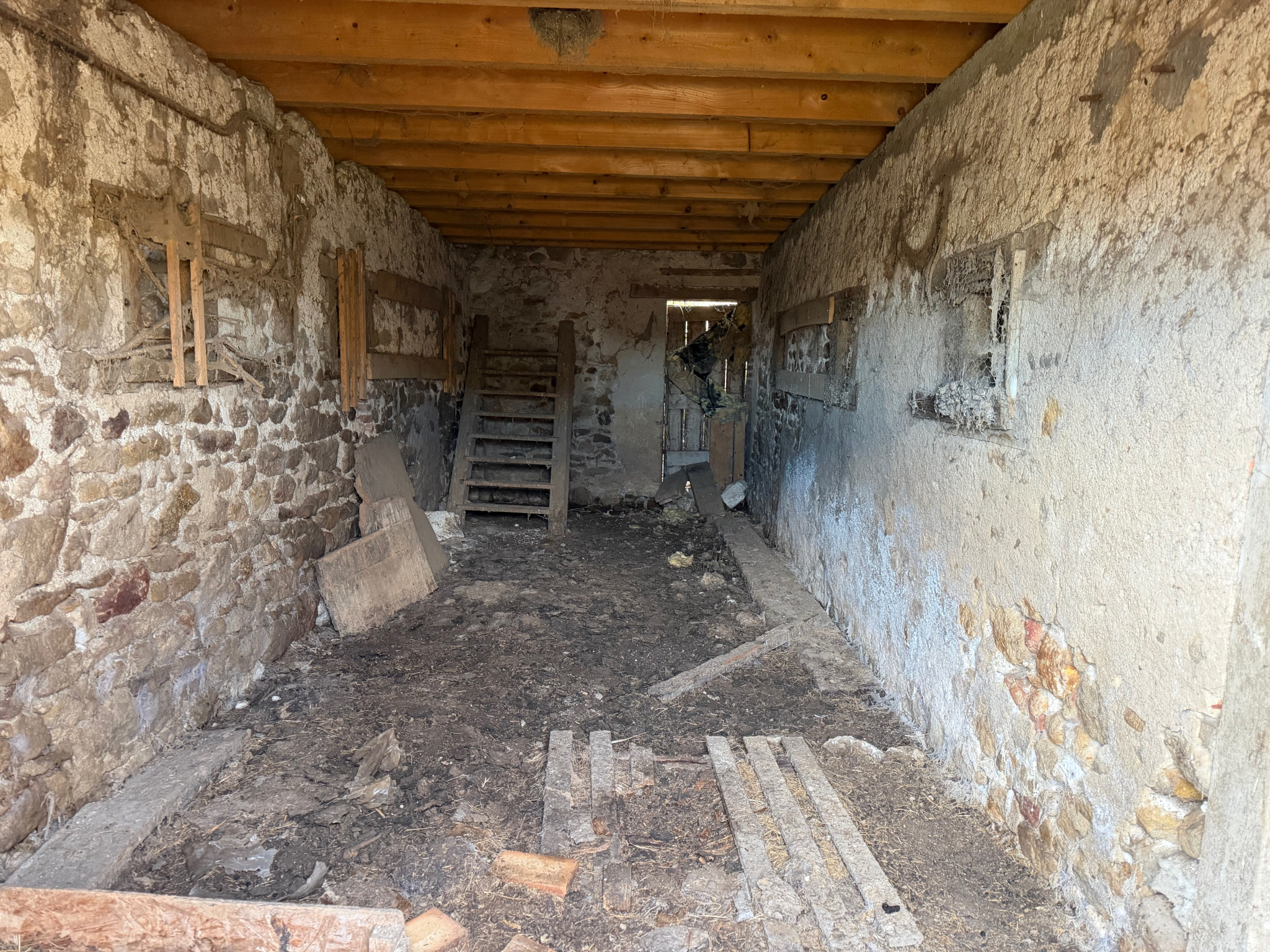 Auv 1210 : Beau projet de rénovation : ferme sur plus de 28 Ha.Cette ancienne exploitation équestre dispose de très belles terres avec une allée bordée de vieux arbres. On y trouve plusieurs points d’eau. Le terrain est relativement plat et exploitable pour de nombreux projets.Les bâtiments sont disposés en U, ce qui crée une agréable cour intérieure.La situation, le potentiel et l’importante superficie de terrain constituent une excellente base pour un projet exceptionnel, mais un investissement reste nécessaire afin de remettre l’ensemble au goût du jour.L’intérieur de la maison ne comporte pas de murs porteurs, ce qui permet de créer une toute nouvelle distribution ou de grands volumes. Voici la disposition actuelle. En entrant dans la maison, on accède directement au séjour de 37m², avec une hauteur sous plafond de 2,6m. Cette pièce comprend une grande cheminée ainsi que l’escalier menant à l’étage. Depuis le séjour, une porte donne accès à un petit bâtiment arrière dont la toiture s’est effondrée, rendant cet espace actuellement inaccessible.À droite du séjour se trouve la salle à manger, un espace ouvert de 17m² avec la possibilité d’installer un poêle. Celle-ci est attenante à la cuisine de 13m², équipée de portes-fenêtres donnant directement accès au jardin. À côté de la cuisine se trouvent un WC séparé ainsi qu’un cellier ou une arrière-cuisine, offrant une organisation pratique de cet espace de vie.À gauche du séjour se situe une pièce supplémentaire faisant office de hall d’entrée de 6m², avec sa propre porte extérieure et un escalier menant au grenier. À l’arrière du bâtiment se trouve également un grand espace de rangement de 12,5m², équipé d’étagères et disposant de plusieurs portes donnant également accès au jardin.La maison est équipée d’un chauffage au gaz par radiateurs, alimenté par une citerne à gaz. Il n’est pas certain que cette installation soit encore en état de fonctionnement.Attenant à la maison se trouve un petit auvent avec un four à pain, dont la toiture semble encore intacte.L’étage offre une surface de 77,5m² et se compose actuellement d’un couloir, de trois chambres, d’une salle de bains et d’un WC séparé. La hauteur sous plafond est de 2,6m jusqu’au plafond suspendu. Au-dessus se trouve un vaste grenier avec une hauteur au faîtage de 4,30m.Cet étage nécessite d’importants travaux de rénovation, notamment au niveau de la toiture, fortement endommagée et seulement réparée de manière provisoire. Les cloisons intérieures sont principalement en plaques de plâtre ou en matériau similaire, ce qui permet de modifier relativement facilement l’agencement.L’ensemble est implanté sur une parcelle de plus de 28 hectares et comprend, outre le bâtiment principal, plusieurs dépendances et écuries.Directement à gauche de la maison, attenants à celle-ci, se trouvent plusieurs bâtiments d’écuries d’une superficie respective de 18m², 39m² et 11m², chacun disposant de sa propre entrée. Au-dessus de ces écuries se trouve un grenier à foin ou grenier général, accessible par un escalier depuis la maison.On trouve également une grande grange indépendante d’une superficie totale de 230m². Parmi ceux-ci, 106m² constituent un vaste espace ouvert, le reste étant réparti entre des espaces de grenier et d’anciennes zones d’écuries au rez-de-chaussée. La hauteur au faîtage de cette grange atteint 8,30m, offrant un volume exploitable exceptionnel.À l’avant de la grange se trouvent trois annexes d’une superficie respective de 21m², 20m² et 21m². À droite de la maison se situe un auvent de 56m² avec une toiture en amiante endommagée nécessitant des travaux, attenant à un garage de 21m².À l’arrière de la grande grange se trouve également une extension de 86m², qui servait probablement autrefois de boxes à chevaux. Dans cette partie, un important défaut structurel a été constaté, une partie de la toiture en amiante s’étant effondrée, ce qui rend une intervention immédiate nécessaire.Il s’agit donc d’un très bel ensemble, mais représentant un vaste projet de rénovation.
