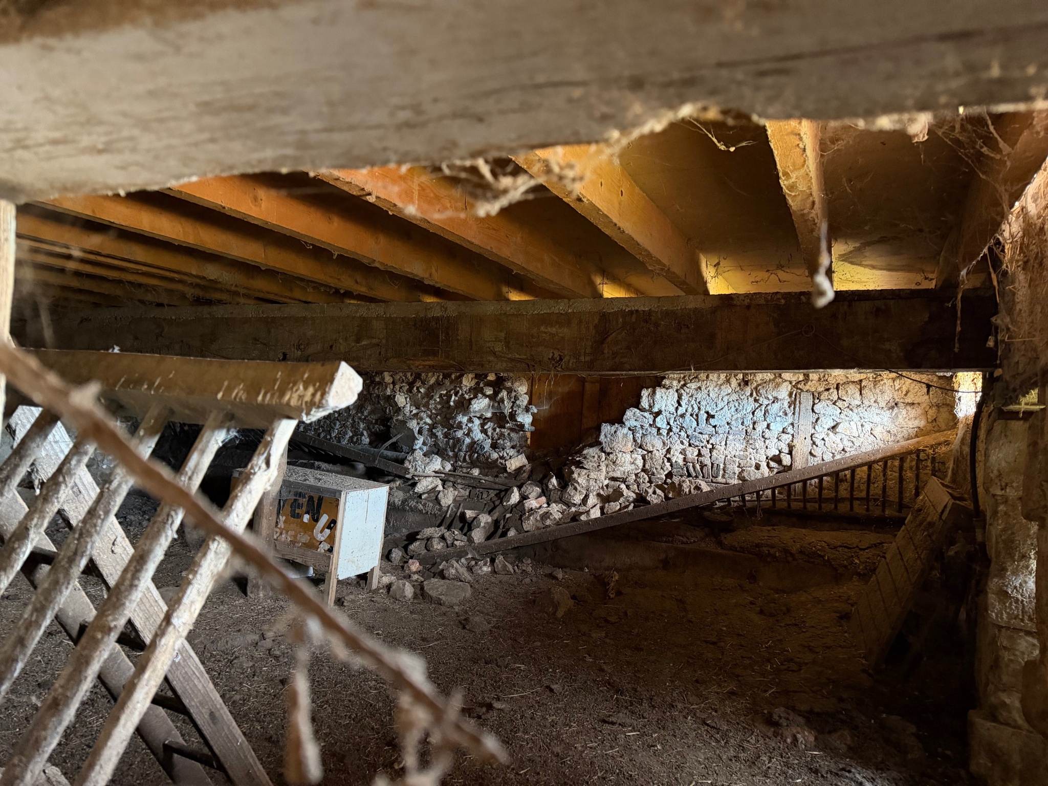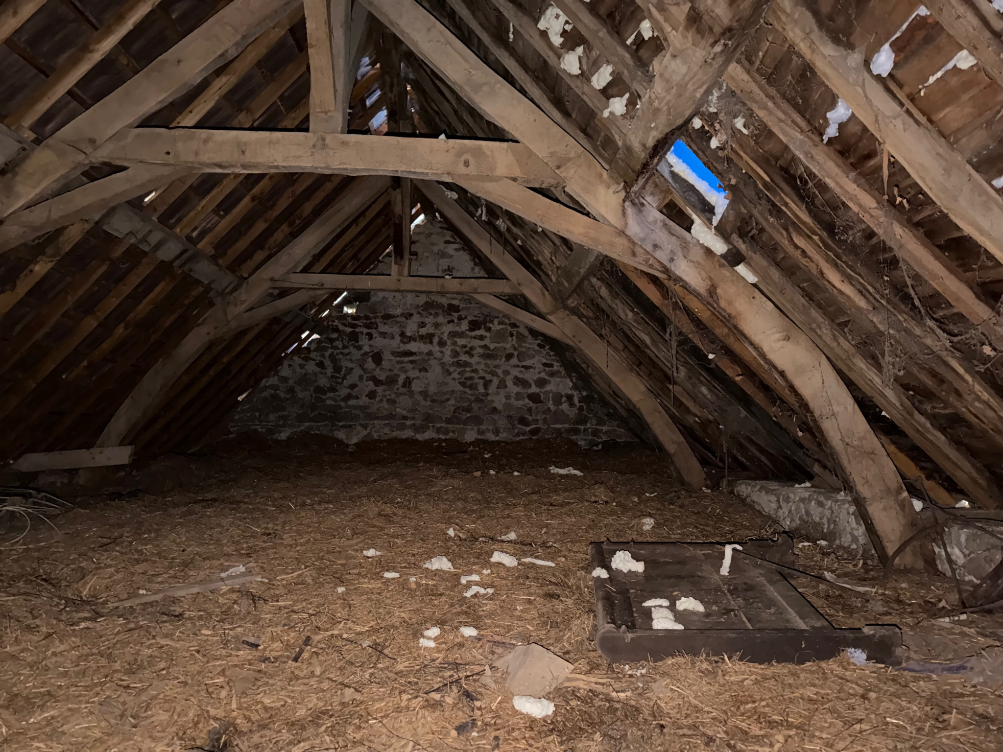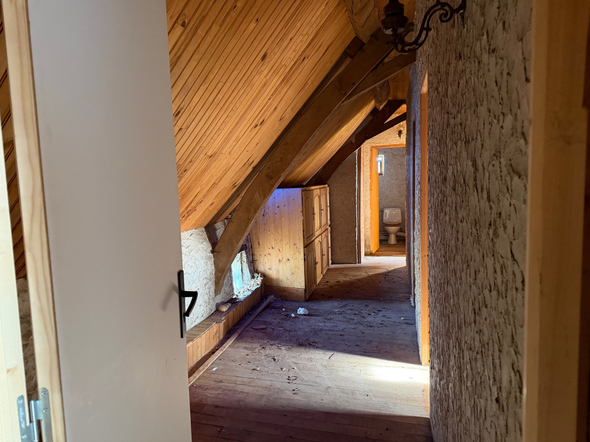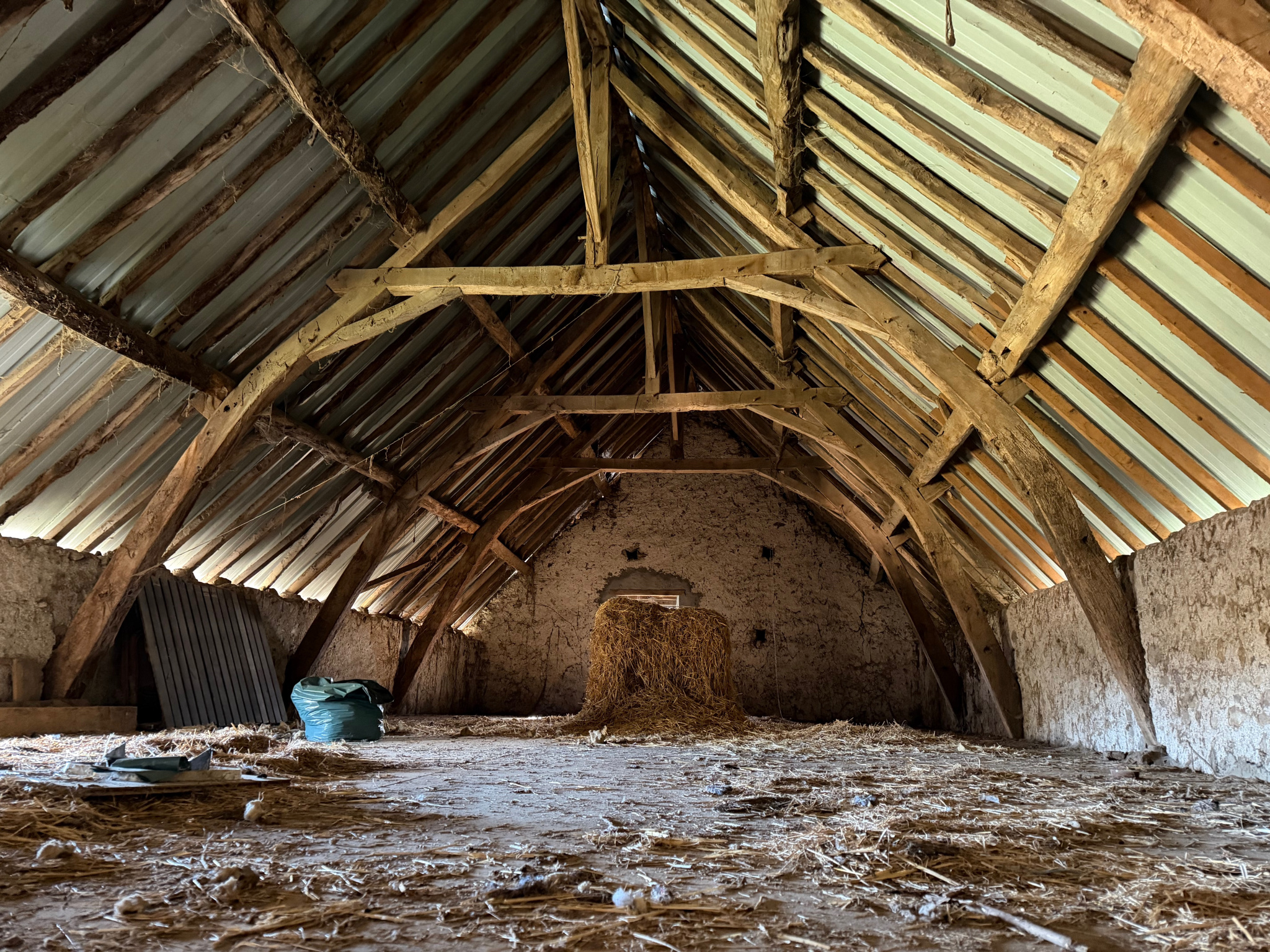 Auv 1210 : Beau projet de rénovation : ferme sur plus de 28 Ha.Cette ancienne exploitation équestre dispose de très belles terres avec une allée bordée de vieux arbres. On y trouve plusieurs points d’eau. Le terrain est relativement plat et exploitable pour de nombreux projets.Les bâtiments sont disposés en U, ce qui crée une agréable cour intérieure.La situation, le potentiel et l’importante superficie de terrain constituent une excellente base pour un projet exceptionnel, mais un investissement reste nécessaire afin de remettre l’ensemble au goût du jour.L’intérieur de la maison ne comporte pas de murs porteurs, ce qui permet de créer une toute nouvelle distribution ou de grands volumes. Voici la disposition actuelle. En entrant dans la maison, on accède directement au séjour de 37m², avec une hauteur sous plafond de 2,6m. Cette pièce comprend une grande cheminée ainsi que l’escalier menant à l’étage. Depuis le séjour, une porte donne accès à un petit bâtiment arrière dont la toiture s’est effondrée, rendant cet espace actuellement inaccessible.À droite du séjour se trouve la salle à manger, un espace ouvert de 17m² avec la possibilité d’installer un poêle. Celle-ci est attenante à la cuisine de 13m², équipée de portes-fenêtres donnant directement accès au jardin. À côté de la cuisine se trouvent un WC séparé ainsi qu’un cellier ou une arrière-cuisine, offrant une organisation pratique de cet espace de vie.À gauche du séjour se situe une pièce supplémentaire faisant office de hall d’entrée de 6m², avec sa propre porte extérieure et un escalier menant au grenier. À l’arrière du bâtiment se trouve également un grand espace de rangement de 12,5m², équipé d’étagères et disposant de plusieurs portes donnant également accès au jardin.La maison est équipée d’un chauffage au gaz par radiateurs, alimenté par une citerne à gaz. Il n’est pas certain que cette installation soit encore en état de fonctionnement.Attenant à la maison se trouve un petit auvent avec un four à pain, dont la toiture semble encore intacte.L’étage offre une surface de 77,5m² et se compose actuellement d’un couloir, de trois chambres, d’une salle de bains et d’un WC séparé. La hauteur sous plafond est de 2,6m jusqu’au plafond suspendu. Au-dessus se trouve un vaste grenier avec une hauteur au faîtage de 4,30m.Cet étage nécessite d’importants travaux de rénovation, notamment au niveau de la toiture, fortement endommagée et seulement réparée de manière provisoire. Les cloisons intérieures sont principalement en plaques de plâtre ou en matériau similaire, ce qui permet de modifier relativement facilement l’agencement.L’ensemble est implanté sur une parcelle de plus de 28 hectares et comprend, outre le bâtiment principal, plusieurs dépendances et écuries.Directement à gauche de la maison, attenants à celle-ci, se trouvent plusieurs bâtiments d’écuries d’une superficie respective de 18m², 39m² et 11m², chacun disposant de sa propre entrée. Au-dessus de ces écuries se trouve un grenier à foin ou grenier général, accessible par un escalier depuis la maison.On trouve également une grande grange indépendante d’une superficie totale de 230m². Parmi ceux-ci, 106m² constituent un vaste espace ouvert, le reste étant réparti entre des espaces de grenier et d’anciennes zones d’écuries au rez-de-chaussée. La hauteur au faîtage de cette grange atteint 8,30m, offrant un volume exploitable exceptionnel.À l’avant de la grange se trouvent trois annexes d’une superficie respective de 21m², 20m² et 21m². À droite de la maison se situe un auvent de 56m² avec une toiture en amiante endommagée nécessitant des travaux, attenant à un garage de 21m².À l’arrière de la grande grange se trouve également une extension de 86m², qui servait probablement autrefois de boxes à chevaux. Dans cette partie, un important défaut structurel a été constaté, une partie de la toiture en amiante s’étant effondrée, ce qui rend une intervention immédiate nécessaire.Il s’agit donc d’un très bel ensemble, mais représentant un vaste projet de rénovation.