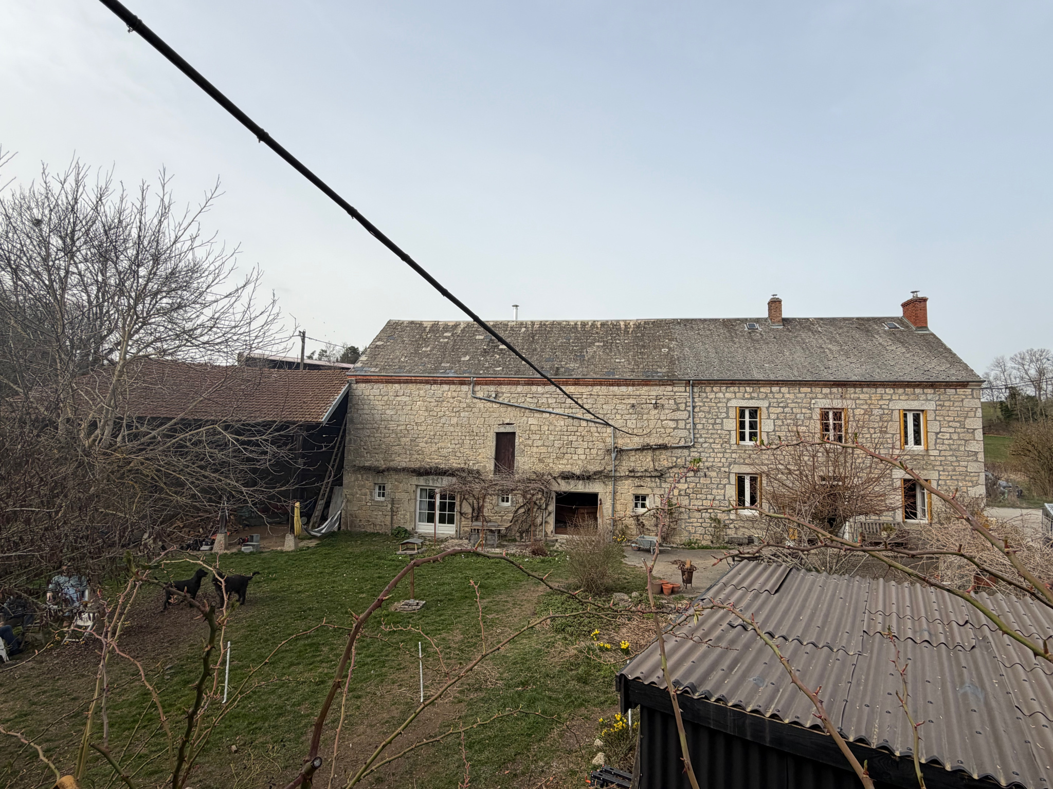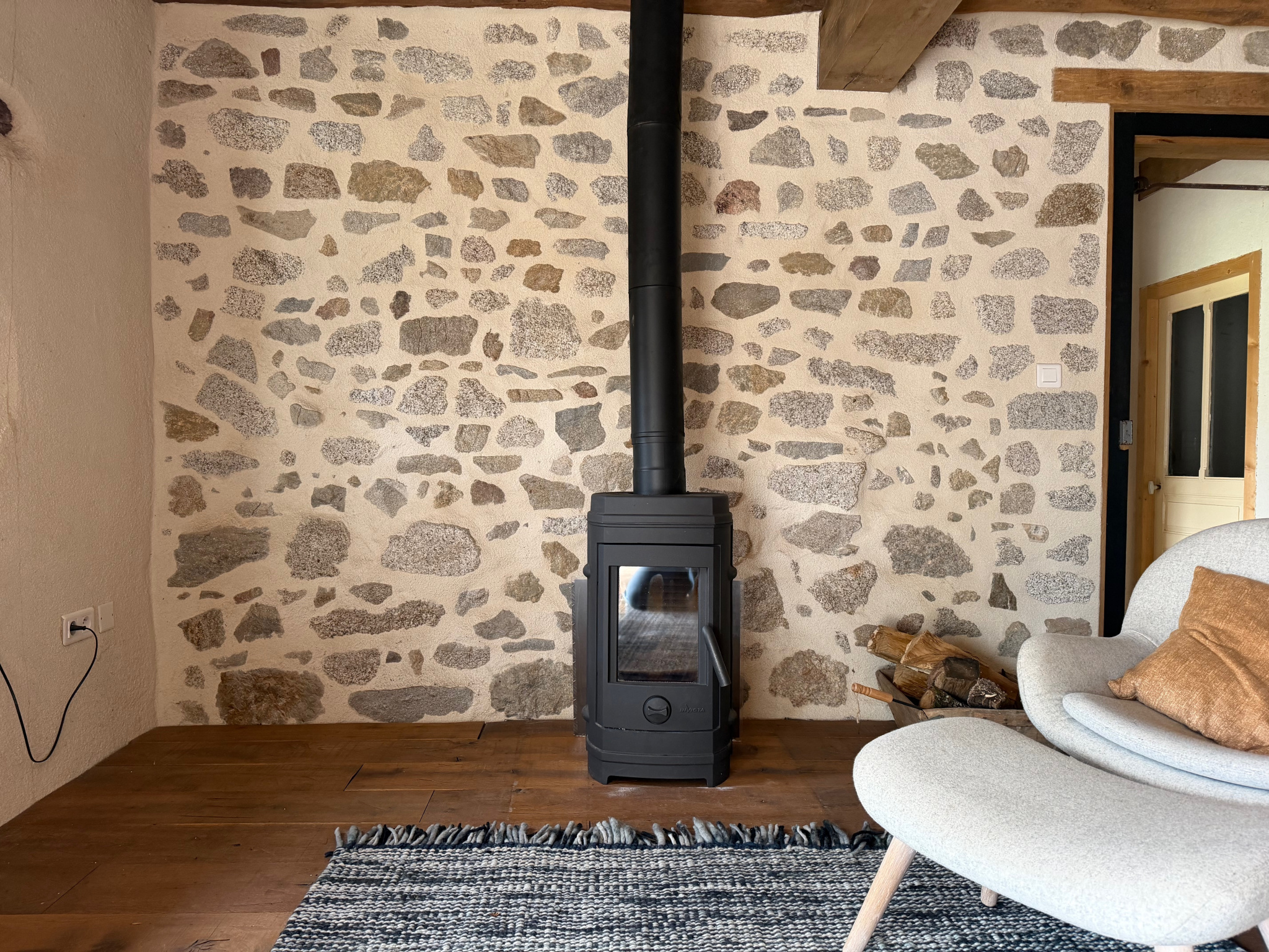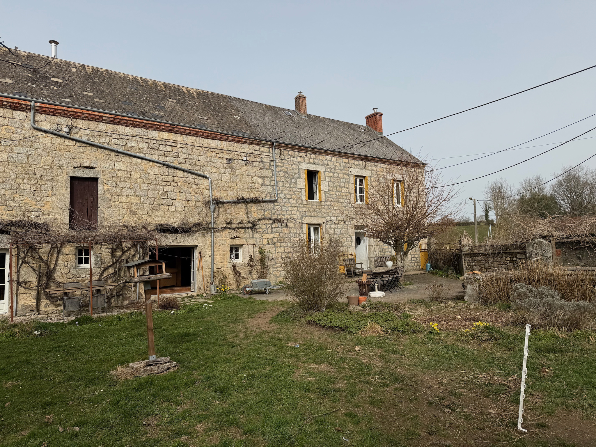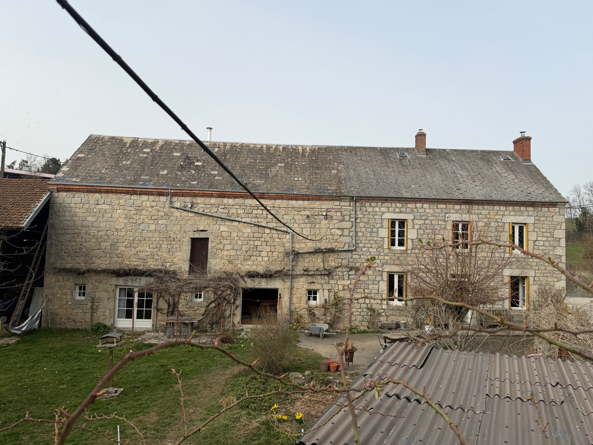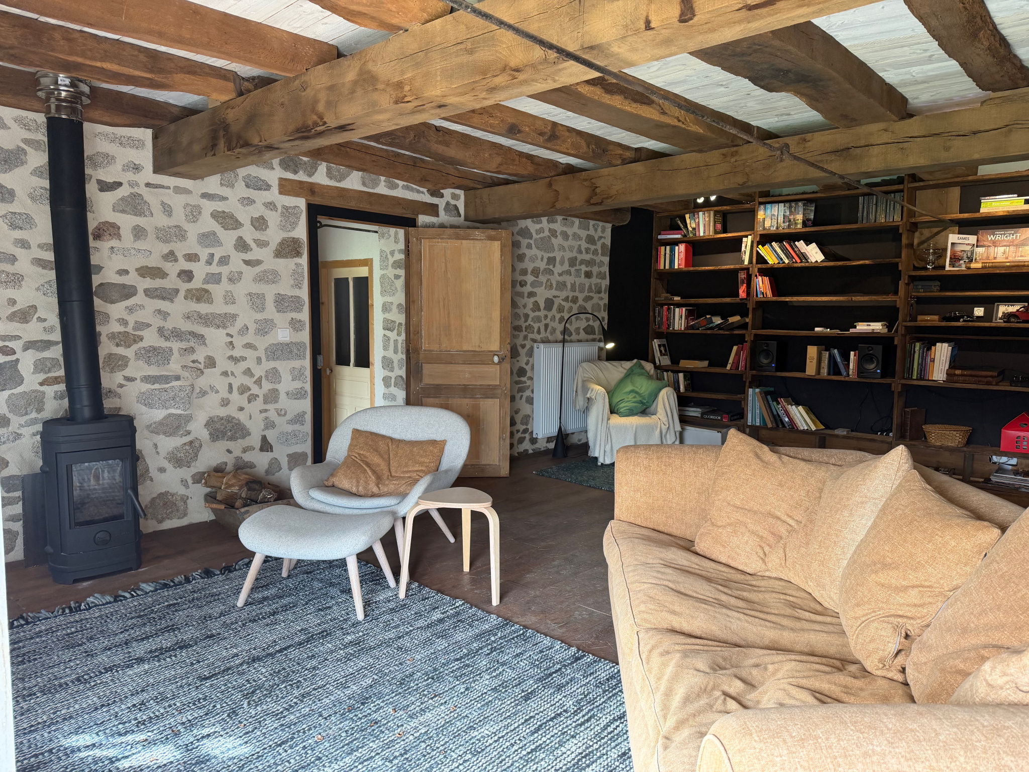 Auv 1215 : Maison en magnifiques pierres, dépendances et jardin.La maison a été entièrement rénovée avec beaucoup d’attention portée aux détails authentiques. Poutres apparentes, murs en pierres naturelles jontés, superbe plancher en bois dans le séjour, etc. La plupart des fenêtres sont en double vitrage, mais pas toutes.Toute la maison est équipée d’un chauffage central au fioul.Au milieu de la maison se trouve une superbe pièce de vie de 51m². C’est le cœur de la maison, avec un beau plancher en larges lames de chêne, un poêle à bois et des portes doubles donnant sur le jardin. Entre les poutres, la hauteur sous plafond est d’environ 2m50. Magnifique bibliothèque.La salle à manger fait 27m² et dispose également d’un poêle à bois, d’un parquet en chêne et d’un plafond habillé de bois.La cuisine équipée mesure 23m² et possède une belle ancienne cheminée ainsi qu’un poêle à bois, un sol carrelé et un plafond en bois peint en blanc. Derrière la cuisine se trouve un espace de rangement avec machine à laver et réfrigérateur, ainsi qu’un toilette supplémentaire.C’est également ici que se trouve l’accès à la cave de 28m² avec la cuve à fioul et la chaudière du chauffage central.Au rez-de-chaussée, il y a une première chambre de 13,5m² avec d’agréables portes doubles donnant sur le jardin. Plafond en bois, beaux planchers et salle de bains en suite. La magnifique salle de bains de 8m² comprend une douche à l’italienne, une baignoire en fonte sur pieds, un toilette et un beau meuble lavabo.Il y a également une pièce de 5m², idéale pour installer machine à laver et sèche-linge.Au premier étage se trouvent encore trois chambres agréables de 19,5, 12 et 9,5m². Il y a aussi une jolie salle d’eau (5m²) avec douche, toilette et lavabo.Il y a également un palier spacieux à l’étage de 12m², escalier compris. Cet étage est lui aussi chauffé par le chauffage central. Il y a encore un double grenier (surfaces au sol de 36 et 28m²) qui pourrait être aménagé. La toiture du grenier n’est pas isolée, mais le plancher entre le grenier et les chambres l’est.Le jardin est très joliment aménagé, avec une table pour manger et plusieurs coins salon agréables. On y trouve également de belles plantations. Le long de la façade, une pergola a été installée sous laquelle on peut s’asseoir.Il y a ensuite plusieurs dépendances attenantes. Tout d’abord un grand auvent d’environ 85m².Dans la continuité se trouve un espace de grange sous toit en pente de 46m² avec une toiture en moins bon état. À côté se trouve encore un petit auvent de 13m².Il y a aussi un abri en bois récemment construit de 32m². Il serait pratique d’y créer un passage afin de pouvoir entrer en voiture depuis le petit chemin situé à l’arrière.Sur le côté de la maison se trouve un magnifique mur en pierres naturelles avec un portillon piéton.Il y a également un grand espace de grange, accessible par la grande porte située à l’arrière du bâtiment, le long du petit chemin. Cet espace de grange ou d’atelier mesure environ 88,5m². Le point le plus haut du toit atteint 6,2 mètres.Très belle maison agréable.