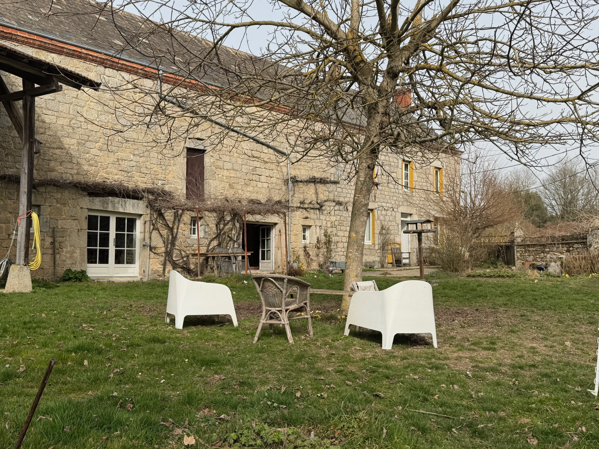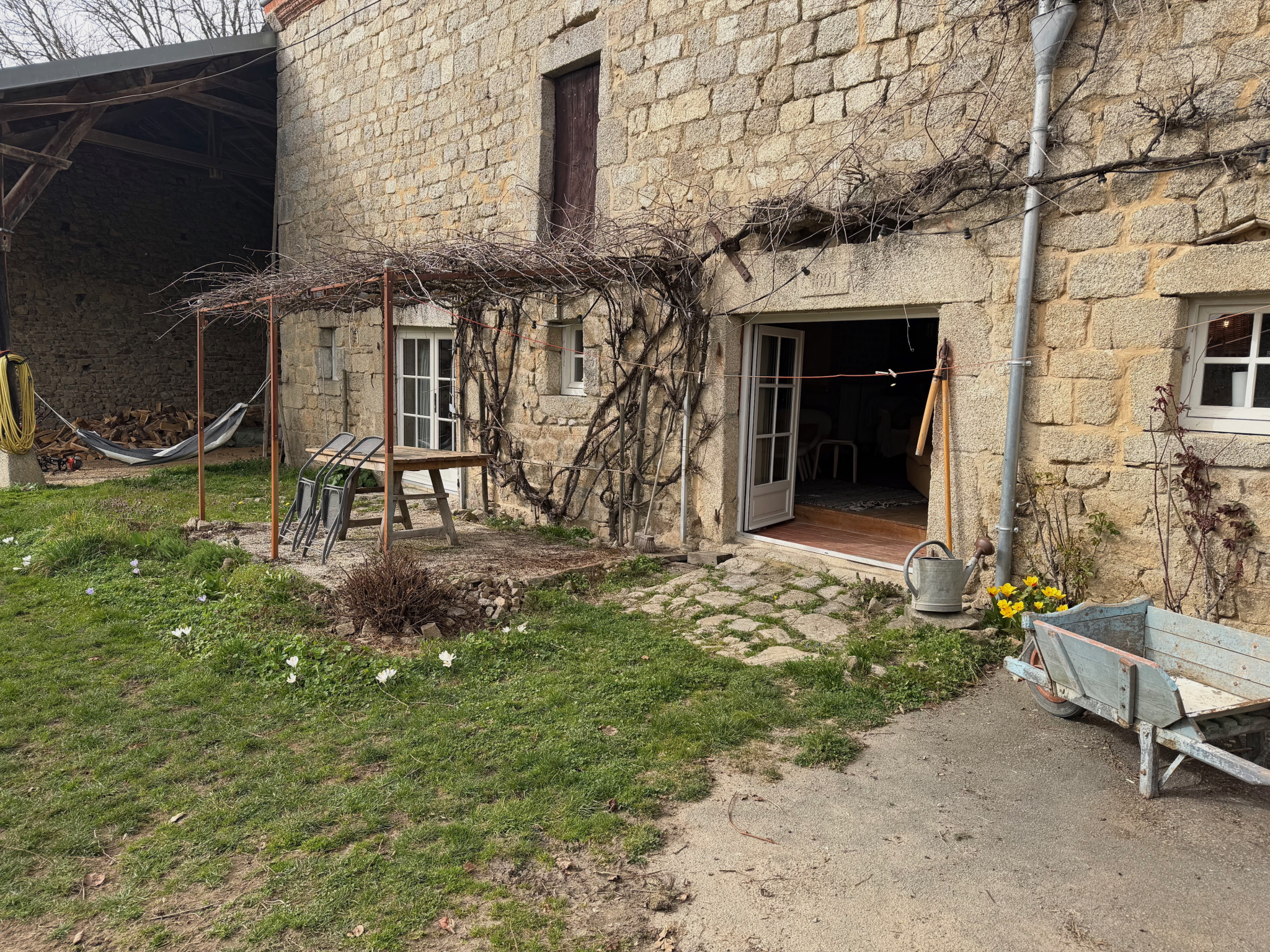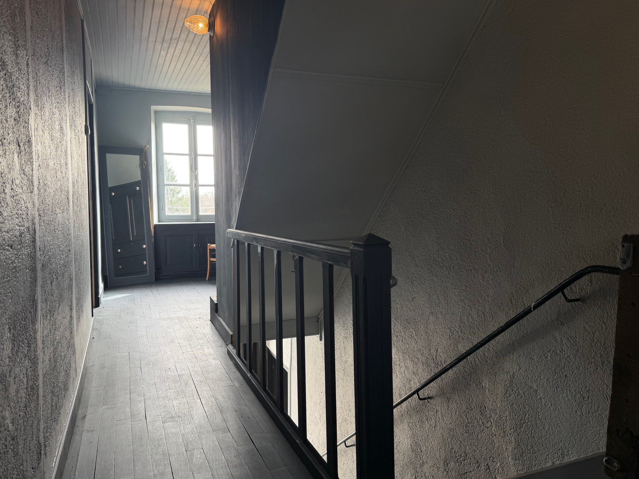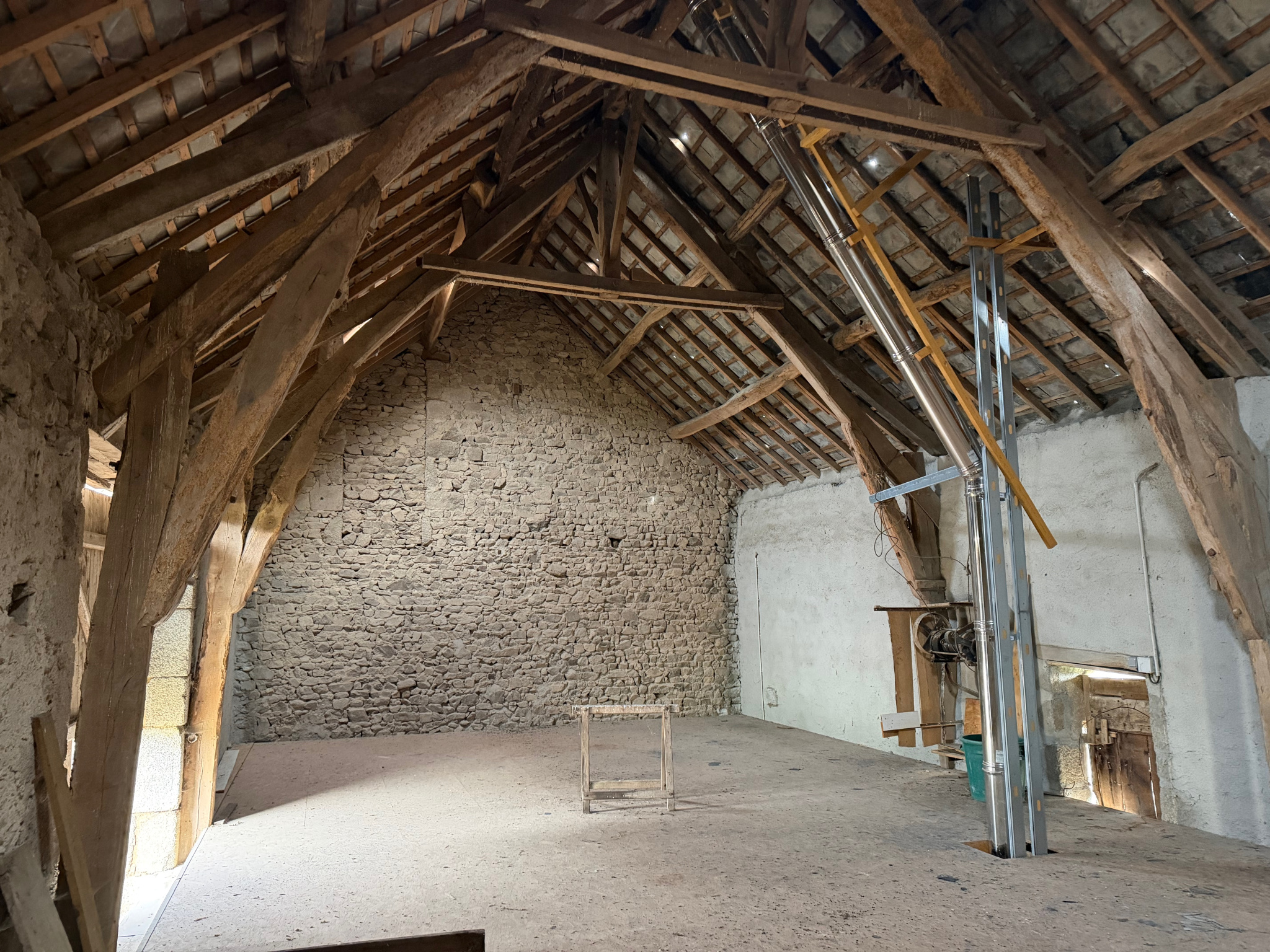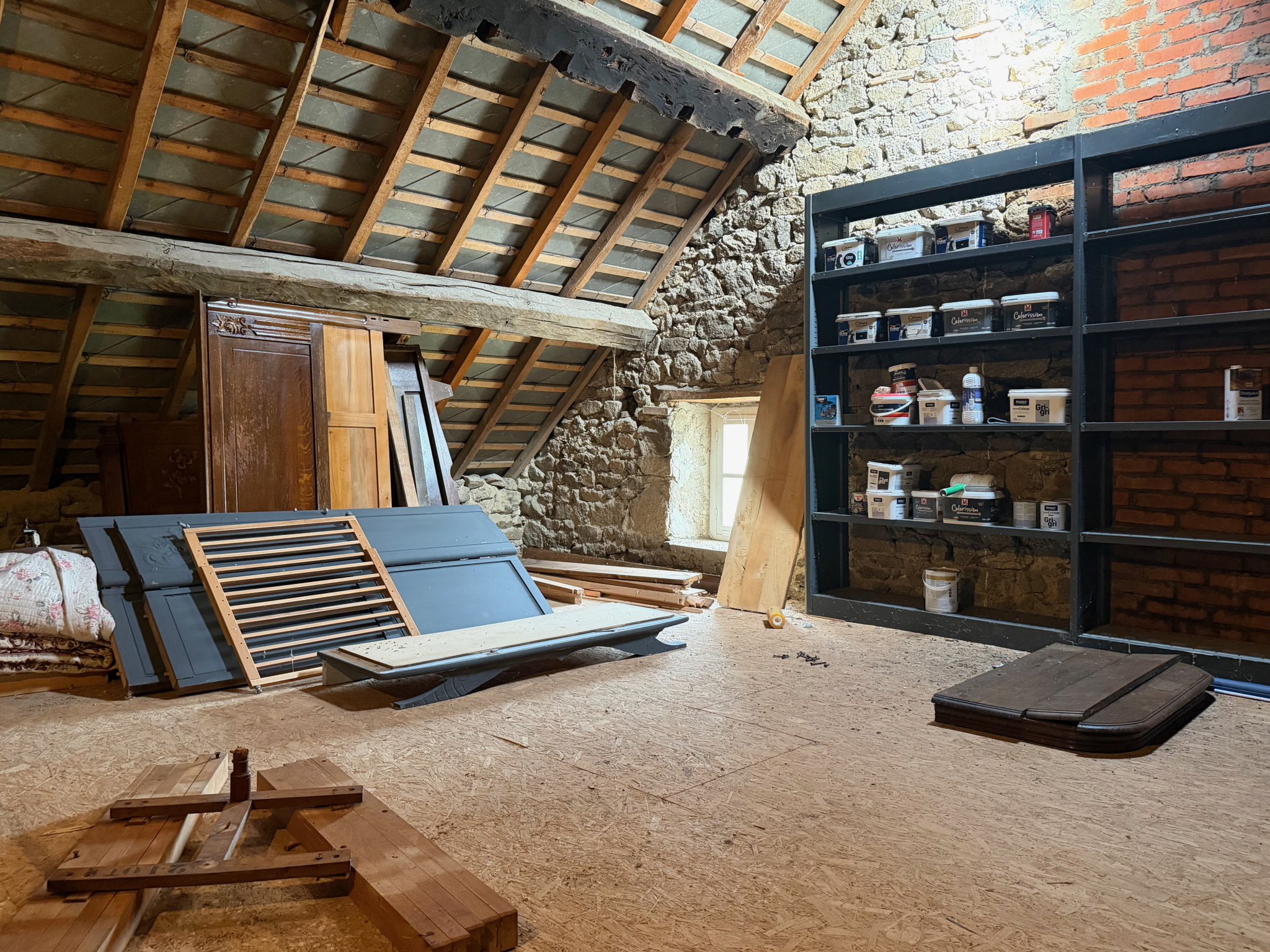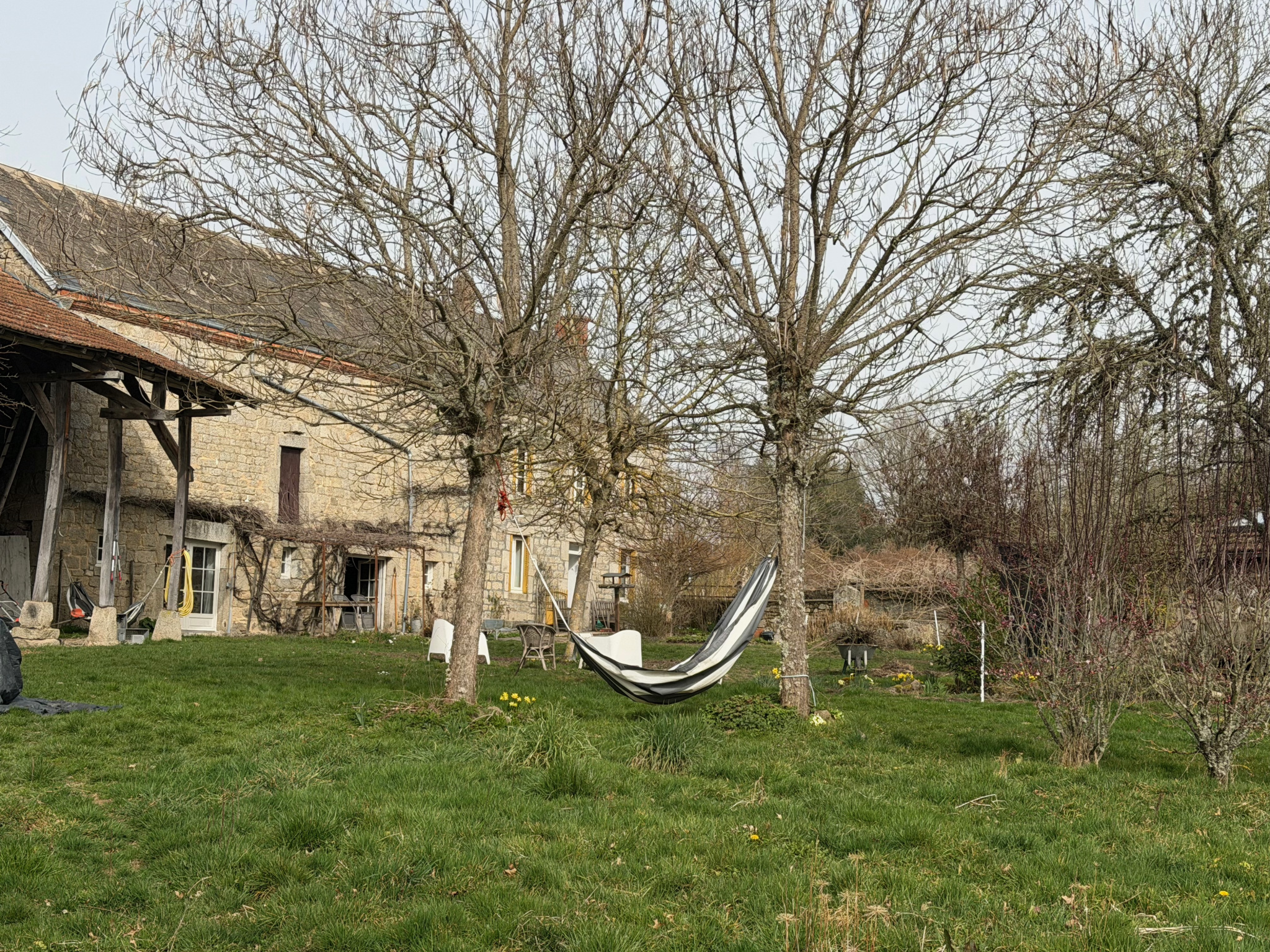 Auv 1215 : Maison en magnifiques pierres, dépendances et jardin.La maison a été entièrement rénovée avec beaucoup d’attention portée aux détails authentiques. Poutres apparentes, murs en pierres naturelles jontés, superbe plancher en bois dans le séjour, etc. La plupart des fenêtres sont en double vitrage, mais pas toutes.Toute la maison est équipée d’un chauffage central au fioul.Au milieu de la maison se trouve une superbe pièce de vie de 51m². C’est le cœur de la maison, avec un beau plancher en larges lames de chêne, un poêle à bois et des portes doubles donnant sur le jardin. Entre les poutres, la hauteur sous plafond est d’environ 2m50. Magnifique bibliothèque.La salle à manger fait 27m² et dispose également d’un poêle à bois, d’un parquet en chêne et d’un plafond habillé de bois.La cuisine équipée mesure 23m² et possède une belle ancienne cheminée ainsi qu’un poêle à bois, un sol carrelé et un plafond en bois peint en blanc. Derrière la cuisine se trouve un espace de rangement avec machine à laver et réfrigérateur, ainsi qu’un toilette supplémentaire.C’est également ici que se trouve l’accès à la cave de 28m² avec la cuve à fioul et la chaudière du chauffage central.Au rez-de-chaussée, il y a une première chambre de 13,5m² avec d’agréables portes doubles donnant sur le jardin. Plafond en bois, beaux planchers et salle de bains en suite. La magnifique salle de bains de 8m² comprend une douche à l’italienne, une baignoire en fonte sur pieds, un toilette et un beau meuble lavabo.Il y a également une pièce de 5m², idéale pour installer machine à laver et sèche-linge.Au premier étage se trouvent encore trois chambres agréables de 19,5, 12 et 9,5m². Il y a aussi une jolie salle d’eau (5m²) avec douche, toilette et lavabo.Il y a également un palier spacieux à l’étage de 12m², escalier compris. Cet étage est lui aussi chauffé par le chauffage central. Il y a encore un double grenier (surfaces au sol de 36 et 28m²) qui pourrait être aménagé. La toiture du grenier n’est pas isolée, mais le plancher entre le grenier et les chambres l’est.Le jardin est très joliment aménagé, avec une table pour manger et plusieurs coins salon agréables. On y trouve également de belles plantations. Le long de la façade, une pergola a été installée sous laquelle on peut s’asseoir.Il y a ensuite plusieurs dépendances attenantes. Tout d’abord un grand auvent d’environ 85m².Dans la continuité se trouve un espace de grange sous toit en pente de 46m² avec une toiture en moins bon état. À côté se trouve encore un petit auvent de 13m².Il y a aussi un abri en bois récemment construit de 32m². Il serait pratique d’y créer un passage afin de pouvoir entrer en voiture depuis le petit chemin situé à l’arrière.Sur le côté de la maison se trouve un magnifique mur en pierres naturelles avec un portillon piéton.Il y a également un grand espace de grange, accessible par la grande porte située à l’arrière du bâtiment, le long du petit chemin. Cet espace de grange ou d’atelier mesure environ 88,5m². Le point le plus haut du toit atteint 6,2 mètres.Très belle maison agréable.