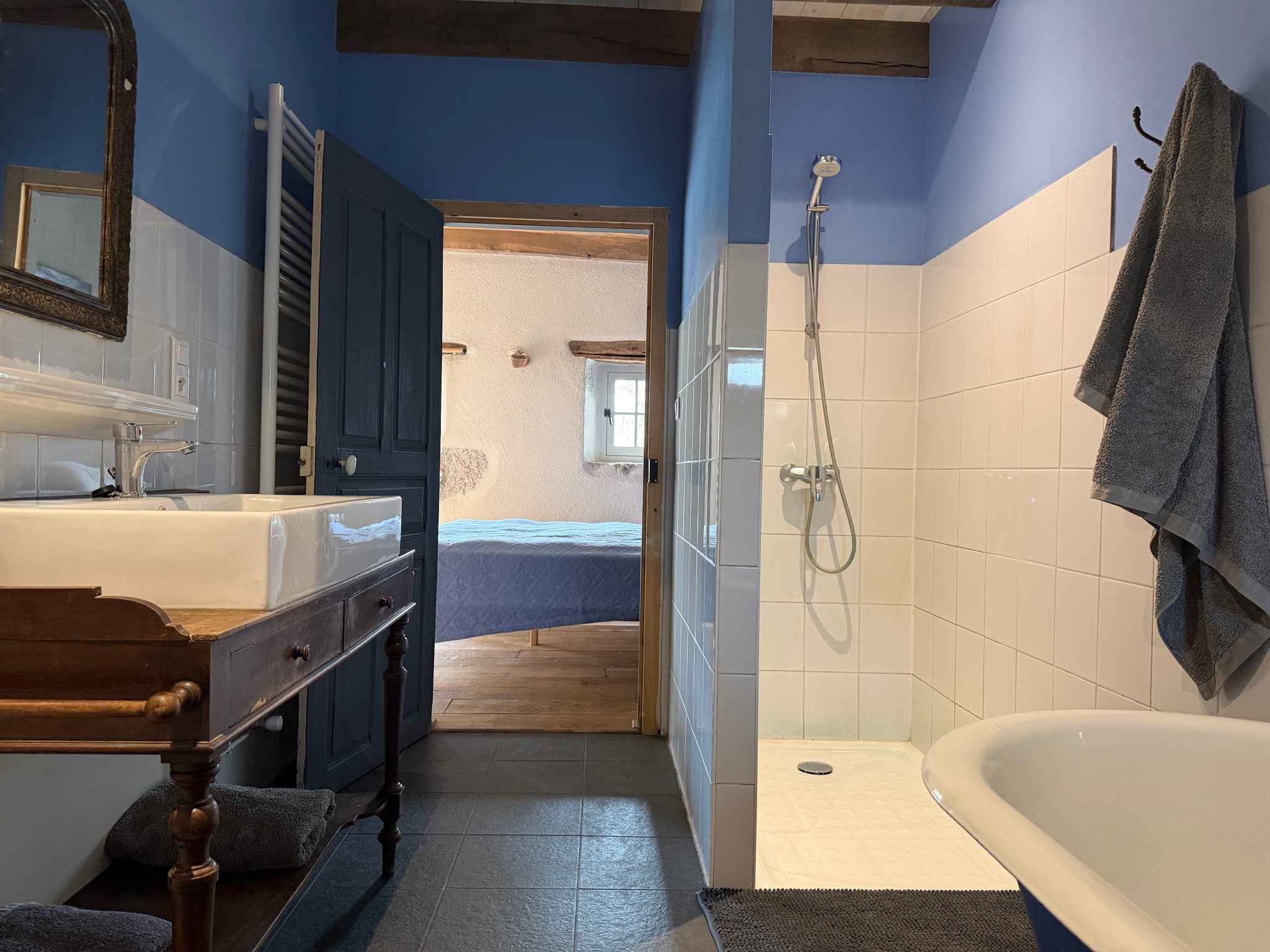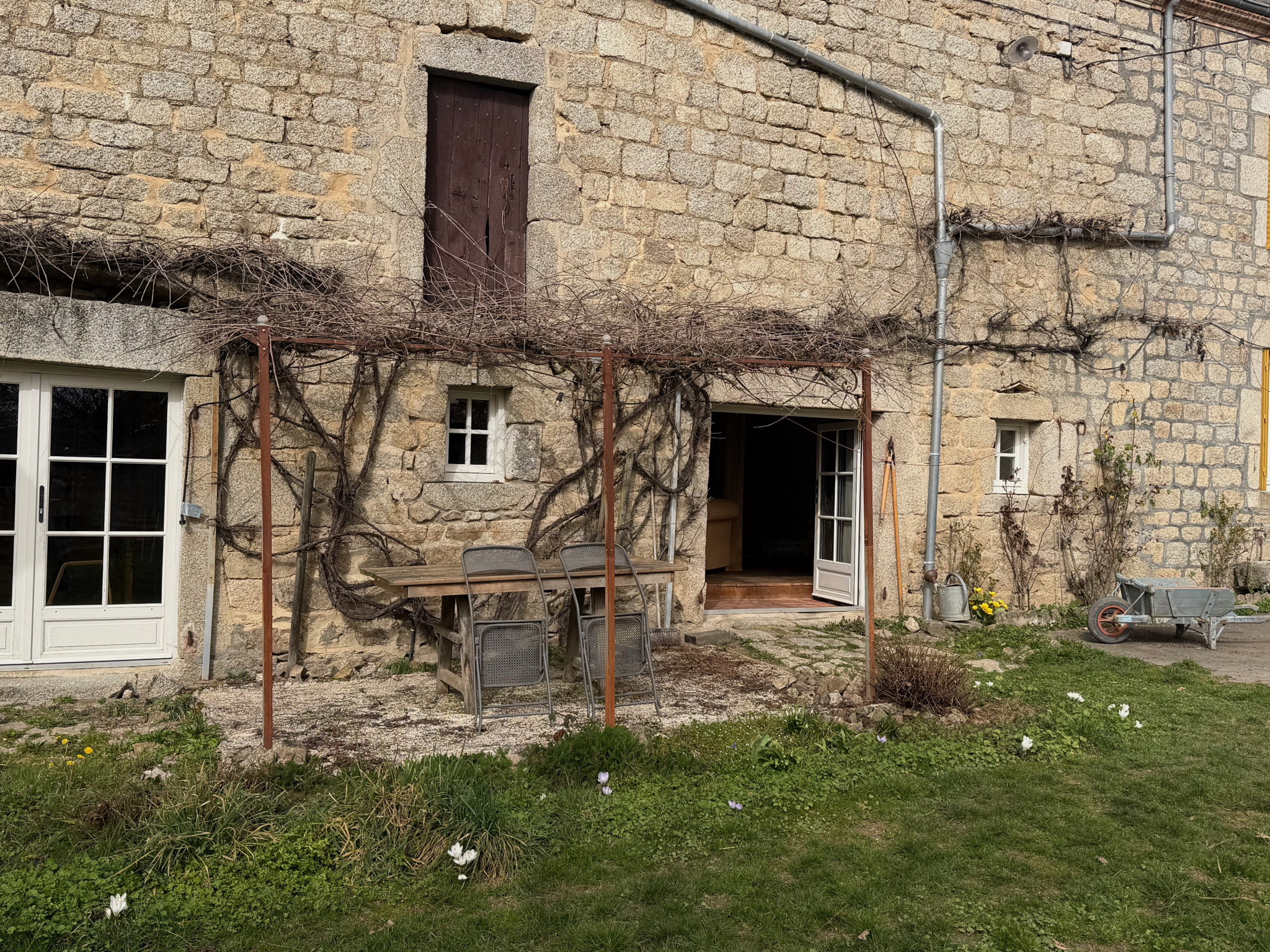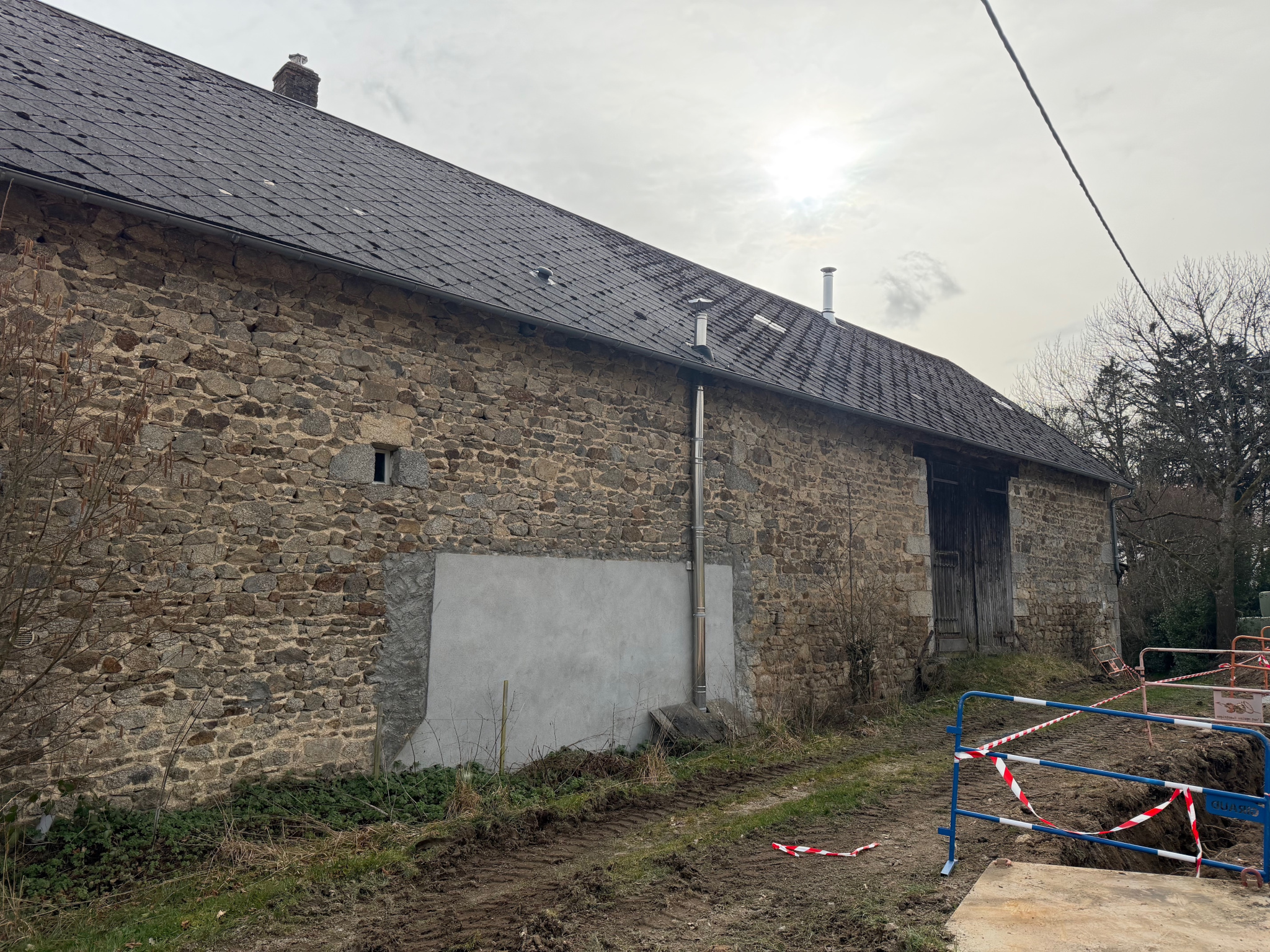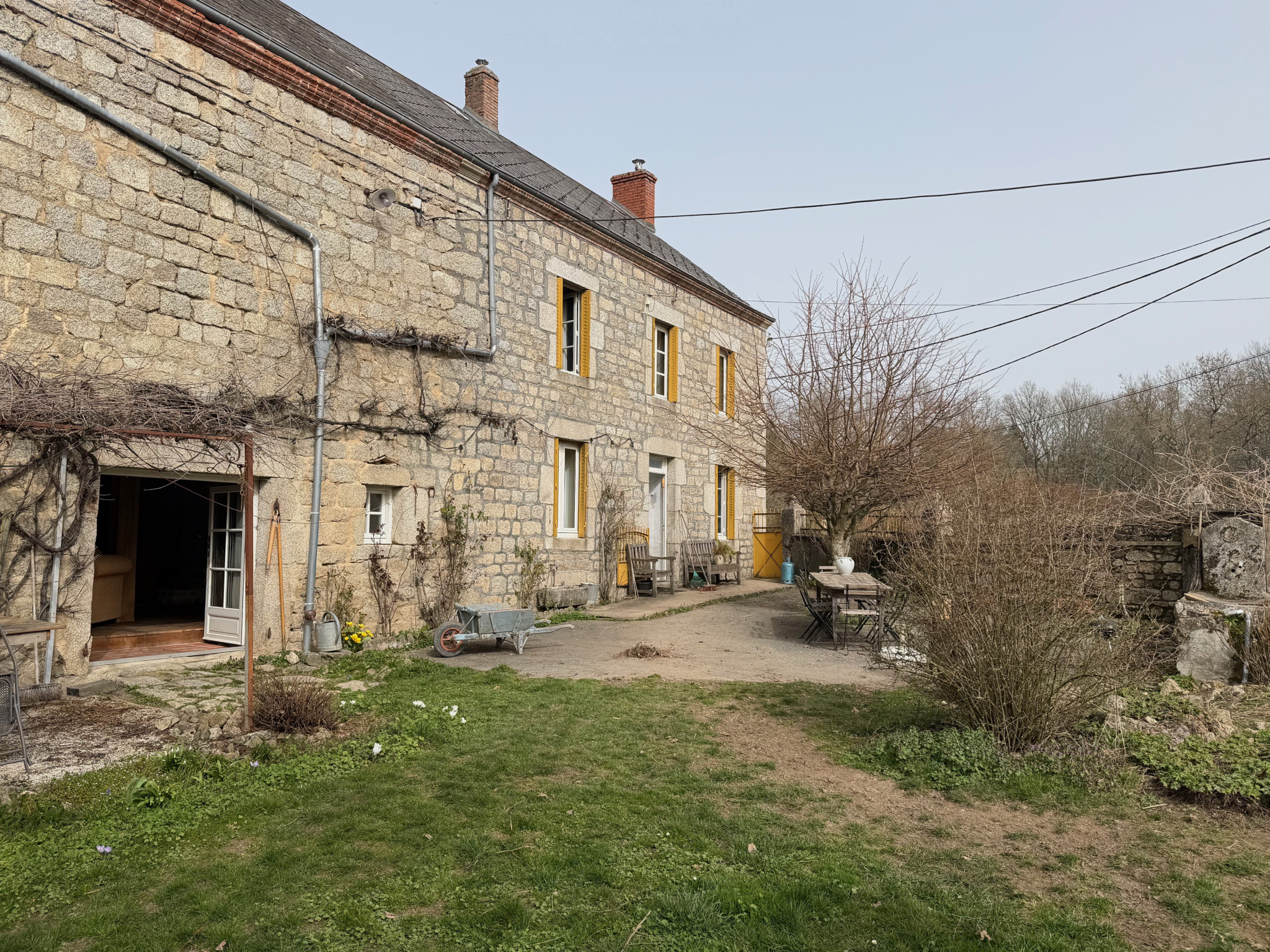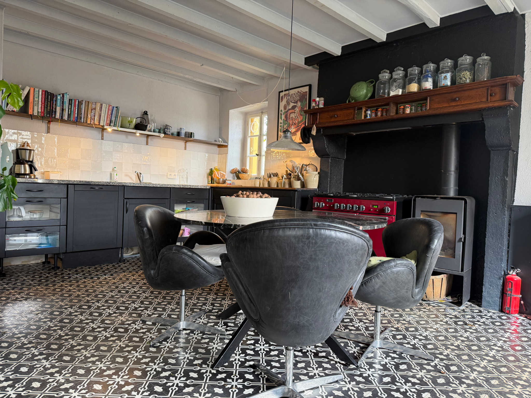 Auv 1215 : Maison en magnifiques pierres, dépendances et jardin.La maison a été entièrement rénovée avec beaucoup d’attention portée aux détails authentiques. Poutres apparentes, murs en pierres naturelles jontés, superbe plancher en bois dans le séjour, etc. La plupart des fenêtres sont en double vitrage, mais pas toutes.Toute la maison est équipée d’un chauffage central au fioul.Au milieu de la maison se trouve une superbe pièce de vie de 51m². C’est le cœur de la maison, avec un beau plancher en larges lames de chêne, un poêle à bois et des portes doubles donnant sur le jardin. Entre les poutres, la hauteur sous plafond est d’environ 2m50. Magnifique bibliothèque.La salle à manger fait 27m² et dispose également d’un poêle à bois, d’un parquet en chêne et d’un plafond habillé de bois.La cuisine équipée mesure 23m² et possède une belle ancienne cheminée ainsi qu’un poêle à bois, un sol carrelé et un plafond en bois peint en blanc. Derrière la cuisine se trouve un espace de rangement avec machine à laver et réfrigérateur, ainsi qu’un toilette supplémentaire.C’est également ici que se trouve l’accès à la cave de 28m² avec la cuve à fioul et la chaudière du chauffage central.Au rez-de-chaussée, il y a une première chambre de 13,5m² avec d’agréables portes doubles donnant sur le jardin. Plafond en bois, beaux planchers et salle de bains en suite. La magnifique salle de bains de 8m² comprend une douche à l’italienne, une baignoire en fonte sur pieds, un toilette et un beau meuble lavabo.Il y a également une pièce de 5m², idéale pour installer machine à laver et sèche-linge.Au premier étage se trouvent encore trois chambres agréables de 19,5, 12 et 9,5m². Il y a aussi une jolie salle d’eau (5m²) avec douche, toilette et lavabo.Il y a également un palier spacieux à l’étage de 12m², escalier compris. Cet étage est lui aussi chauffé par le chauffage central. Il y a encore un double grenier (surfaces au sol de 36 et 28m²) qui pourrait être aménagé. La toiture du grenier n’est pas isolée, mais le plancher entre le grenier et les chambres l’est.Le jardin est très joliment aménagé, avec une table pour manger et plusieurs coins salon agréables. On y trouve également de belles plantations. Le long de la façade, une pergola a été installée sous laquelle on peut s’asseoir.Il y a ensuite plusieurs dépendances attenantes. Tout d’abord un grand auvent d’environ 85m².Dans la continuité se trouve un espace de grange sous toit en pente de 46m² avec une toiture en moins bon état. À côté se trouve encore un petit auvent de 13m².Il y a aussi un abri en bois récemment construit de 32m². Il serait pratique d’y créer un passage afin de pouvoir entrer en voiture depuis le petit chemin situé à l’arrière.Sur le côté de la maison se trouve un magnifique mur en pierres naturelles avec un portillon piéton.Il y a également un grand espace de grange, accessible par la grande porte située à l’arrière du bâtiment, le long du petit chemin. Cet espace de grange ou d’atelier mesure environ 88,5m². Le point le plus haut du toit atteint 6,2 mètres.Très belle maison agréable.