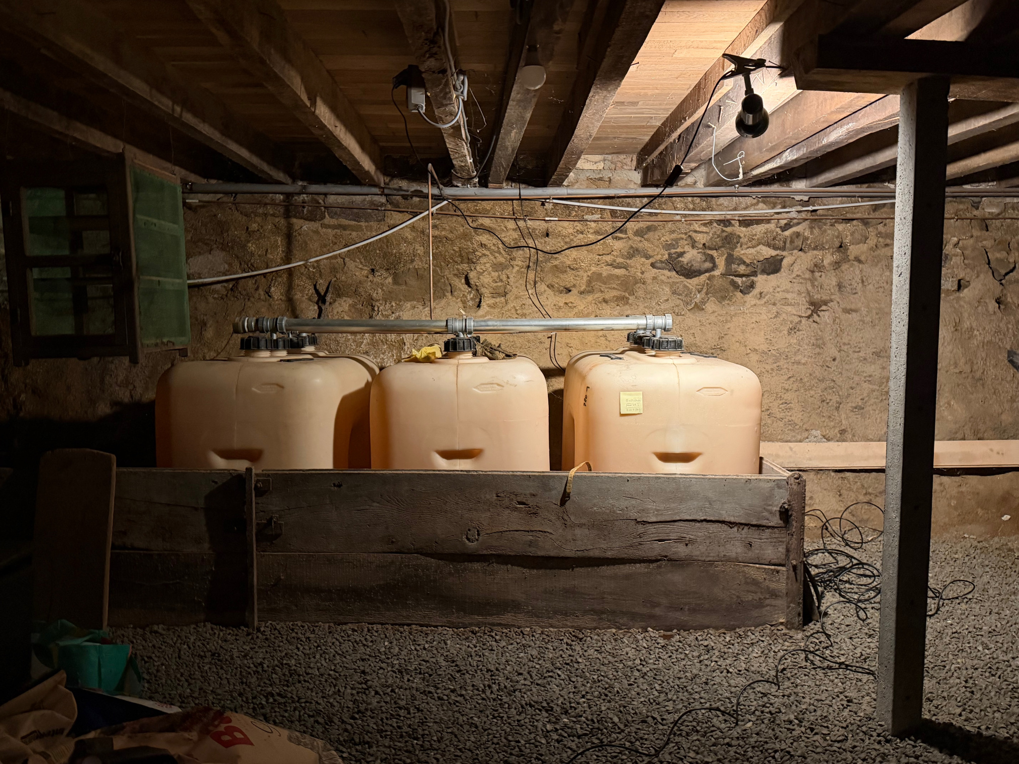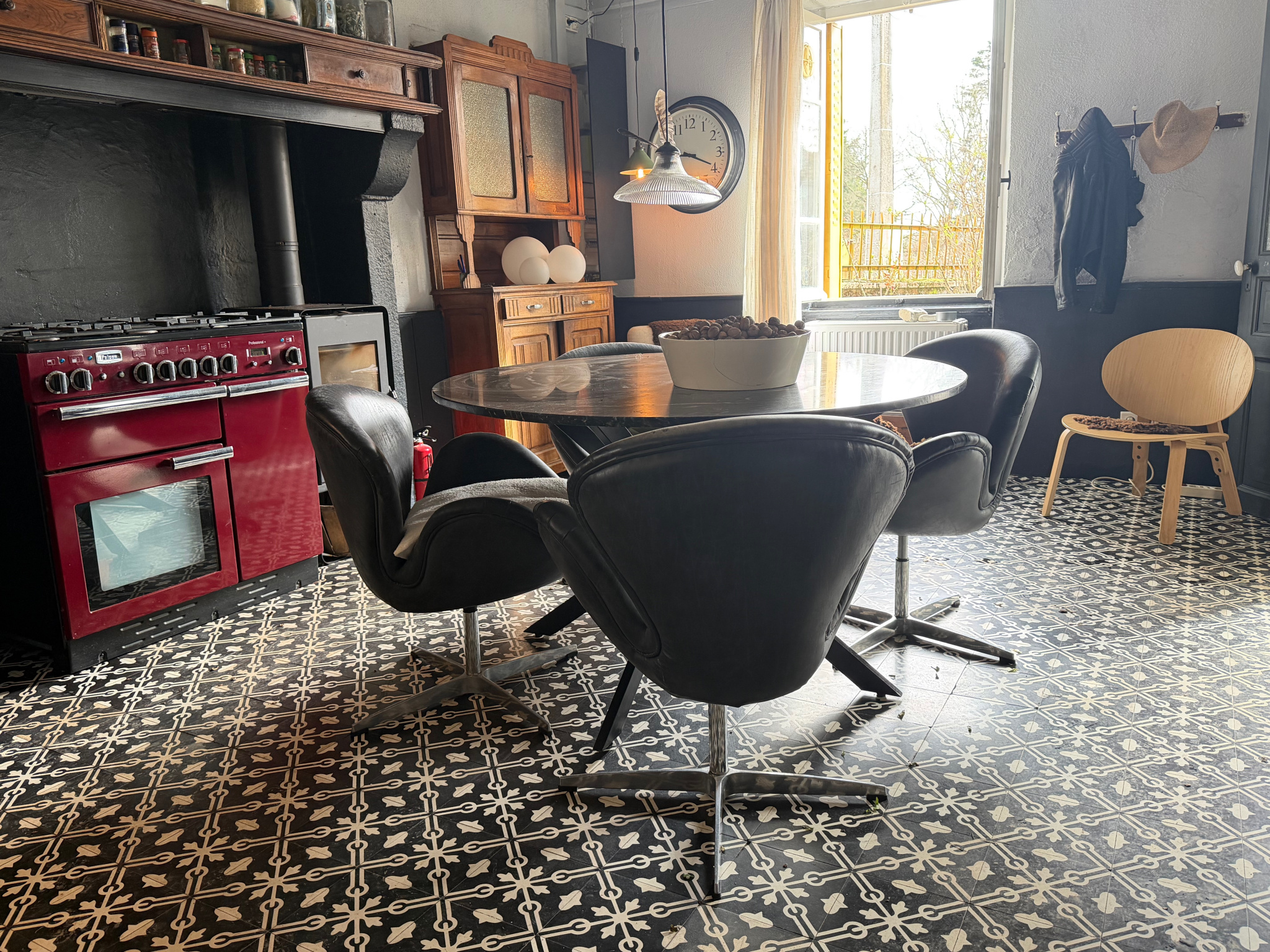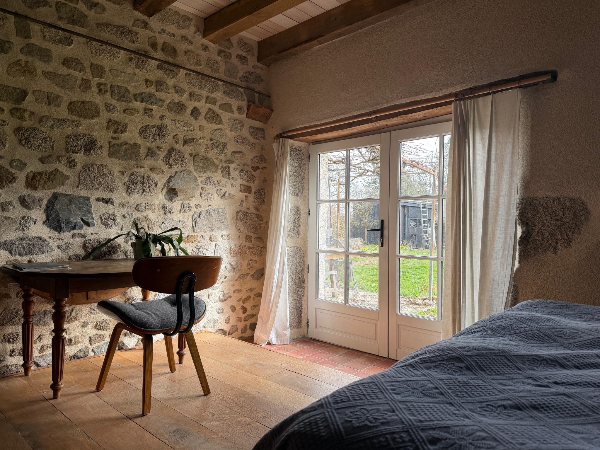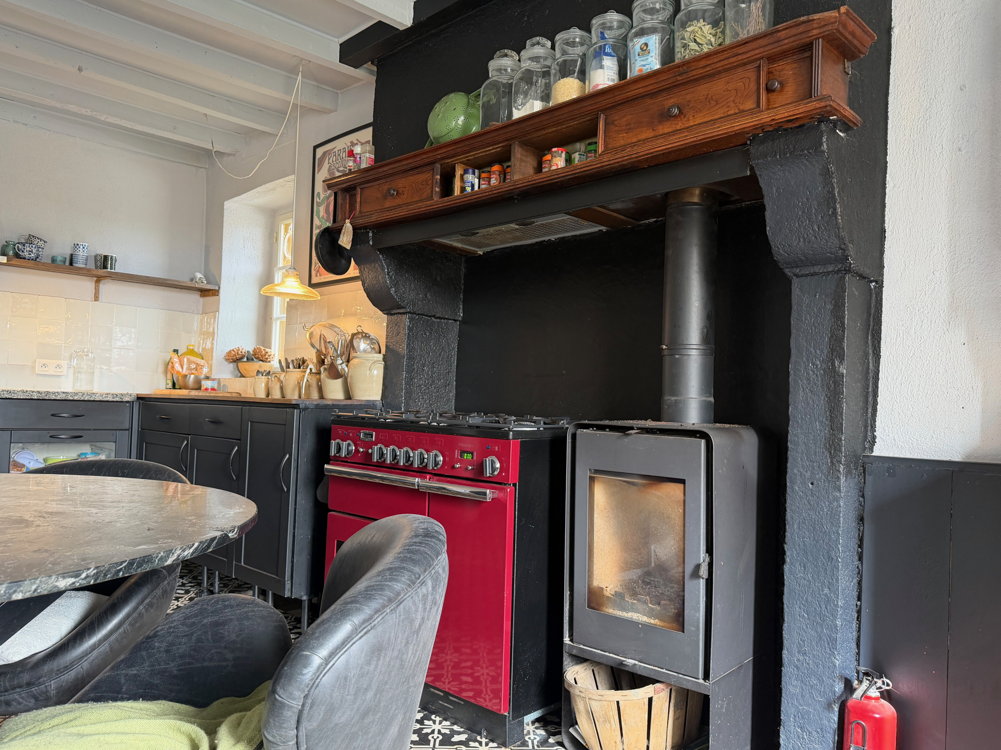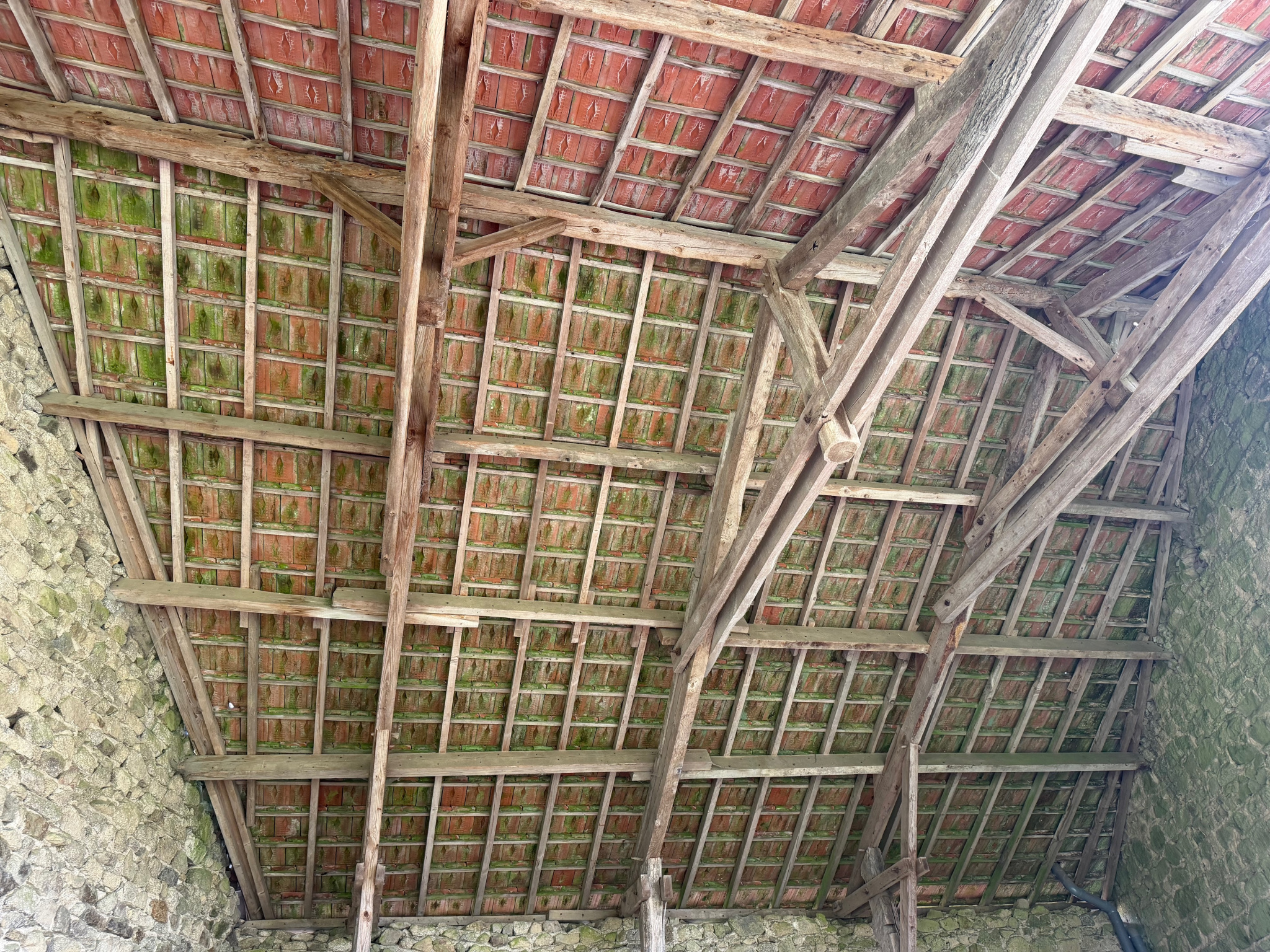 Auv 1215 : Maison en magnifiques pierres, dépendances et jardin.La maison a été entièrement rénovée avec beaucoup d’attention portée aux détails authentiques. Poutres apparentes, murs en pierres naturelles jontés, superbe plancher en bois dans le séjour, etc. La plupart des fenêtres sont en double vitrage, mais pas toutes.Toute la maison est équipée d’un chauffage central au fioul.Au milieu de la maison se trouve une superbe pièce de vie de 51m². C’est le cœur de la maison, avec un beau plancher en larges lames de chêne, un poêle à bois et des portes doubles donnant sur le jardin. Entre les poutres, la hauteur sous plafond est d’environ 2m50. Magnifique bibliothèque.La salle à manger fait 27m² et dispose également d’un poêle à bois, d’un parquet en chêne et d’un plafond habillé de bois.La cuisine équipée mesure 23m² et possède une belle ancienne cheminée ainsi qu’un poêle à bois, un sol carrelé et un plafond en bois peint en blanc. Derrière la cuisine se trouve un espace de rangement avec machine à laver et réfrigérateur, ainsi qu’un toilette supplémentaire.C’est également ici que se trouve l’accès à la cave de 28m² avec la cuve à fioul et la chaudière du chauffage central.Au rez-de-chaussée, il y a une première chambre de 13,5m² avec d’agréables portes doubles donnant sur le jardin. Plafond en bois, beaux planchers et salle de bains en suite. La magnifique salle de bains de 8m² comprend une douche à l’italienne, une baignoire en fonte sur pieds, un toilette et un beau meuble lavabo.Il y a également une pièce de 5m², idéale pour installer machine à laver et sèche-linge.Au premier étage se trouvent encore trois chambres agréables de 19,5, 12 et 9,5m². Il y a aussi une jolie salle d’eau (5m²) avec douche, toilette et lavabo.Il y a également un palier spacieux à l’étage de 12m², escalier compris. Cet étage est lui aussi chauffé par le chauffage central. Il y a encore un double grenier (surfaces au sol de 36 et 28m²) qui pourrait être aménagé. La toiture du grenier n’est pas isolée, mais le plancher entre le grenier et les chambres l’est.Le jardin est très joliment aménagé, avec une table pour manger et plusieurs coins salon agréables. On y trouve également de belles plantations. Le long de la façade, une pergola a été installée sous laquelle on peut s’asseoir.Il y a ensuite plusieurs dépendances attenantes. Tout d’abord un grand auvent d’environ 85m².Dans la continuité se trouve un espace de grange sous toit en pente de 46m² avec une toiture en moins bon état. À côté se trouve encore un petit auvent de 13m².Il y a aussi un abri en bois récemment construit de 32m². Il serait pratique d’y créer un passage afin de pouvoir entrer en voiture depuis le petit chemin situé à l’arrière.Sur le côté de la maison se trouve un magnifique mur en pierres naturelles avec un portillon piéton.Il y a également un grand espace de grange, accessible par la grande porte située à l’arrière du bâtiment, le long du petit chemin. Cet espace de grange ou d’atelier mesure environ 88,5m². Le point le plus haut du toit atteint 6,2 mètres.Très belle maison agréable.