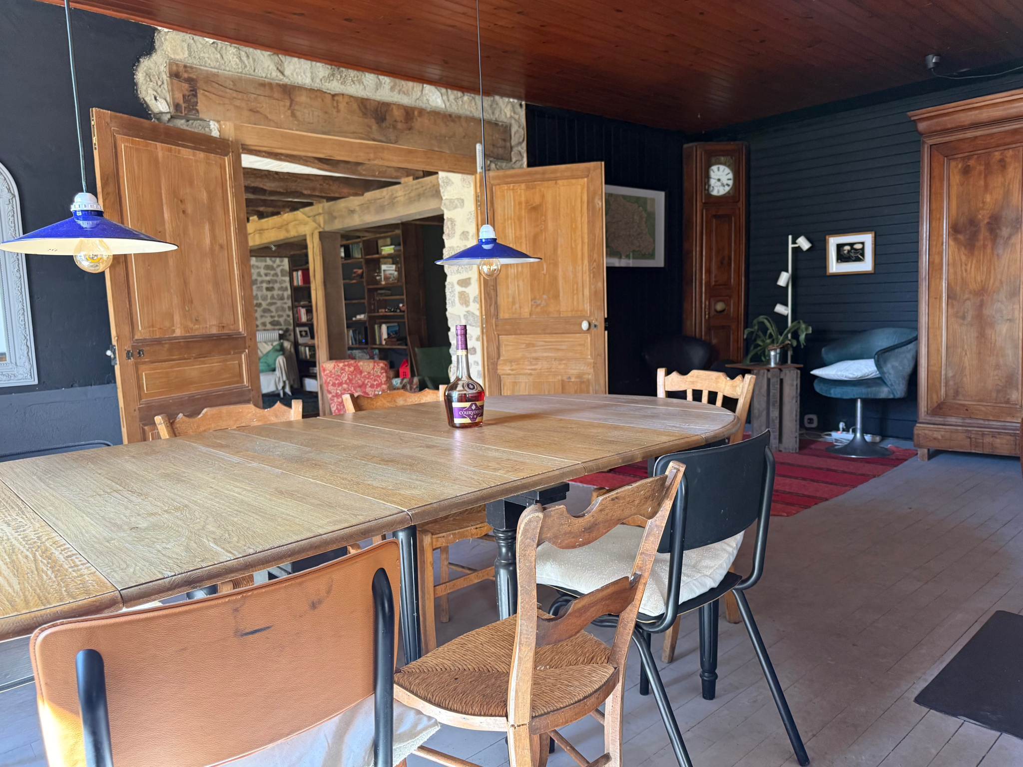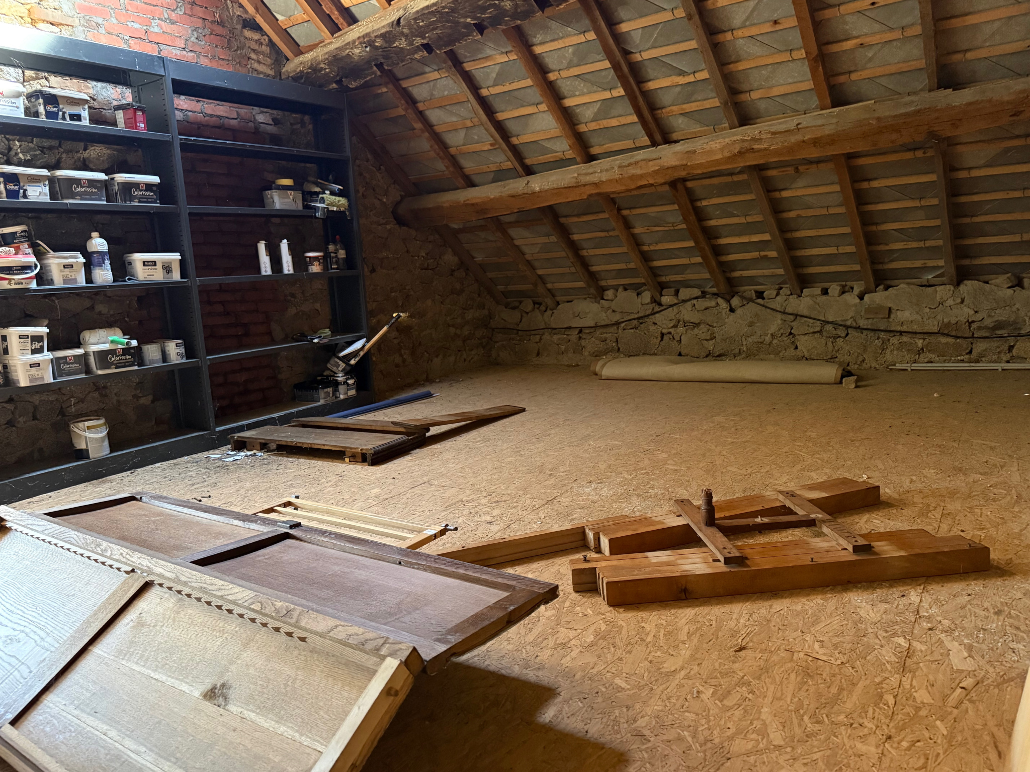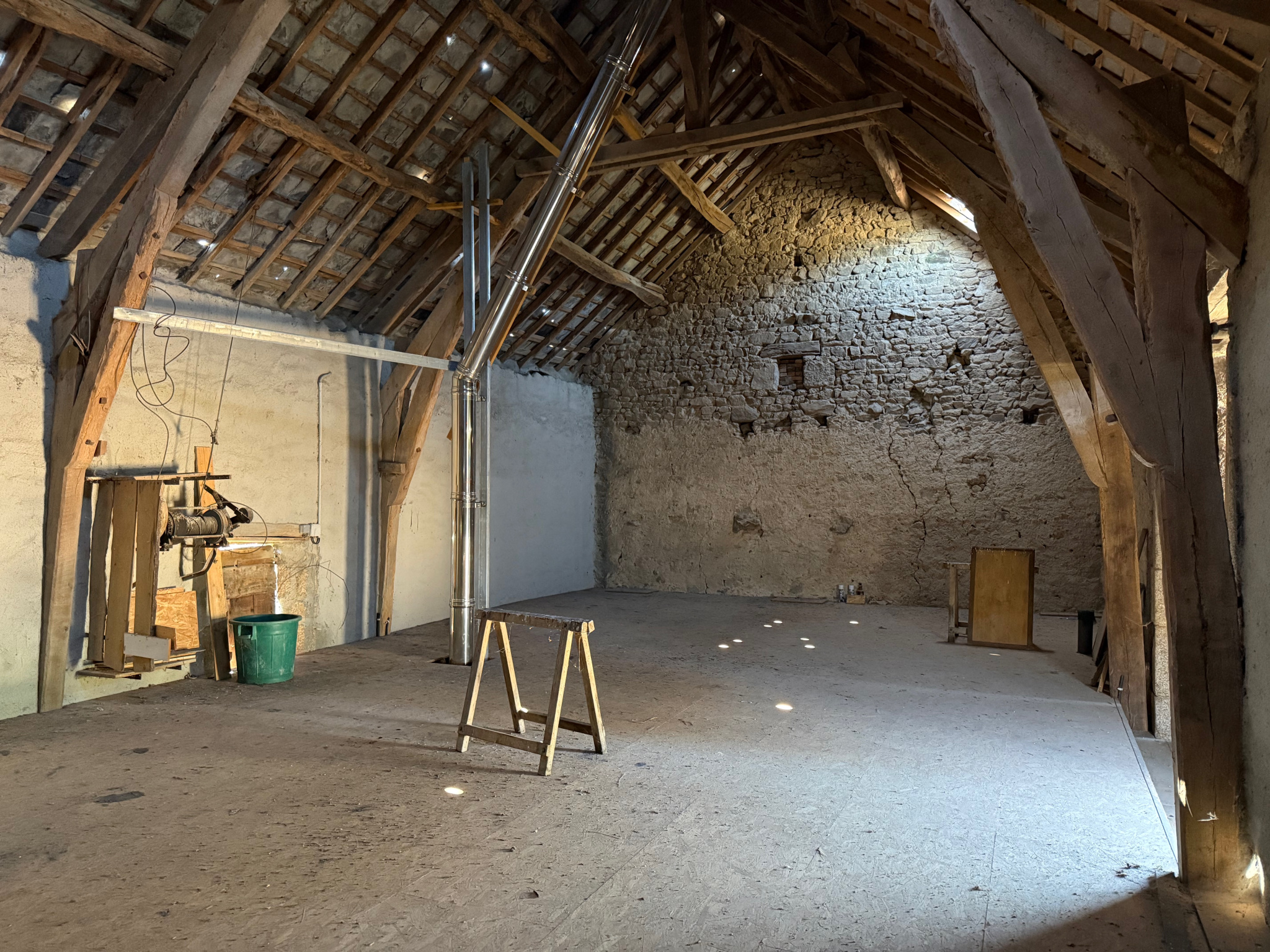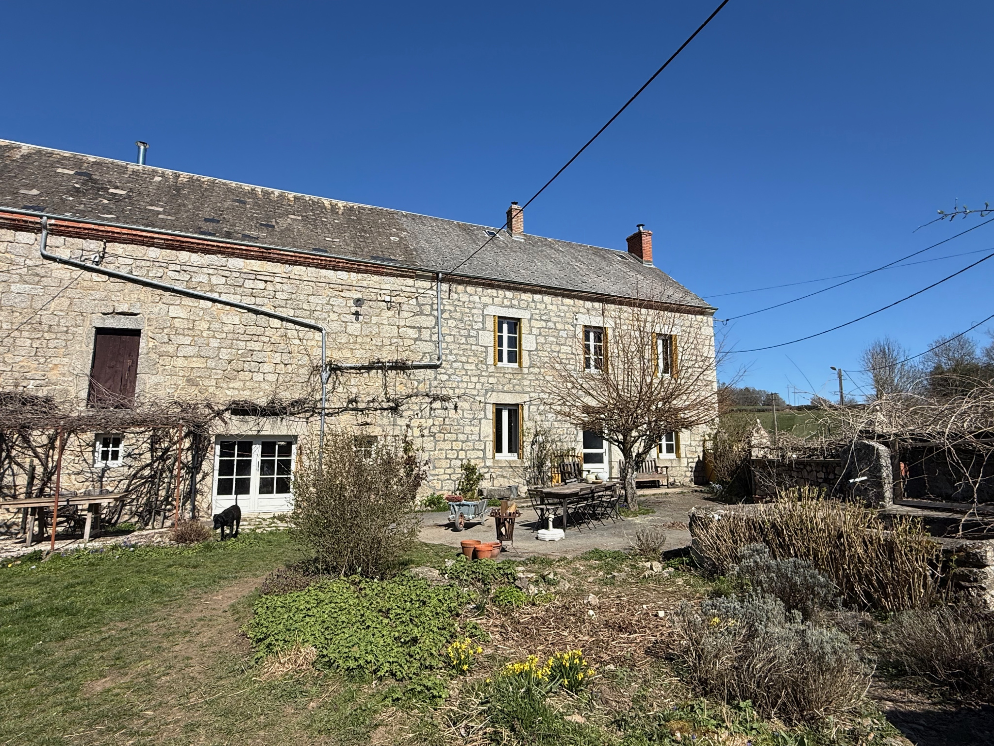 Auv 1215 : Plein-pied habitable, étage en plus, dépendances, beau jardin. Cette superbe maison en pierres taillées possède d’un rez-de-chaussée de plein-pied avec un étage avec 3 chambres et salle d’eau supplémentaires. Dépendances, terrain.La maison a été entièrement rénovée avec beaucoup d’attention portée aux détails authentiques. Poutres apparentes, murs en pierres naturelles jontés, superbe plancher en bois dans le séjour, etc. La plupart des fenêtres sont en double vitrage, mais pas toutes.Toute la maison est équipée d’un chauffage central au fioul.Au milieu de la maison se trouve une superbe pièce de vie de 51m². C’est le cœur de la maison, avec un beau plancher en larges lames de chêne, un poêle à bois et des portes doubles donnant sur le jardin. Entre les poutres, la hauteur sous plafond est d’environ 2m50. Magnifique bibliothèque.La salle à manger fait 27m² et dispose également d’un poêle à bois, d’un parquet en chêne et d’un plafond habillé de bois.La cuisine équipée mesure 23m² et possède une belle ancienne cheminée ainsi qu’un poêle à bois, un sol carrelé et un plafond en bois peint en blanc. Derrière la cuisine se trouve un espace de rangement avec machine à laver et réfrigérateur, ainsi qu’un toilette supplémentaire.C’est également ici que se trouve l’accès à la cave de 28m² avec la cuve à fioul et la chaudière du chauffage central.Au rez-de-chaussée, il y a une première chambre de 13,5m² avec d’agréables portes doubles donnant sur le jardin. Plafond en bois, beaux planchers et salle de bains en suite. La magnifique salle de bains de 8m² comprend une douche à l’italienne, une baignoire en fonte sur pieds, un toilette et un beau meuble lavabo.Il y a également une pièce de 5m², idéale pour installer machine à laver et sèche-linge.Au premier étage se trouvent encore trois chambres agréables de 19,5, 12 et 9,5m². Il y a aussi une jolie salle d’eau (5m²) avec douche, toilette et lavabo.Il y a également un palier spacieux à l’étage de 12m², escalier compris. Cet étage est lui aussi chauffé par le chauffage central. Il y a encore un double grenier (surfaces au sol de 36 et 28m²) qui pourrait être aménagé. La toiture du grenier n’est pas isolée, mais le plancher entre le grenier et les chambres l’est.Le jardin est très joliment aménagé, avec une table pour manger et plusieurs coins salon agréables. On y trouve également de belles plantations. Le long de la façade, une pergola a été installée sous laquelle on peut s’asseoir.Il y a ensuite plusieurs dépendances attenantes. Tout d’abord un grand auvent d’environ 85m².Dans la continuité se trouve un espace de grange sous toit en pente de 46m² avec une toiture en moins bon état. À côté se trouve encore un petit auvent de 13m².Il y a aussi un abri en bois récemment construit de 32m². Il serait pratique d’y créer un passage afin de pouvoir entrer en voiture depuis le petit chemin situé à l’arrière.Sur le côté de la maison se trouve un magnifique mur en pierres naturelles avec un portillon piéton.Il y a également un grand espace de grange avec sol surélévé, pour isolation des pièces dessou, accessible par la grande porte située à l’arrière du bâtiment, le long du petit chemin. Cet espace de grange ou d’atelier qui n'est pas adapté pour des véhicules mesure environ 88,5m². Le point le plus haut du toit atteint 6,2 mètres.Très belle maison agréable.
