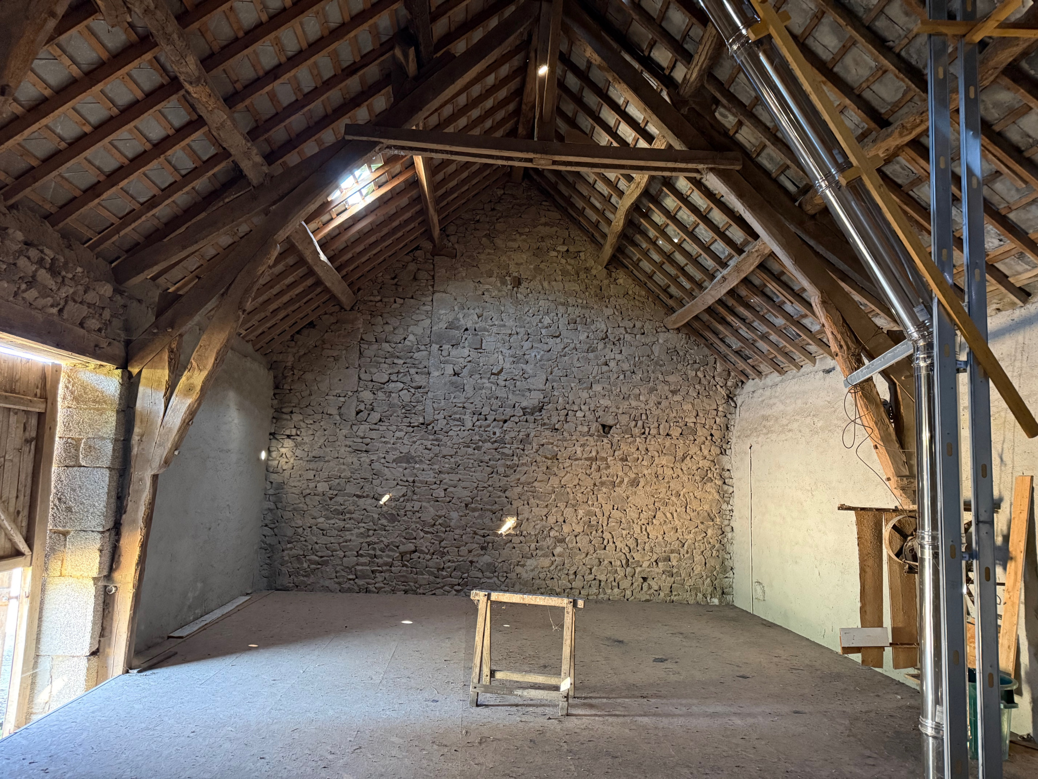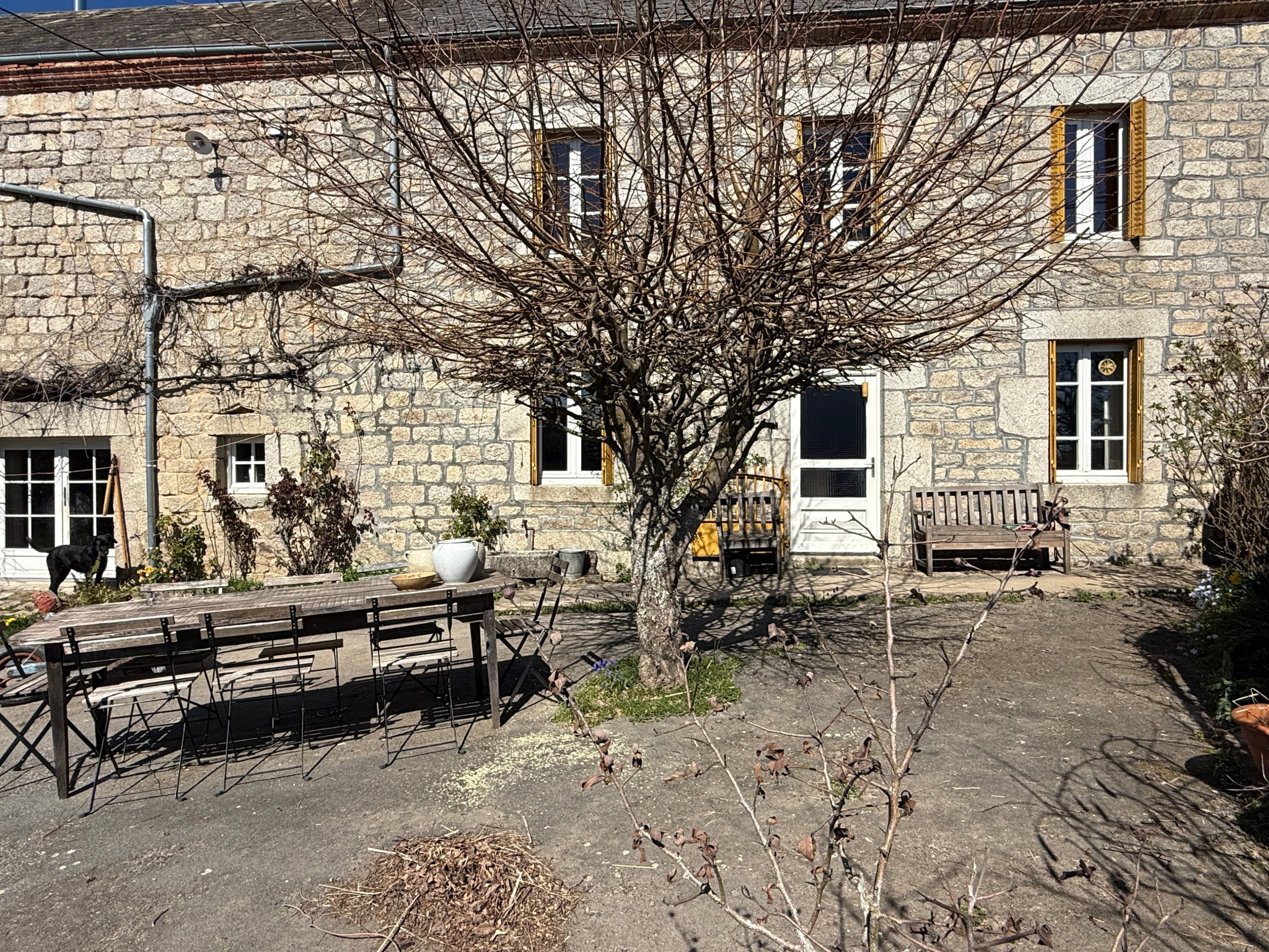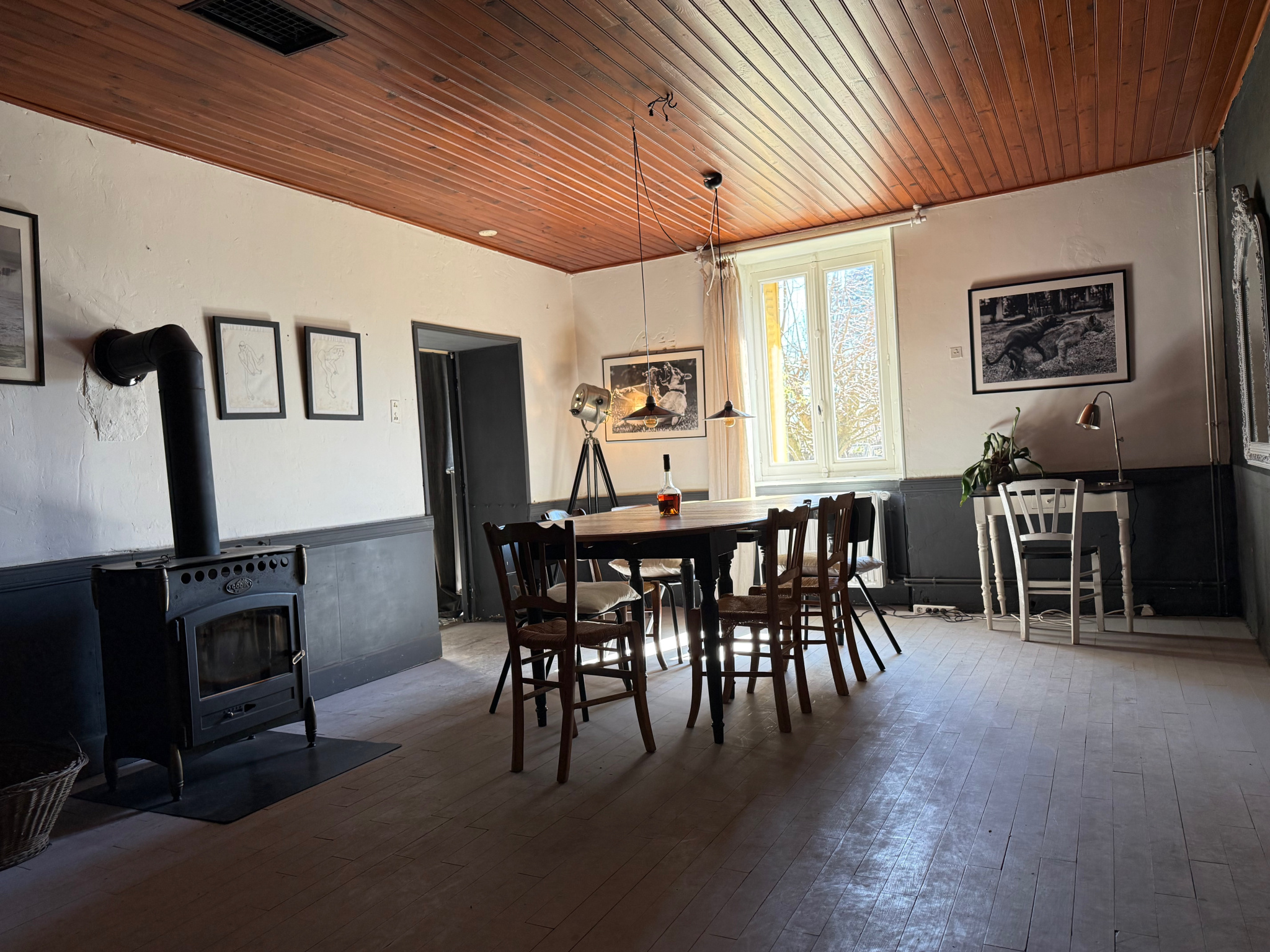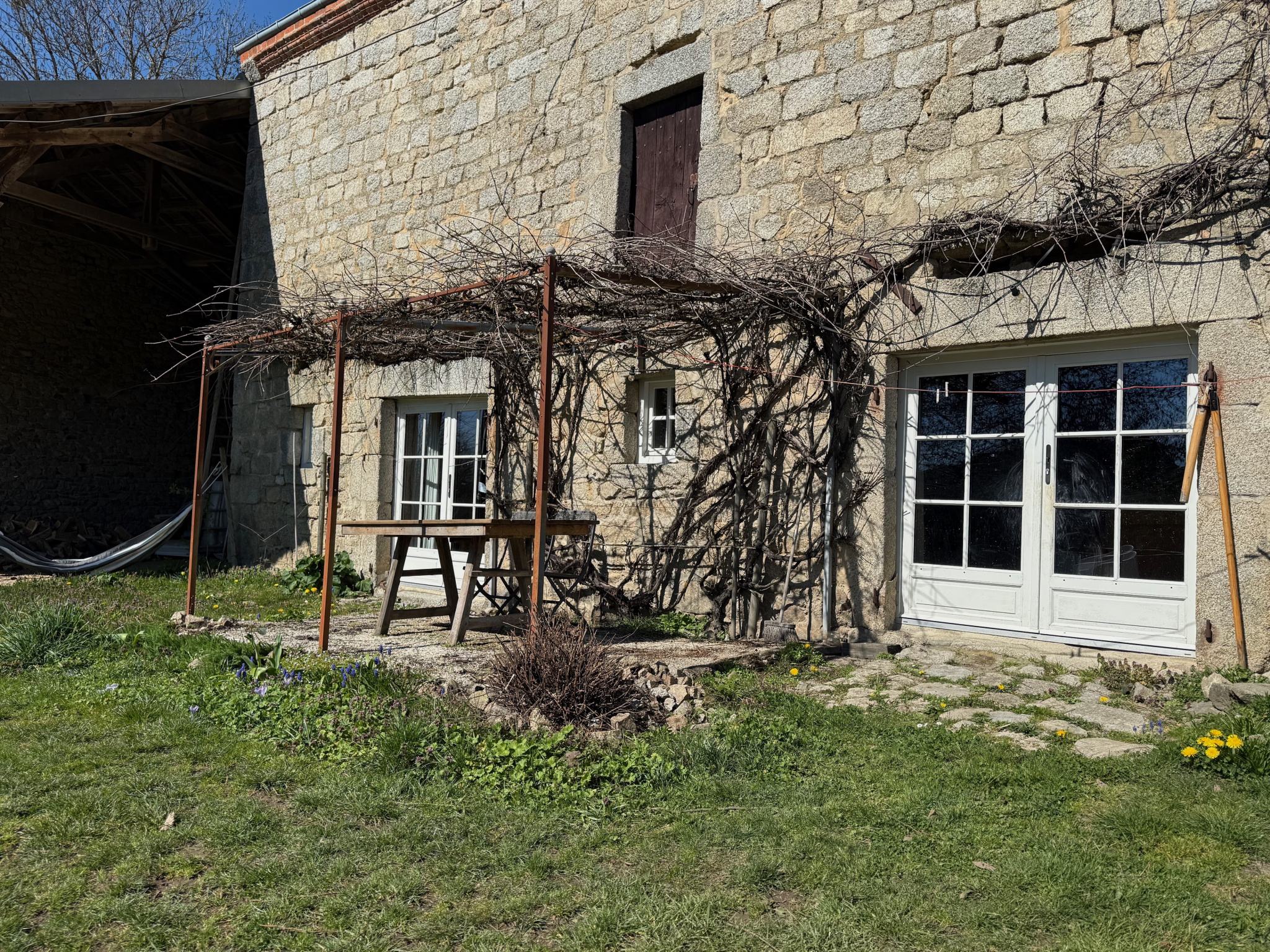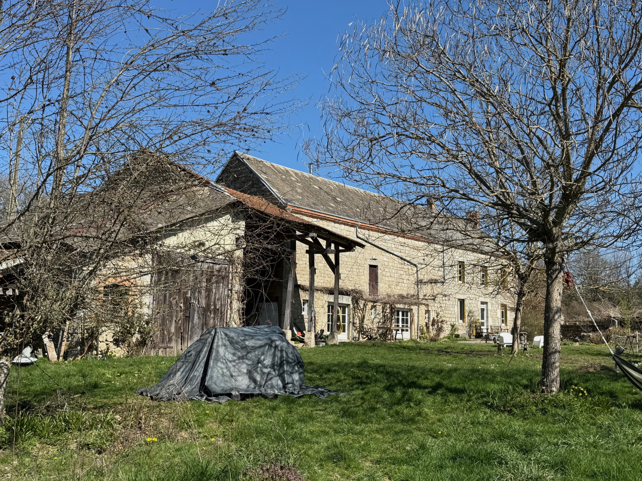 Auv 1215 : Plein-pied habitable, étage en plus, dépendances, beau jardin. Cette superbe maison en pierres taillées possède d’un rez-de-chaussée de plein-pied avec un étage avec 3 chambres et salle d’eau supplémentaires. Dépendances, terrain.La maison a été entièrement rénovée avec beaucoup d’attention portée aux détails authentiques. Poutres apparentes, murs en pierres naturelles jontés, superbe plancher en bois dans le séjour, etc. La plupart des fenêtres sont en double vitrage, mais pas toutes.Toute la maison est équipée d’un chauffage central au fioul.Au milieu de la maison se trouve une superbe pièce de vie de 51m². C’est le cœur de la maison, avec un beau plancher en larges lames de chêne, un poêle à bois et des portes doubles donnant sur le jardin. Entre les poutres, la hauteur sous plafond est d’environ 2m50. Magnifique bibliothèque.La salle à manger fait 27m² et dispose également d’un poêle à bois, d’un parquet en chêne et d’un plafond habillé de bois.La cuisine équipée mesure 23m² et possède une belle ancienne cheminée ainsi qu’un poêle à bois, un sol carrelé et un plafond en bois peint en blanc. Derrière la cuisine se trouve un espace de rangement avec machine à laver et réfrigérateur, ainsi qu’un toilette supplémentaire.C’est également ici que se trouve l’accès à la cave de 28m² avec la cuve à fioul et la chaudière du chauffage central.Au rez-de-chaussée, il y a une première chambre de 13,5m² avec d’agréables portes doubles donnant sur le jardin. Plafond en bois, beaux planchers et salle de bains en suite. La magnifique salle de bains de 8m² comprend une douche à l’italienne, une baignoire en fonte sur pieds, un toilette et un beau meuble lavabo.Il y a également une pièce de 5m², idéale pour installer machine à laver et sèche-linge.Au premier étage se trouvent encore trois chambres agréables de 19,5, 12 et 9,5m². Il y a aussi une jolie salle d’eau (5m²) avec douche, toilette et lavabo.Il y a également un palier spacieux à l’étage de 12m², escalier compris. Cet étage est lui aussi chauffé par le chauffage central. Il y a encore un double grenier (surfaces au sol de 36 et 28m²) qui pourrait être aménagé. La toiture du grenier n’est pas isolée, mais le plancher entre le grenier et les chambres l’est.Le jardin est très joliment aménagé, avec une table pour manger et plusieurs coins salon agréables. On y trouve également de belles plantations. Le long de la façade, une pergola a été installée sous laquelle on peut s’asseoir.Il y a ensuite plusieurs dépendances attenantes. Tout d’abord un grand auvent d’environ 85m².Dans la continuité se trouve un espace de grange sous toit en pente de 46m² avec une toiture en moins bon état. À côté se trouve encore un petit auvent de 13m².Il y a aussi un abri en bois récemment construit de 32m². Il serait pratique d’y créer un passage afin de pouvoir entrer en voiture depuis le petit chemin situé à l’arrière.Sur le côté de la maison se trouve un magnifique mur en pierres naturelles avec un portillon piéton.Il y a également un grand espace de grange avec sol surélévé, pour isolation des pièces dessou, accessible par la grande porte située à l’arrière du bâtiment, le long du petit chemin. Cet espace de grange ou d’atelier qui n'est pas adapté pour des véhicules mesure environ 88,5m². Le point le plus haut du toit atteint 6,2 mètres.Très belle maison agréable.