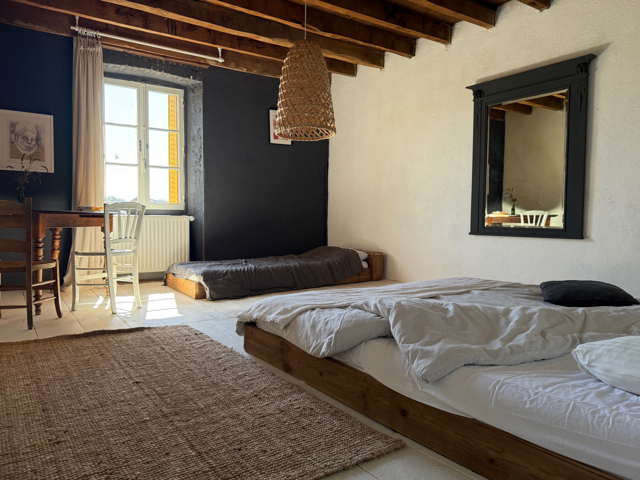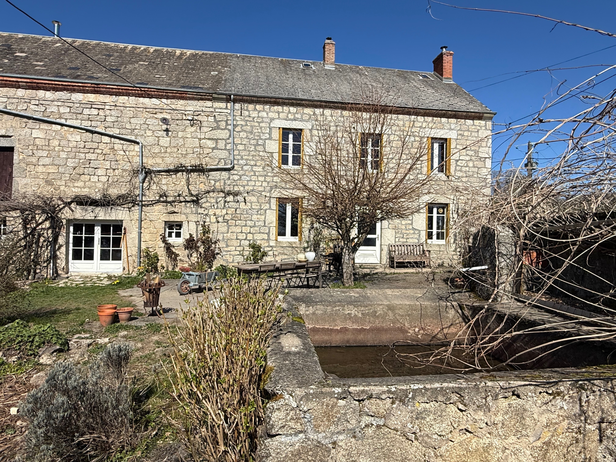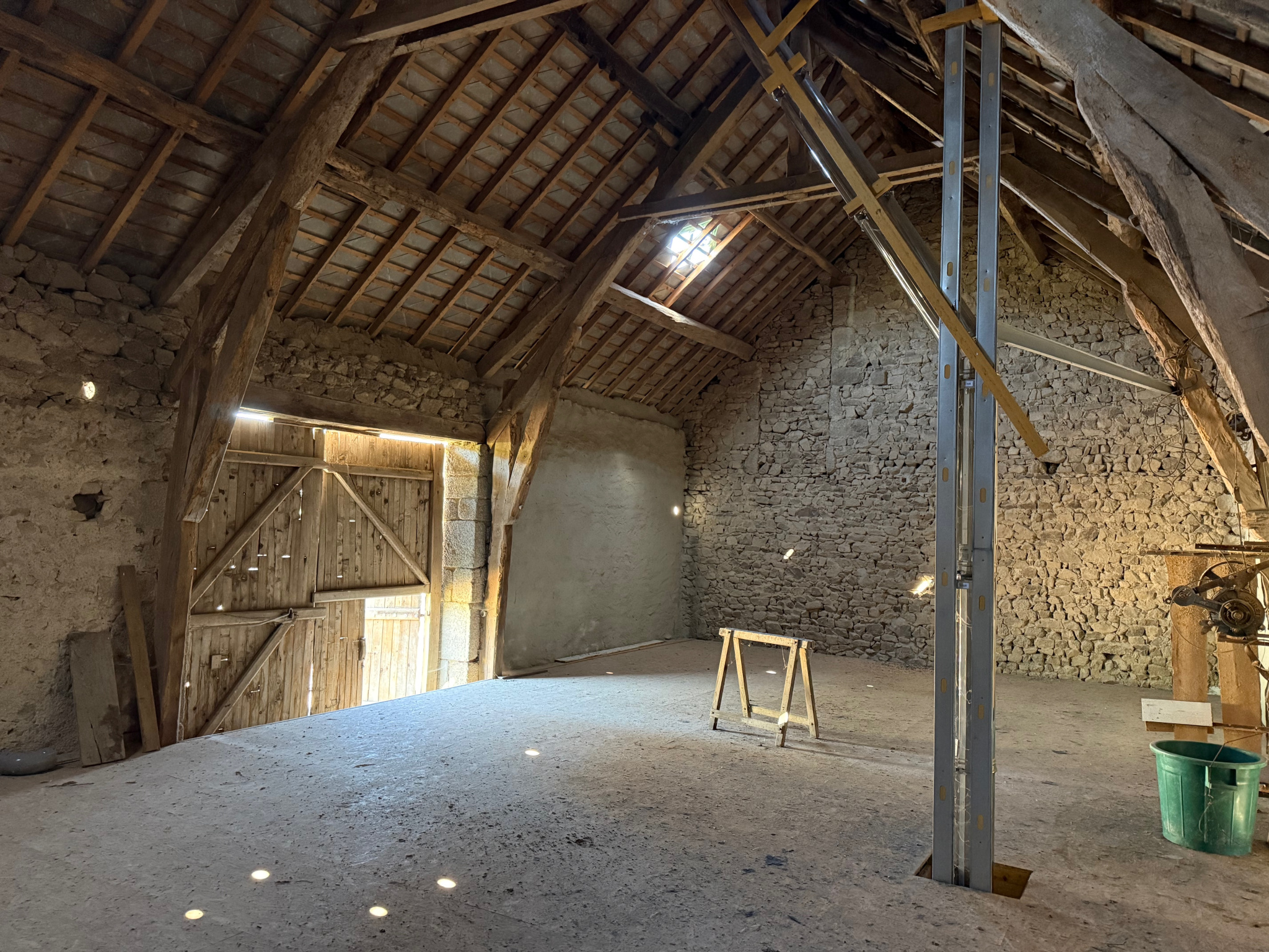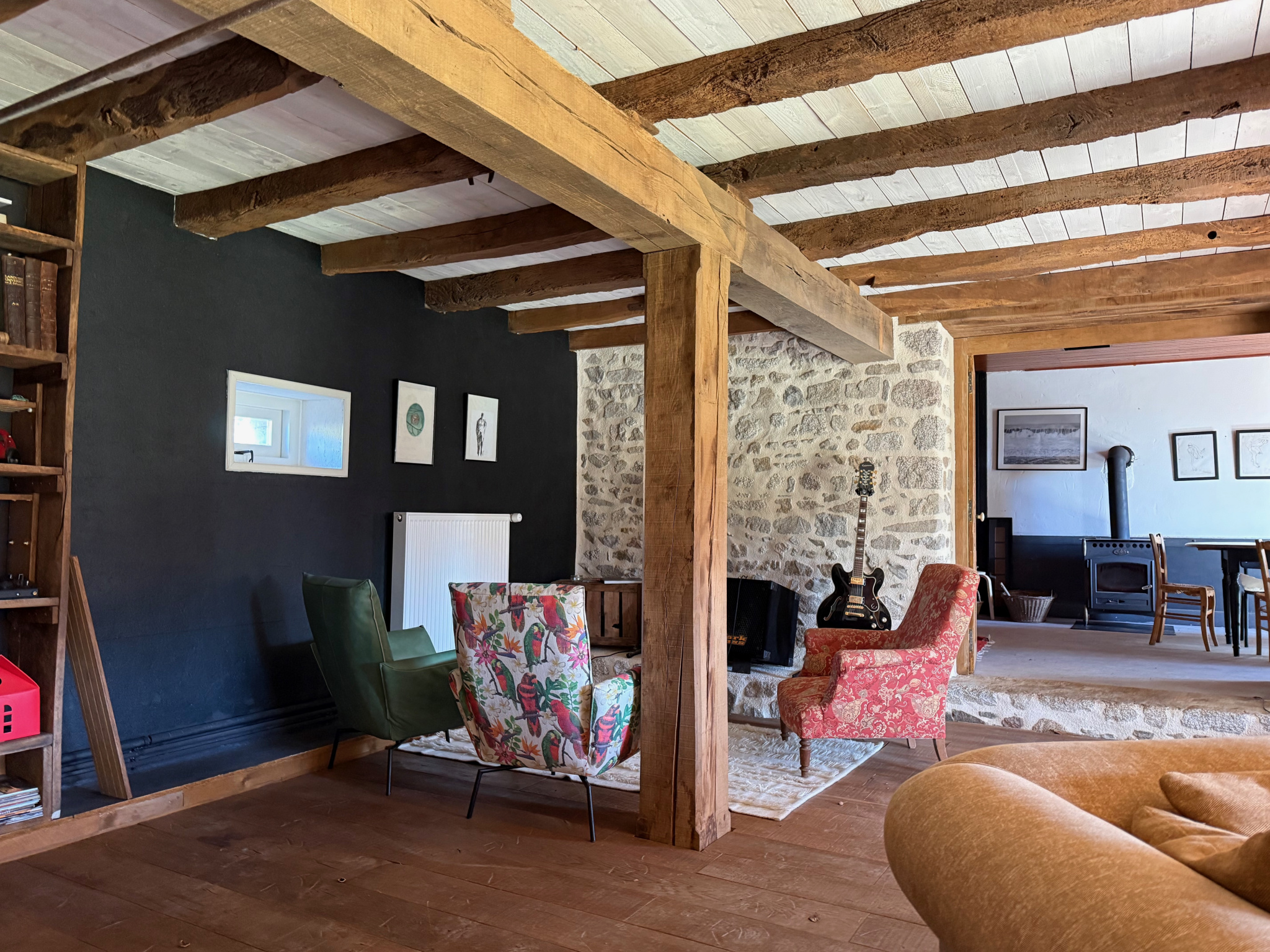 Auv 1215 : Plein-pied habitable, étage en plus, dépendances, beau jardin. Cette superbe maison en pierres taillées possède d’un rez-de-chaussée de plein-pied avec un étage avec 3 chambres et salle d’eau supplémentaires. Dépendances, terrain.La maison a été entièrement rénovée avec beaucoup d’attention portée aux détails authentiques. Poutres apparentes, murs en pierres naturelles jontés, superbe plancher en bois dans le séjour, etc. La plupart des fenêtres sont en double vitrage, mais pas toutes.Toute la maison est équipée d’un chauffage central au fioul.Au milieu de la maison se trouve une superbe pièce de vie de 51m². C’est le cœur de la maison, avec un beau plancher en larges lames de chêne, un poêle à bois et des portes doubles donnant sur le jardin. Entre les poutres, la hauteur sous plafond est d’environ 2m50. Magnifique bibliothèque.La salle à manger fait 27m² et dispose également d’un poêle à bois, d’un parquet en chêne et d’un plafond habillé de bois.La cuisine équipée mesure 23m² et possède une belle ancienne cheminée ainsi qu’un poêle à bois, un sol carrelé et un plafond en bois peint en blanc. Derrière la cuisine se trouve un espace de rangement avec machine à laver et réfrigérateur, ainsi qu’un toilette supplémentaire.C’est également ici que se trouve l’accès à la cave de 28m² avec la cuve à fioul et la chaudière du chauffage central.Au rez-de-chaussée, il y a une première chambre de 13,5m² avec d’agréables portes doubles donnant sur le jardin. Plafond en bois, beaux planchers et salle de bains en suite. La magnifique salle de bains de 8m² comprend une douche à l’italienne, une baignoire en fonte sur pieds, un toilette et un beau meuble lavabo.Il y a également une pièce de 5m², idéale pour installer machine à laver et sèche-linge.Au premier étage se trouvent encore trois chambres agréables de 19,5, 12 et 9,5m². Il y a aussi une jolie salle d’eau (5m²) avec douche, toilette et lavabo.Il y a également un palier spacieux à l’étage de 12m², escalier compris. Cet étage est lui aussi chauffé par le chauffage central. Il y a encore un double grenier (surfaces au sol de 36 et 28m²) qui pourrait être aménagé. La toiture du grenier n’est pas isolée, mais le plancher entre le grenier et les chambres l’est.Le jardin est très joliment aménagé, avec une table pour manger et plusieurs coins salon agréables. On y trouve également de belles plantations. Le long de la façade, une pergola a été installée sous laquelle on peut s’asseoir.Il y a ensuite plusieurs dépendances attenantes. Tout d’abord un grand auvent d’environ 85m².Dans la continuité se trouve un espace de grange sous toit en pente de 46m² avec une toiture en moins bon état. À côté se trouve encore un petit auvent de 13m².Il y a aussi un abri en bois récemment construit de 32m². Il serait pratique d’y créer un passage afin de pouvoir entrer en voiture depuis le petit chemin situé à l’arrière.Sur le côté de la maison se trouve un magnifique mur en pierres naturelles avec un portillon piéton.Il y a également un grand espace de grange avec sol surélévé, pour isolation des pièces dessou, accessible par la grande porte située à l’arrière du bâtiment, le long du petit chemin. Cet espace de grange ou d’atelier qui n'est pas adapté pour des véhicules mesure environ 88,5m². Le point le plus haut du toit atteint 6,2 mètres.Très belle maison agréable.