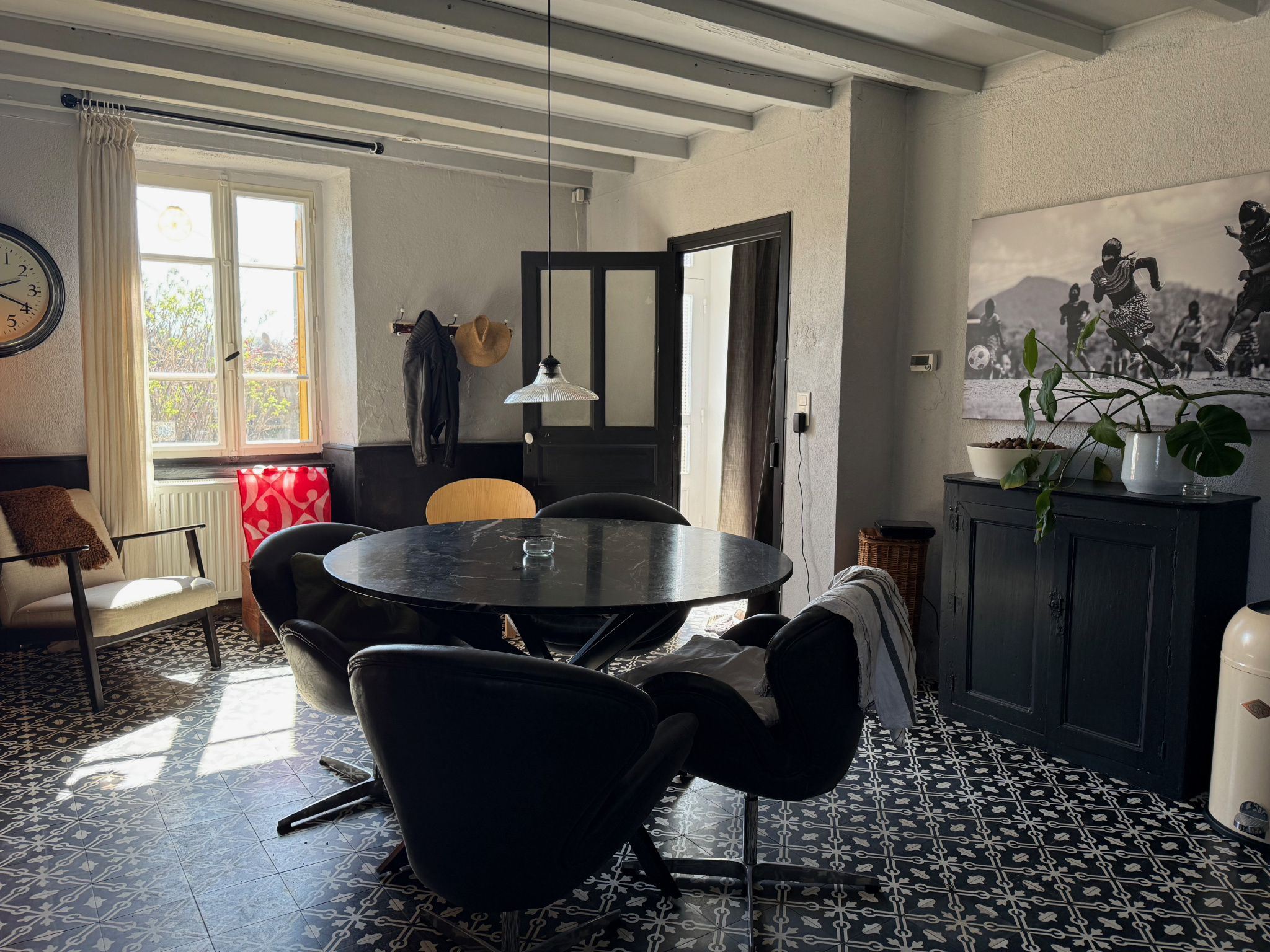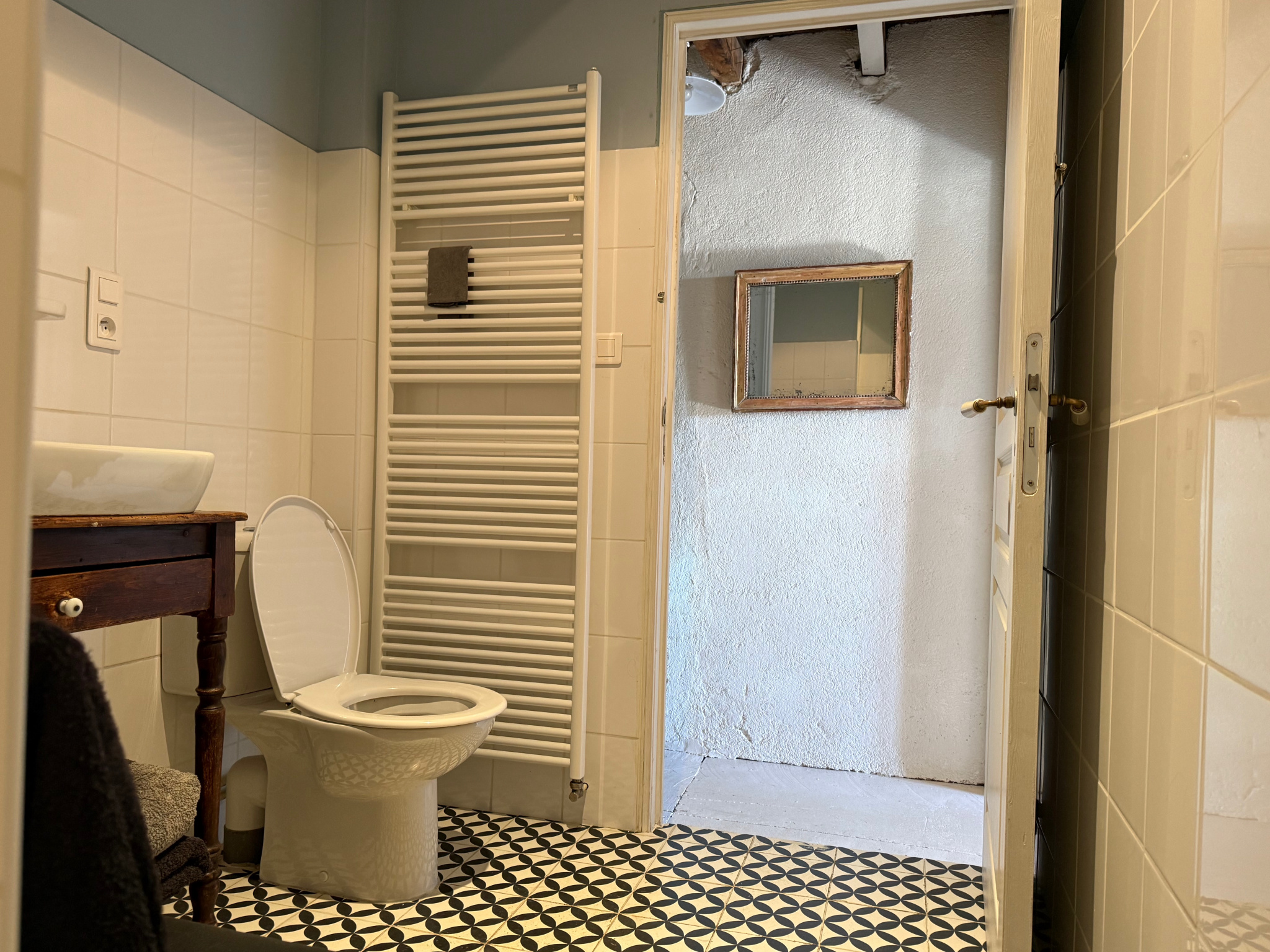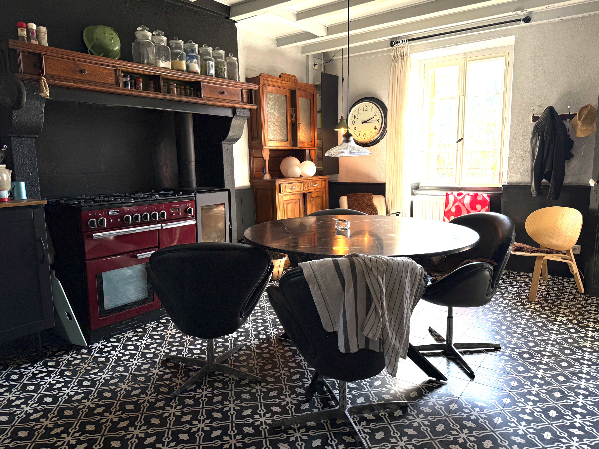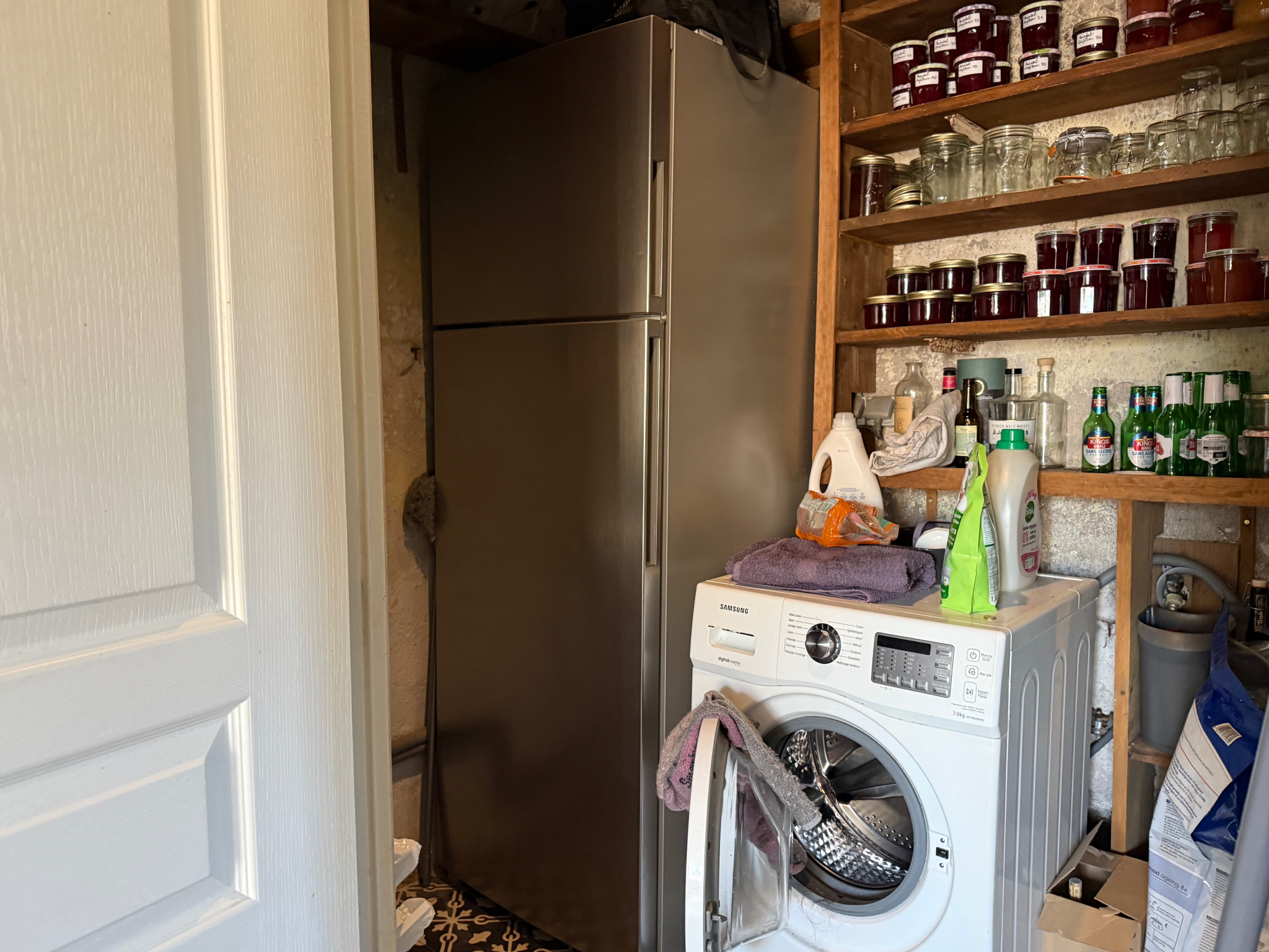 Auv 1215 : Plein-pied habitable, étage en plus, dépendances, beau jardin. Cette superbe maison en pierres taillées possède d’un rez-de-chaussée de plein-pied avec un étage avec 3 chambres et salle d’eau supplémentaires. Dépendances, terrain.La maison a été entièrement rénovée avec beaucoup d’attention portée aux détails authentiques. Poutres apparentes, murs en pierres naturelles jontés, superbe plancher en bois dans le séjour, etc. La plupart des fenêtres sont en double vitrage, mais pas toutes.Toute la maison est équipée d’un chauffage central au fioul.Au milieu de la maison se trouve une superbe pièce de vie de 51m². C’est le cœur de la maison, avec un beau plancher en larges lames de chêne, un poêle à bois et des portes doubles donnant sur le jardin. Entre les poutres, la hauteur sous plafond est d’environ 2m50. Magnifique bibliothèque.La salle à manger fait 27m² et dispose également d’un poêle à bois, d’un parquet en chêne et d’un plafond habillé de bois.La cuisine équipée mesure 23m² et possède une belle ancienne cheminée ainsi qu’un poêle à bois, un sol carrelé et un plafond en bois peint en blanc. Derrière la cuisine se trouve un espace de rangement avec machine à laver et réfrigérateur, ainsi qu’un toilette supplémentaire.C’est également ici que se trouve l’accès à la cave de 28m² avec la cuve à fioul et la chaudière du chauffage central.Au rez-de-chaussée, il y a une première chambre de 13,5m² avec d’agréables portes doubles donnant sur le jardin. Plafond en bois, beaux planchers et salle de bains en suite. La magnifique salle de bains de 8m² comprend une douche à l’italienne, une baignoire en fonte sur pieds, un toilette et un beau meuble lavabo.Il y a également une pièce de 5m², idéale pour installer machine à laver et sèche-linge.Au premier étage se trouvent encore trois chambres agréables de 19,5, 12 et 9,5m². Il y a aussi une jolie salle d’eau (5m²) avec douche, toilette et lavabo.Il y a également un palier spacieux à l’étage de 12m², escalier compris. Cet étage est lui aussi chauffé par le chauffage central. Il y a encore un double grenier (surfaces au sol de 36 et 28m²) qui pourrait être aménagé. La toiture du grenier n’est pas isolée, mais le plancher entre le grenier et les chambres l’est.Le jardin est très joliment aménagé, avec une table pour manger et plusieurs coins salon agréables. On y trouve également de belles plantations. Le long de la façade, une pergola a été installée sous laquelle on peut s’asseoir.Il y a ensuite plusieurs dépendances attenantes. Tout d’abord un grand auvent d’environ 85m².Dans la continuité se trouve un espace de grange sous toit en pente de 46m² avec une toiture en moins bon état. À côté se trouve encore un petit auvent de 13m².Il y a aussi un abri en bois récemment construit de 32m². Il serait pratique d’y créer un passage afin de pouvoir entrer en voiture depuis le petit chemin situé à l’arrière.Sur le côté de la maison se trouve un magnifique mur en pierres naturelles avec un portillon piéton.Il y a également un grand espace de grange avec sol surélévé, pour isolation des pièces dessou, accessible par la grande porte située à l’arrière du bâtiment, le long du petit chemin. Cet espace de grange ou d’atelier qui n'est pas adapté pour des véhicules mesure environ 88,5m². Le point le plus haut du toit atteint 6,2 mètres.Très belle maison agréable.